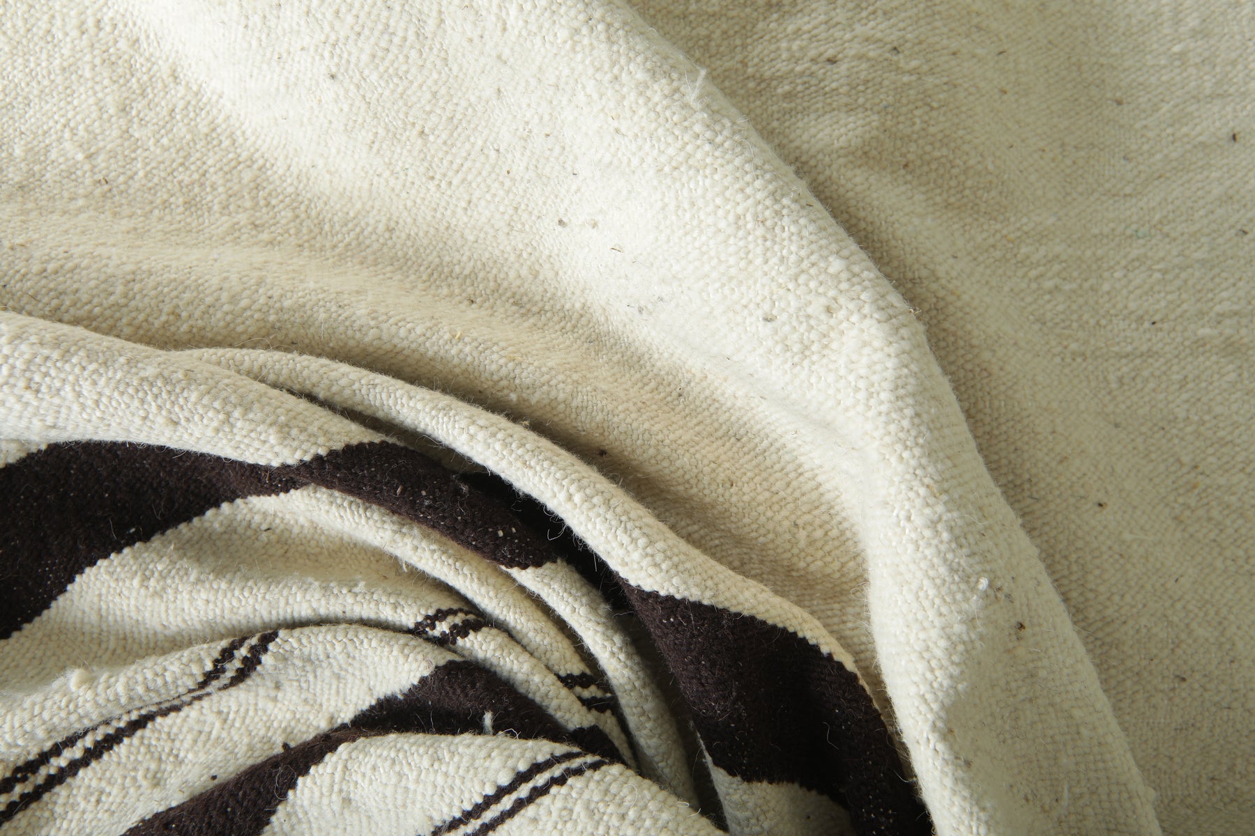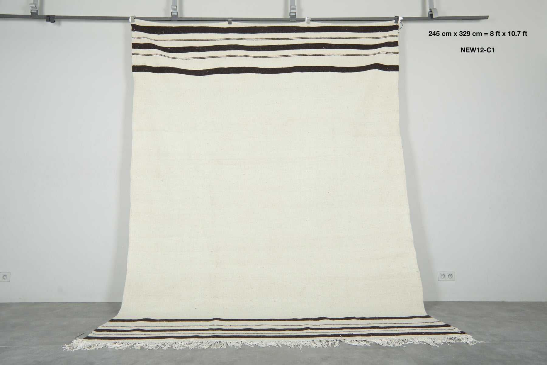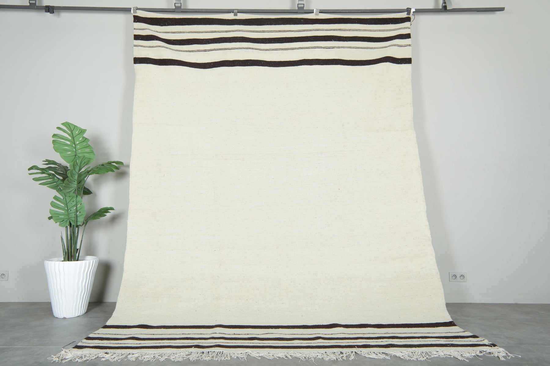 Moroccan kilim flatweave rug - Ivory with black stripes - 8 ft x 10.7 ft
