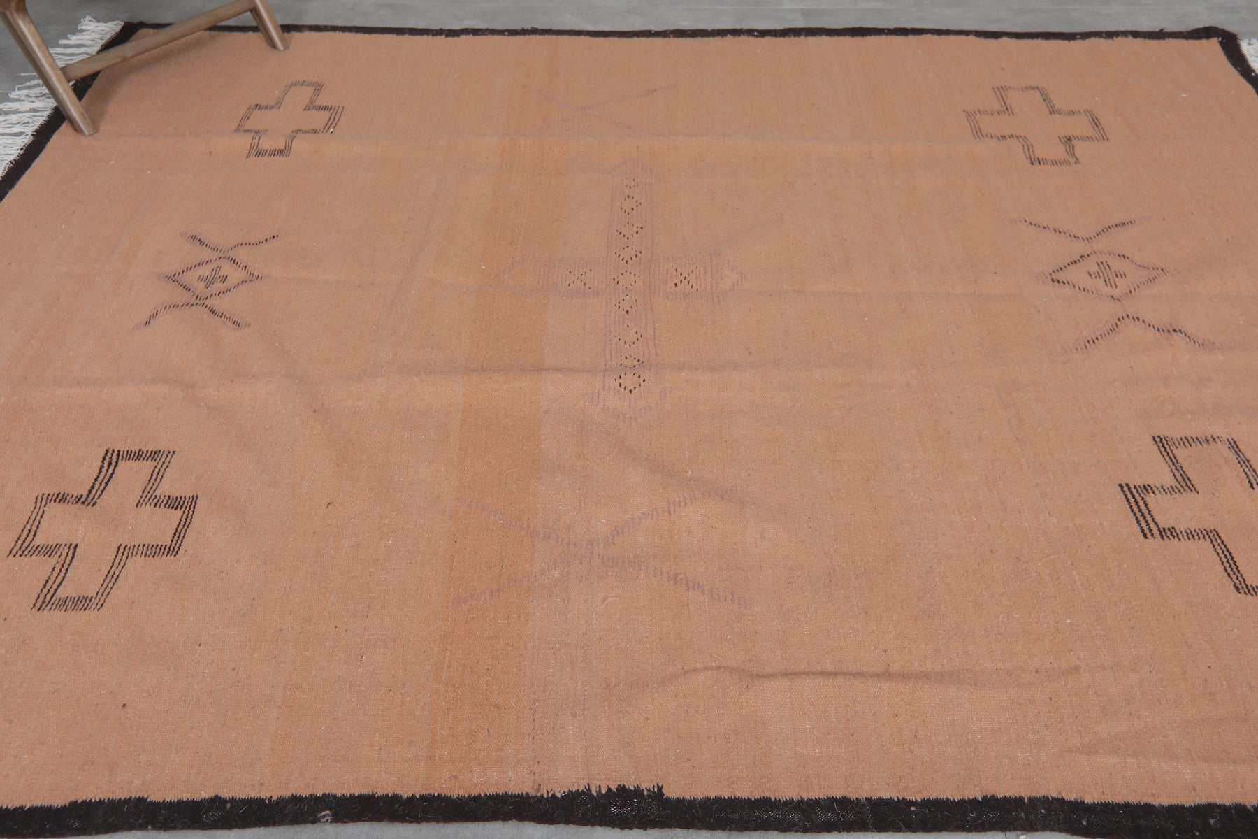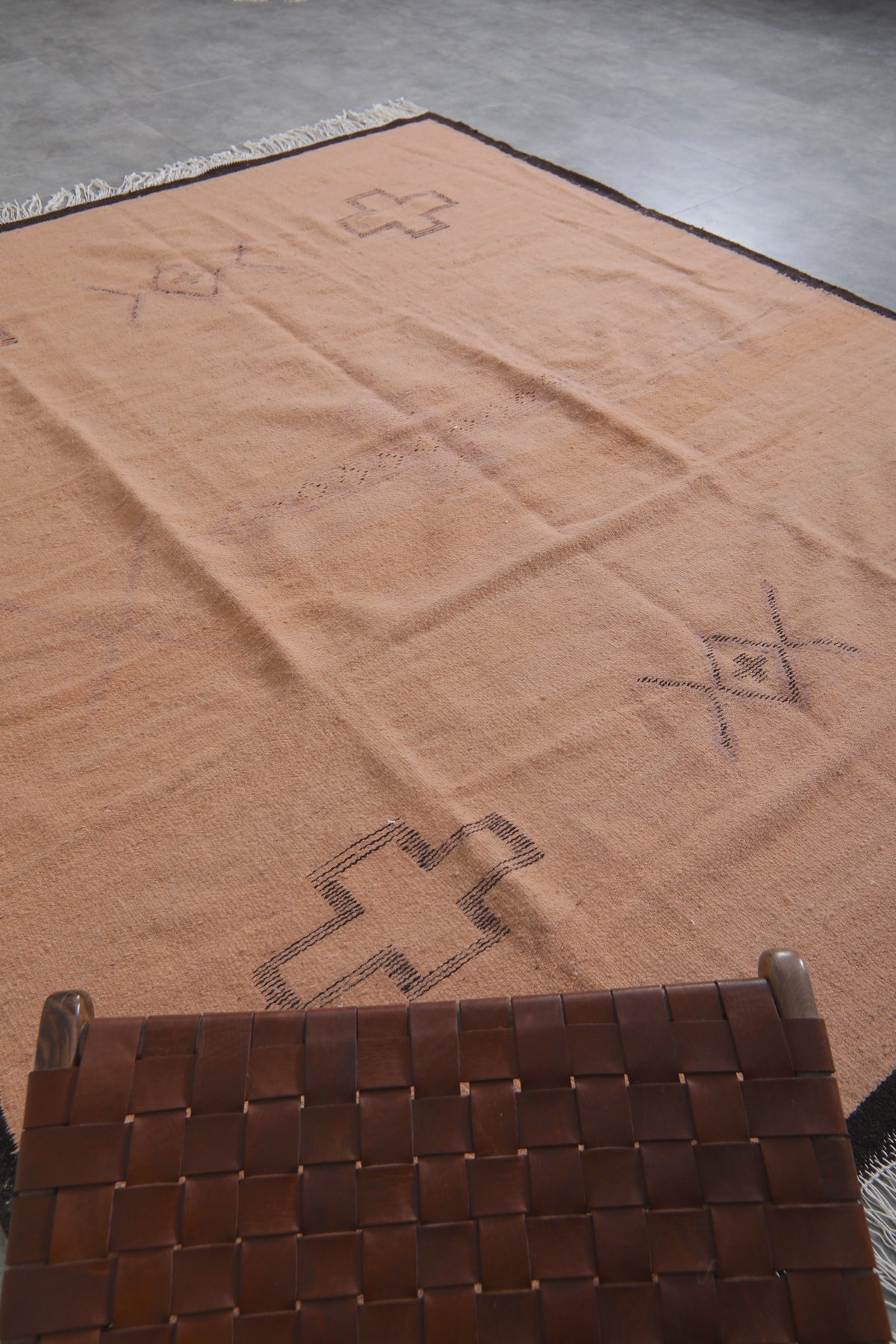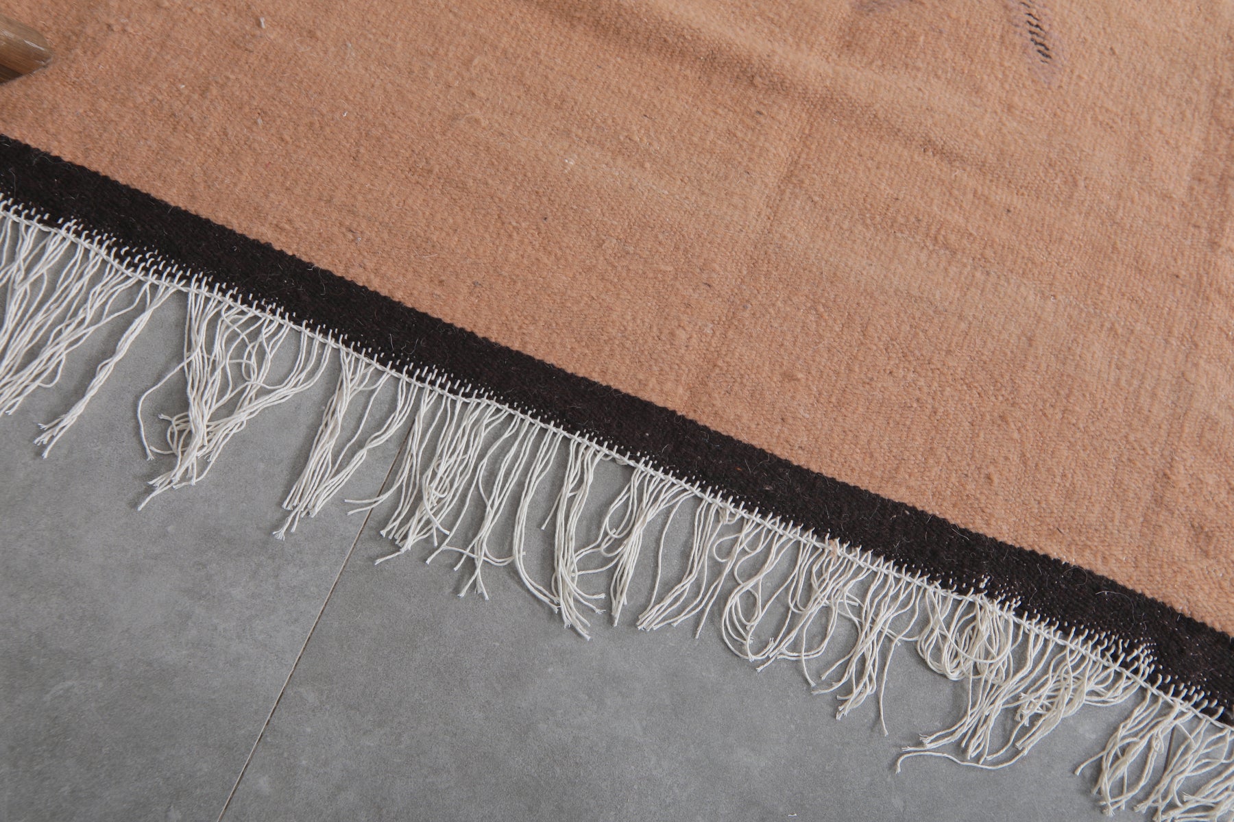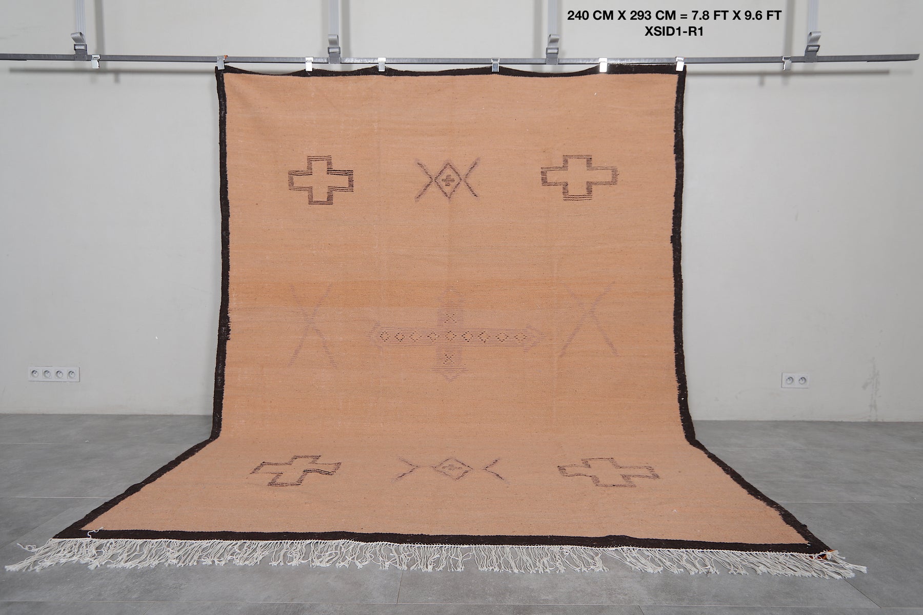 This 7.8 x 9.6 feet handwoven Moroccan rug features a warm beige base with minimalist tribal patterns in dark brown, adding a touch of sophisticated earthy charm to any space. Crafted from premium natural wool, this rug offers exceptional durability, softness, and warmth, making it an elegant and timeless addition to living rooms, bedrooms, or open-plan interiors.