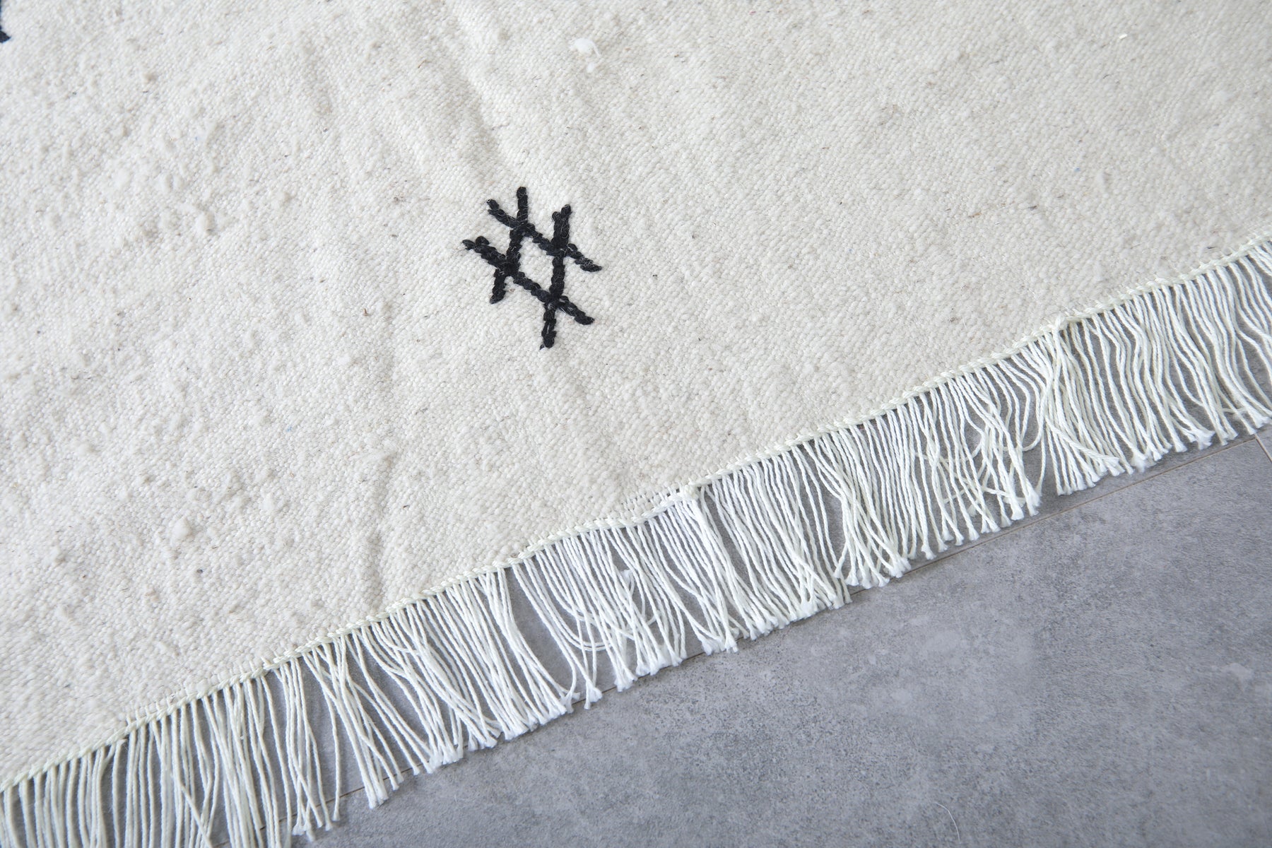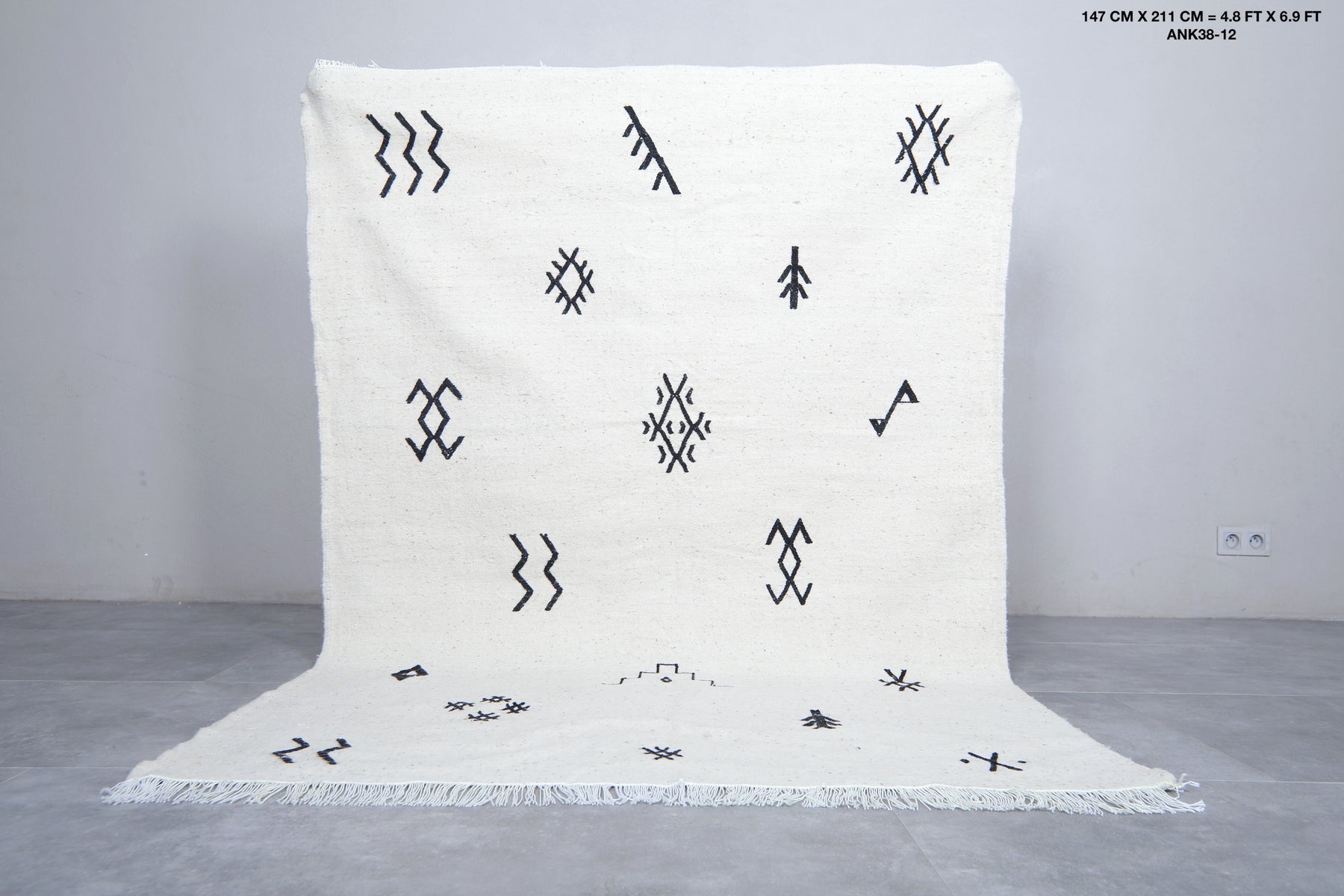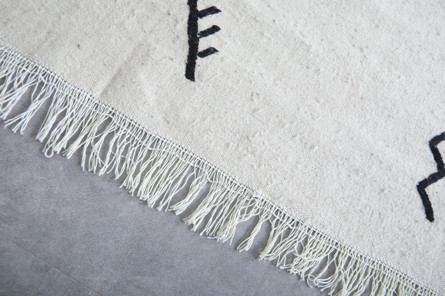 Moroccan Rug - Minimalist Black Symbols 4.8 x 6.9 ft | Handwoven Wool