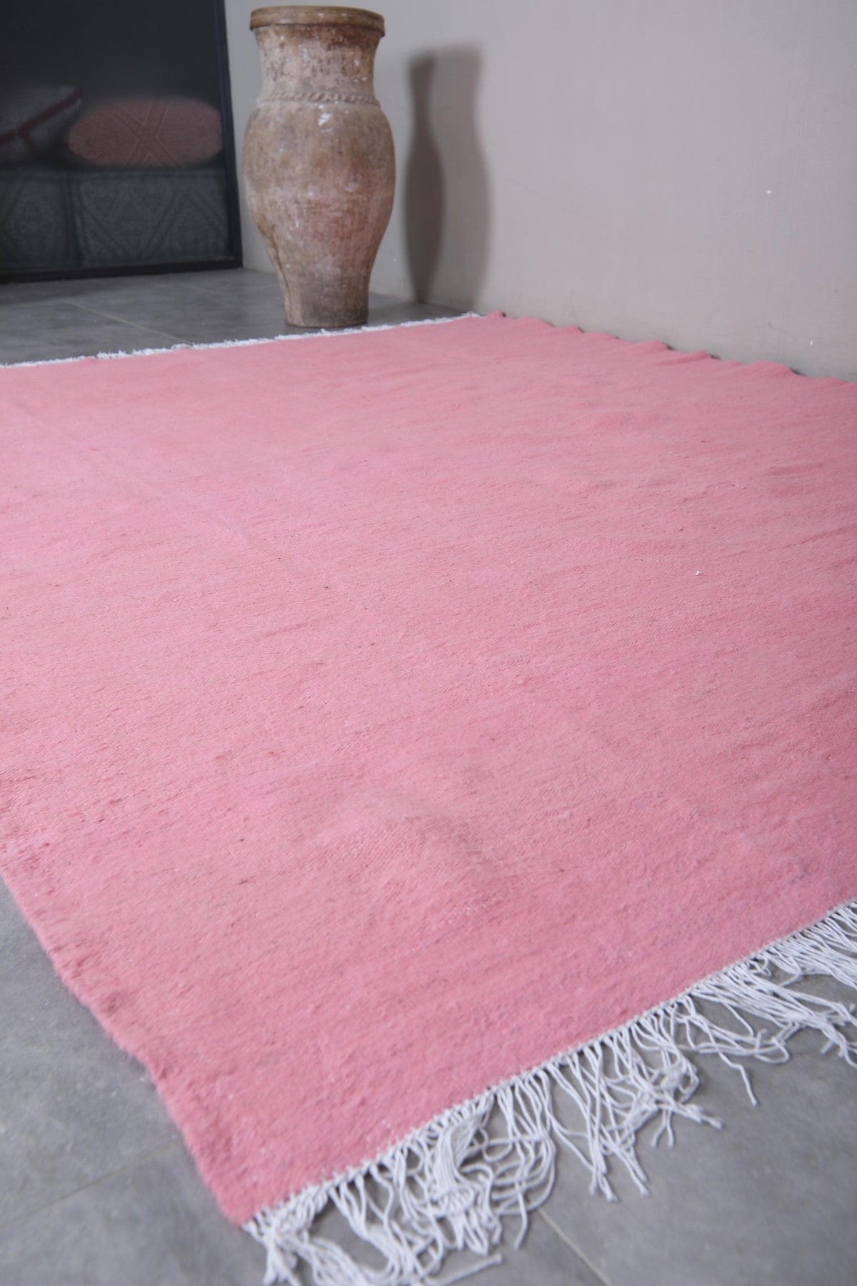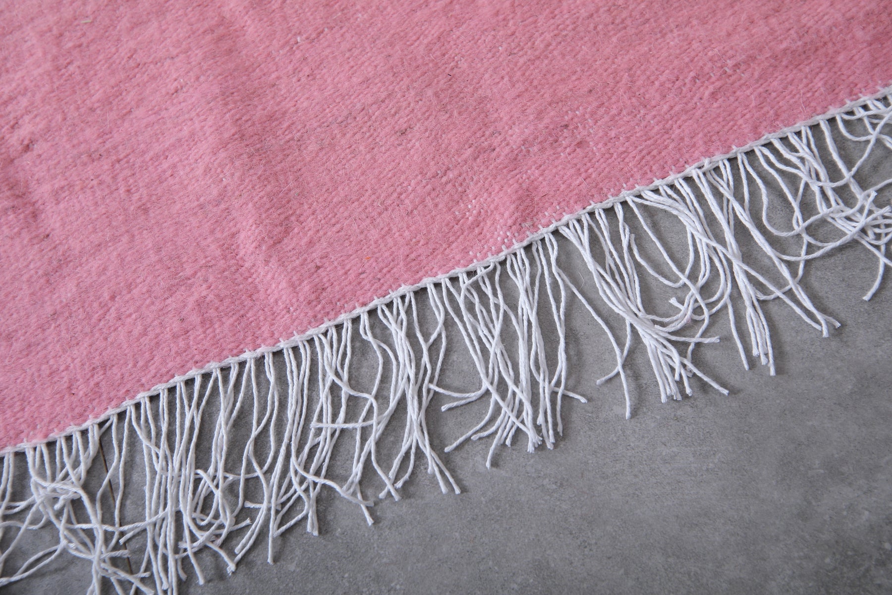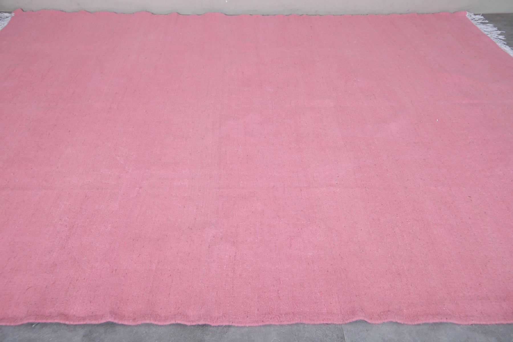 This 7.8 x 9.6 feet handwoven Moroccan Berber rug radiates elegance and charm, featuring a soft pink wool design that brightens any space. Its minimalist aesthetic and solid hue make it a versatile choice for both modern and traditional interiors, perfect for living rooms, bedrooms, or cozy lounging areas.
