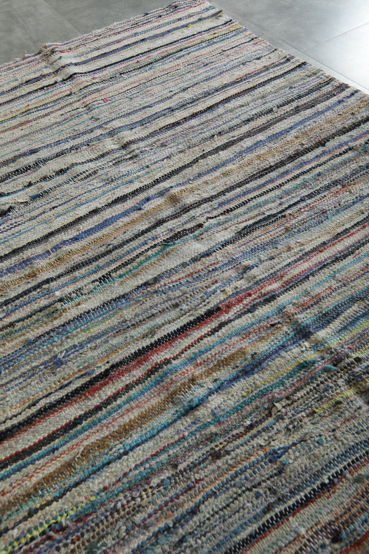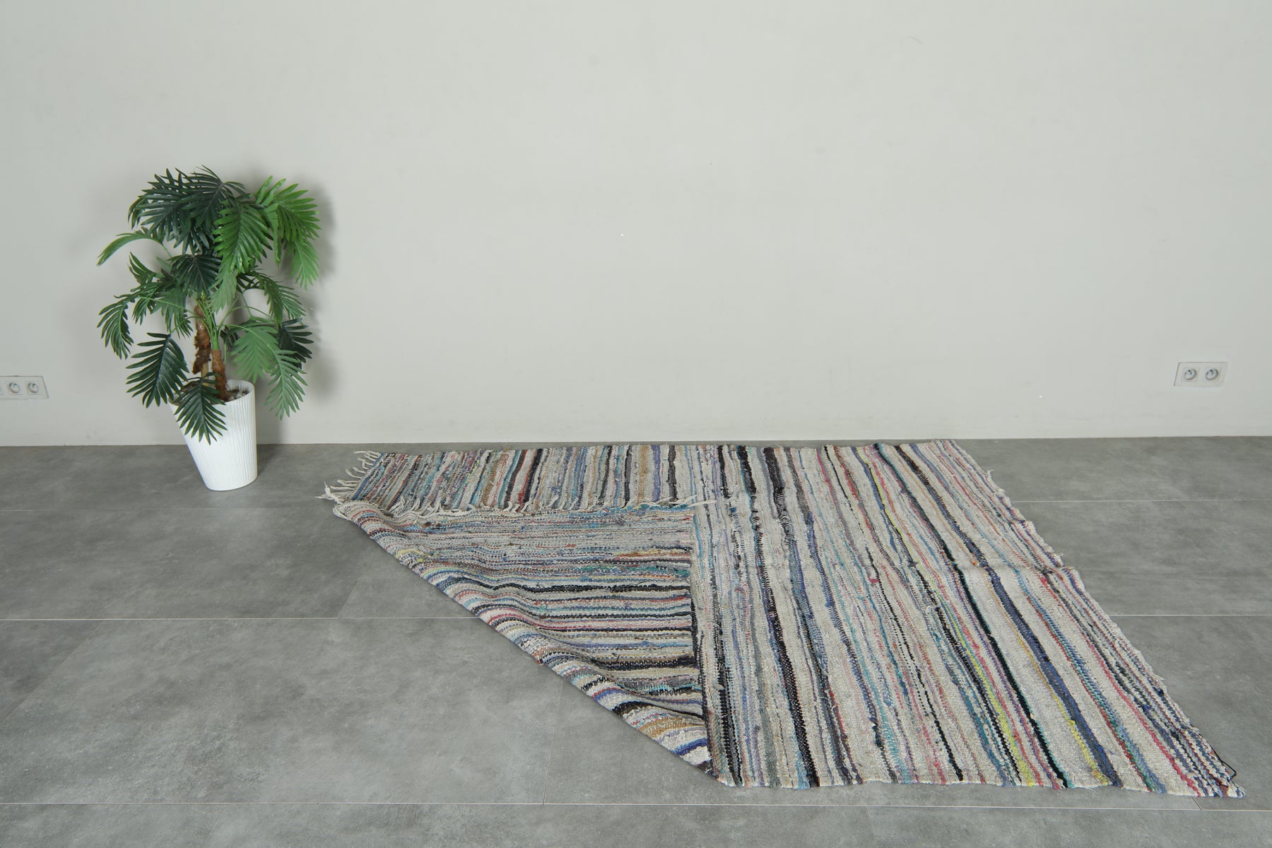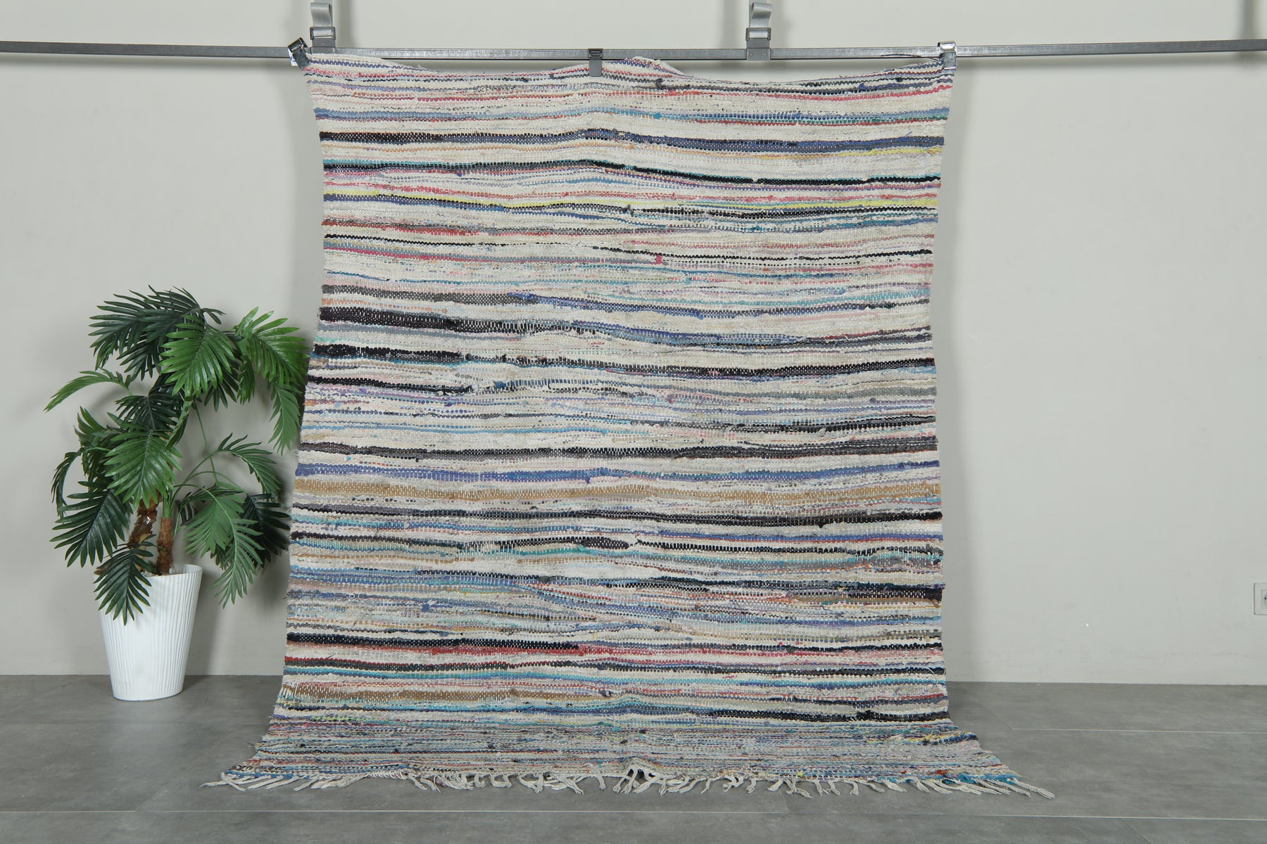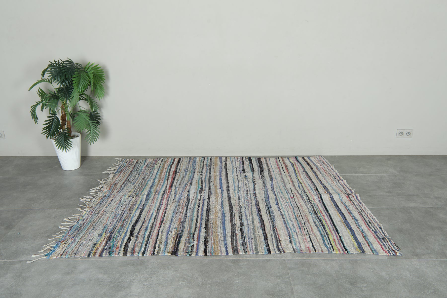 Multicolor striped Moroccan rug - 5.3 ft x 6.8 ft - Handwoven wool carpet
