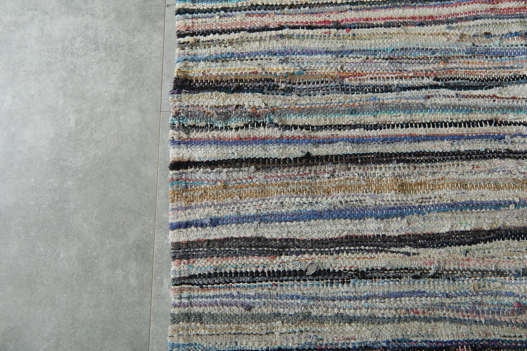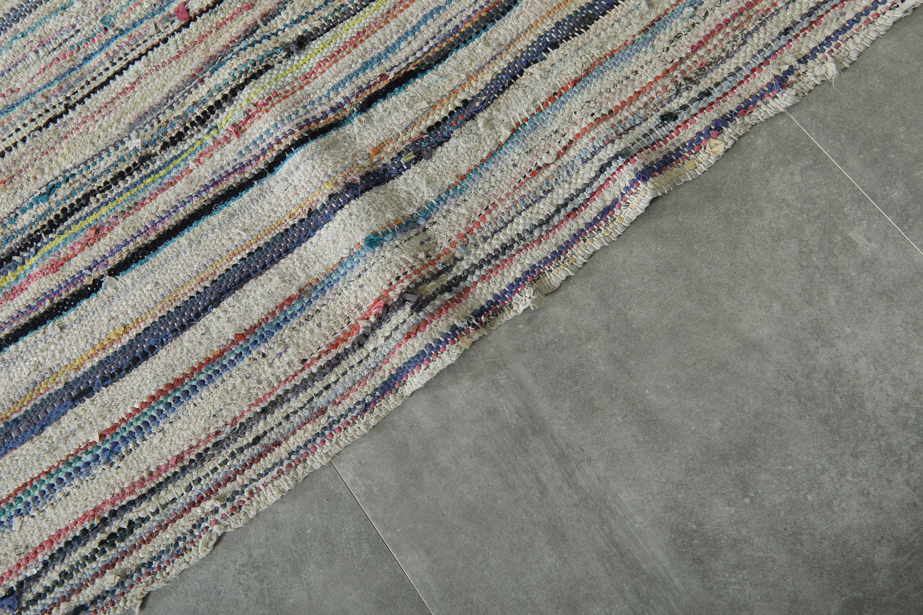 Brighten your interior with this multicolor striped Moroccan rug, handwoven from natural wool by skilled Berber artisans. Its lively striped pattern combines bold colors with traditional craftsmanship, creating a vibrant design that instantly energizes any room. The medium size makes it versatile for styling in living rooms, bedrooms, or creative spaces, while the soft wool pile ensures warmth and comfort underfoot. Durable and one-of-a-kind, this handmade rug reflects Moroccan heritage and adds artistic flair to your décor.
