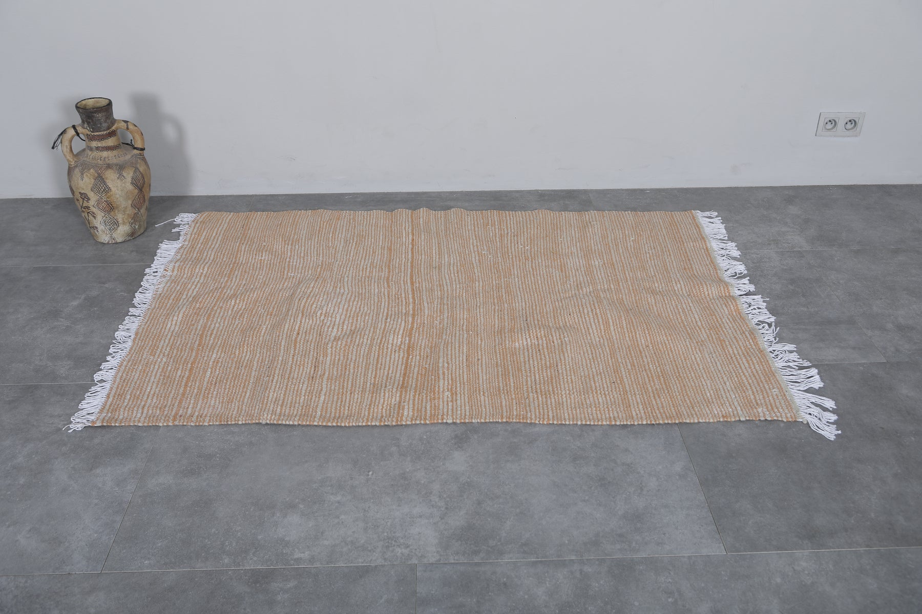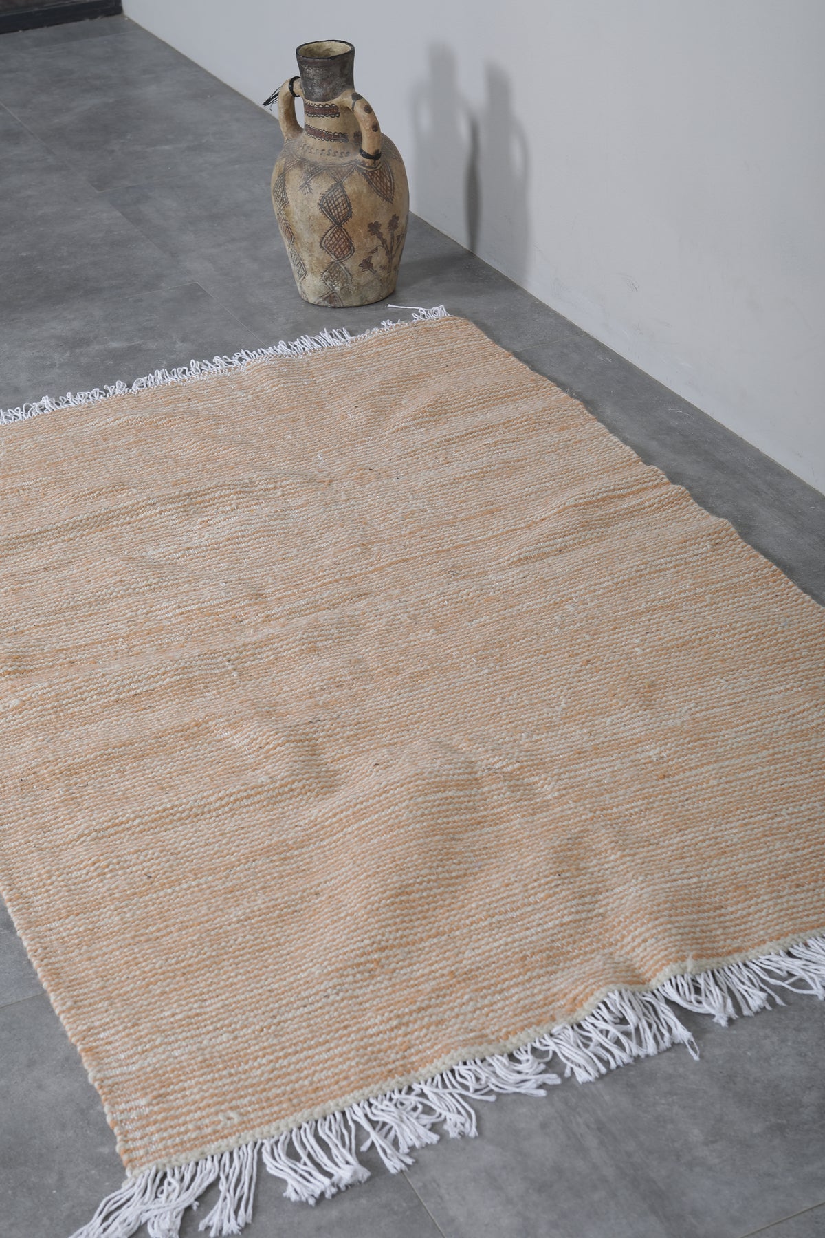 This 3.6 x 5.5 feet handwoven Moroccan rug brings earthy elegance to your space with its natural fibers and warm, soothing tones. Designed with a minimalist aesthetic, it seamlessly complements modern, rustic, or bohemian interiors, making it ideal for hallways, entryways, or cozy corners.
