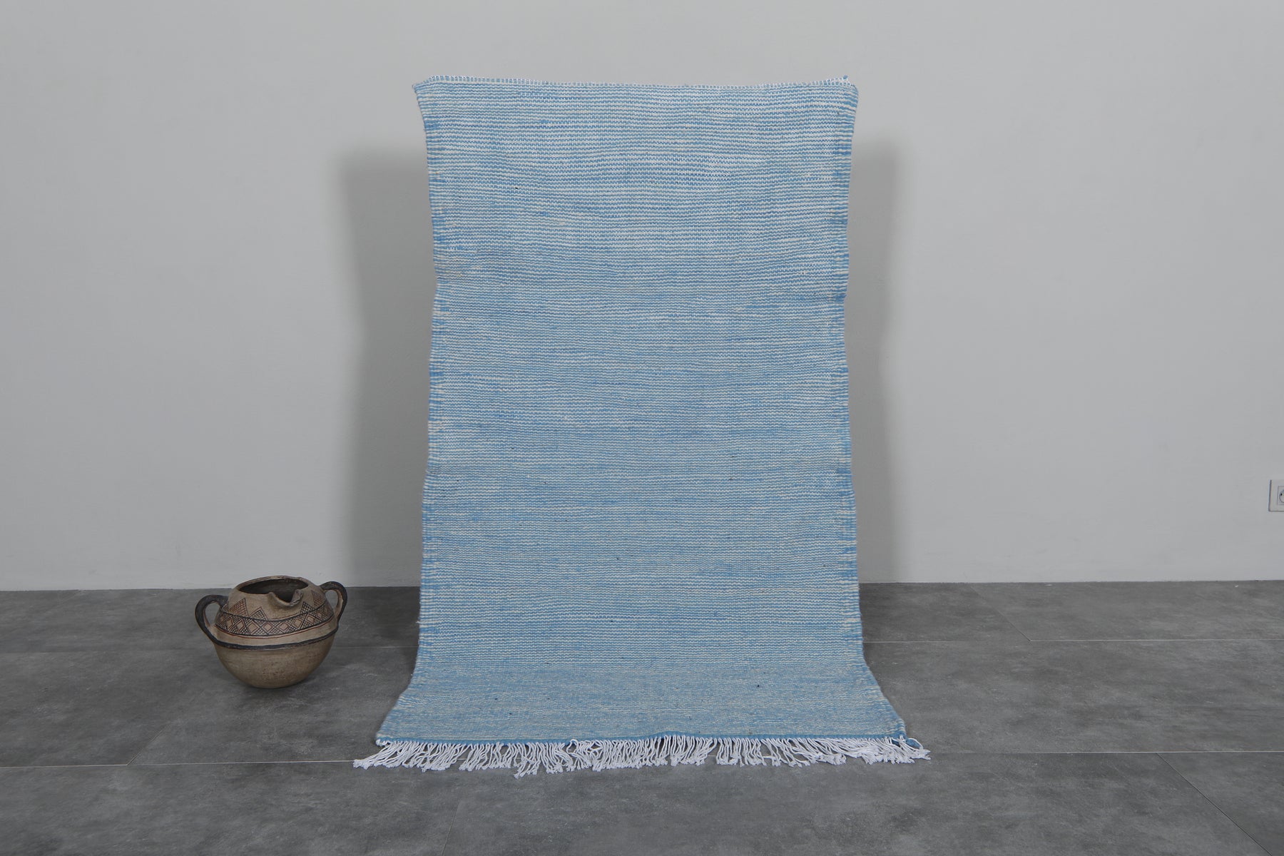 Sky Blue Moroccan Rug - 3 X 5.4 Feet | Handcrafted Elegance