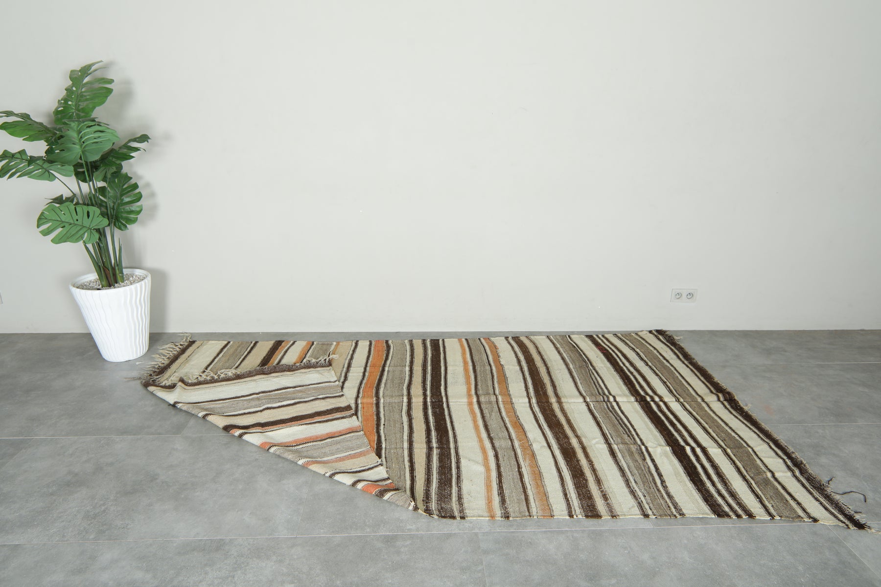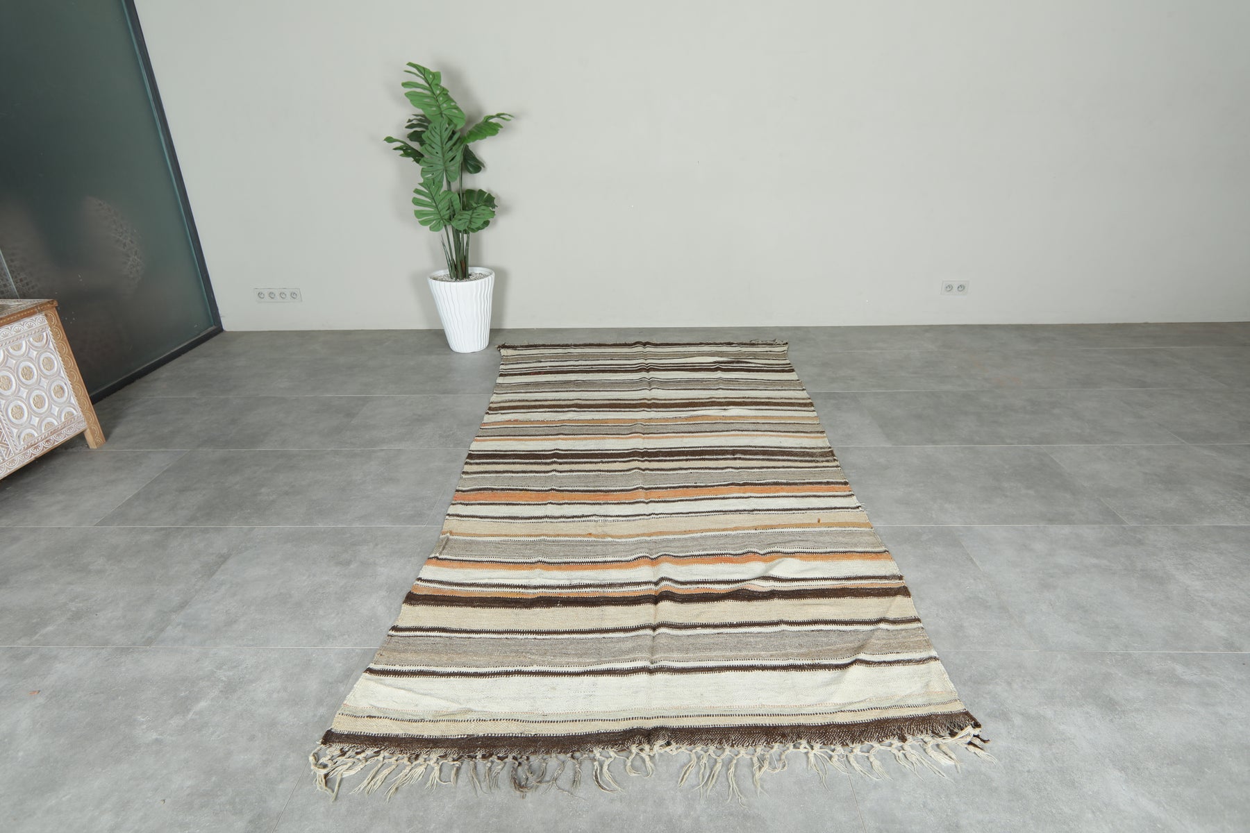 Elevate your interior with this striped Moroccan rug, handwoven from natural wool by Berber artisans. Its long, narrow shape is enhanced with bold stripes that bring rhythm and balance to any space. The timeless striped design blends effortlessly with modern, minimalist, or bohemian décor, while the soft wool texture adds warmth and comfort underfoot. Perfect for hallways, dining areas, or as a statement piece in living rooms, this handmade rug combines authentic Moroccan craftsmanship with versatile style, making it a one-of-a-kind addition to your home.
