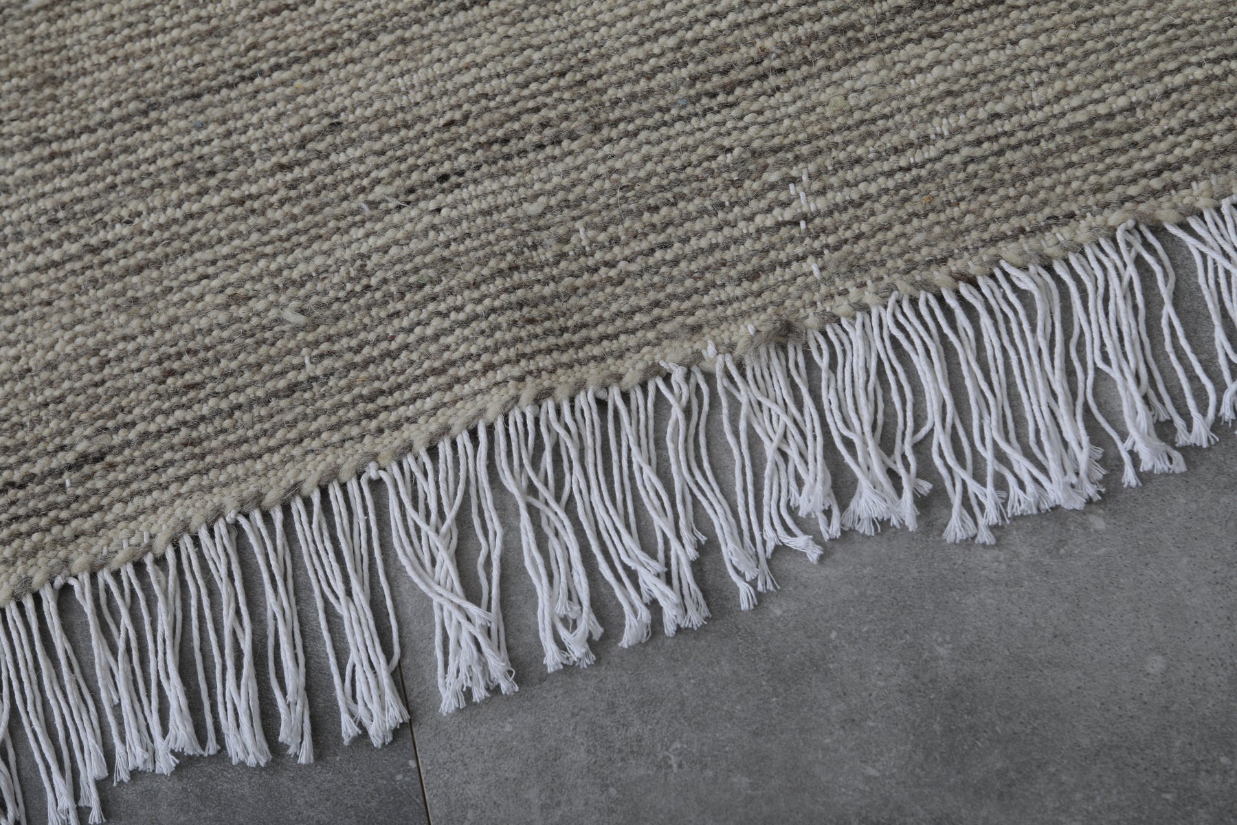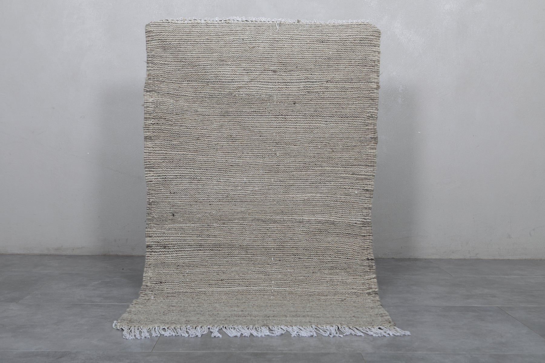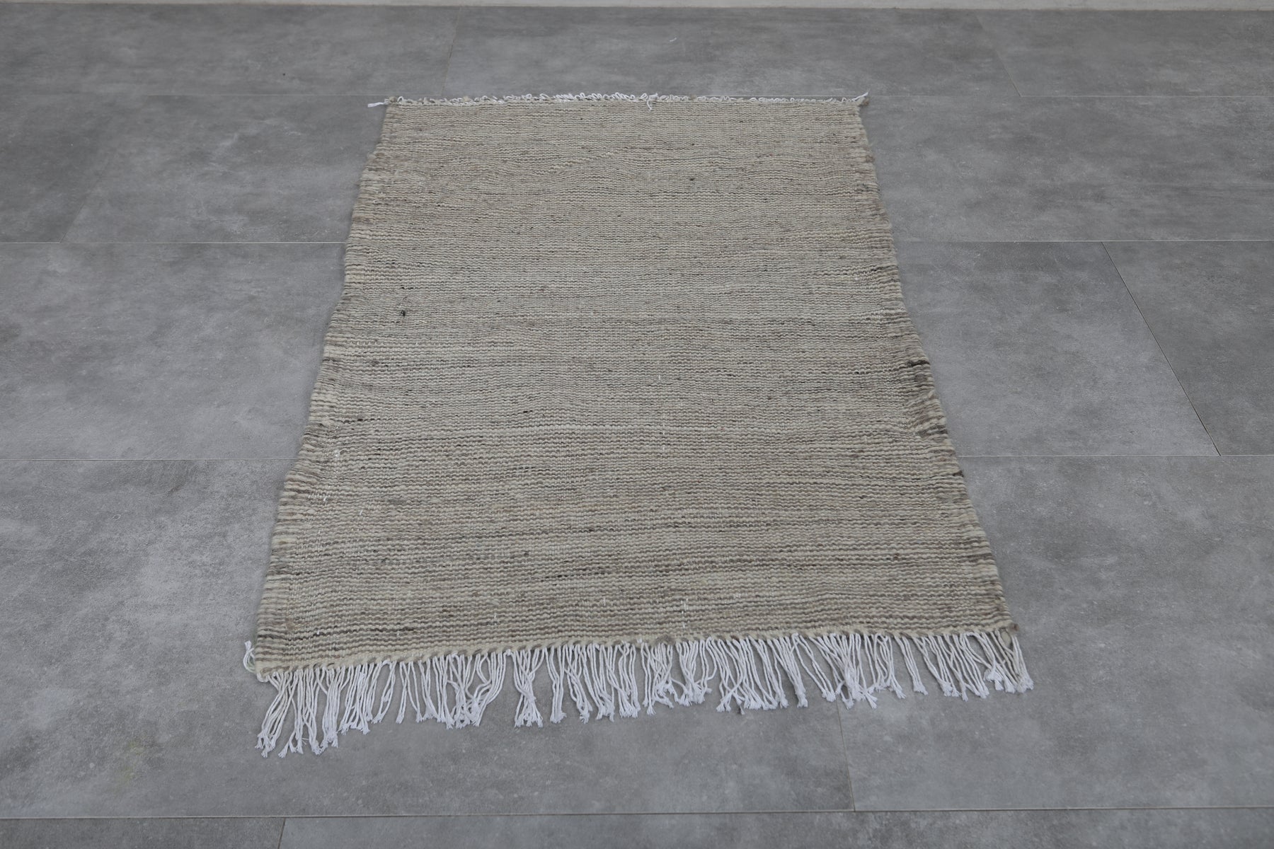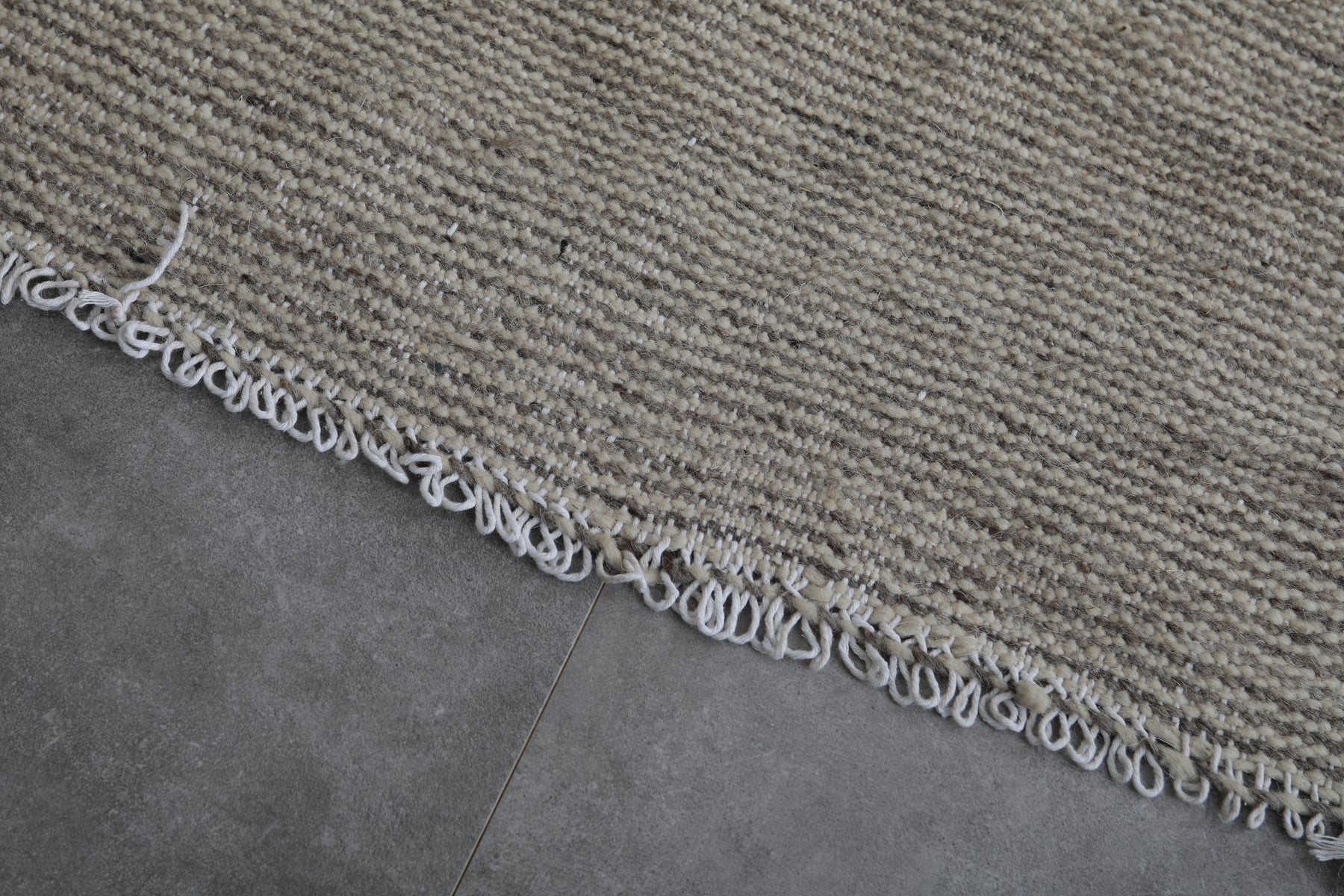 This 2.9 x 5 feet handwoven Moroccan rug brings natural elegance to any space with its soft, neutral tones and minimalist design. Crafted from 100% premium wool, it offers a plush texture and lasting durability, making it a perfect addition to living rooms, bedrooms, or office spaces.
