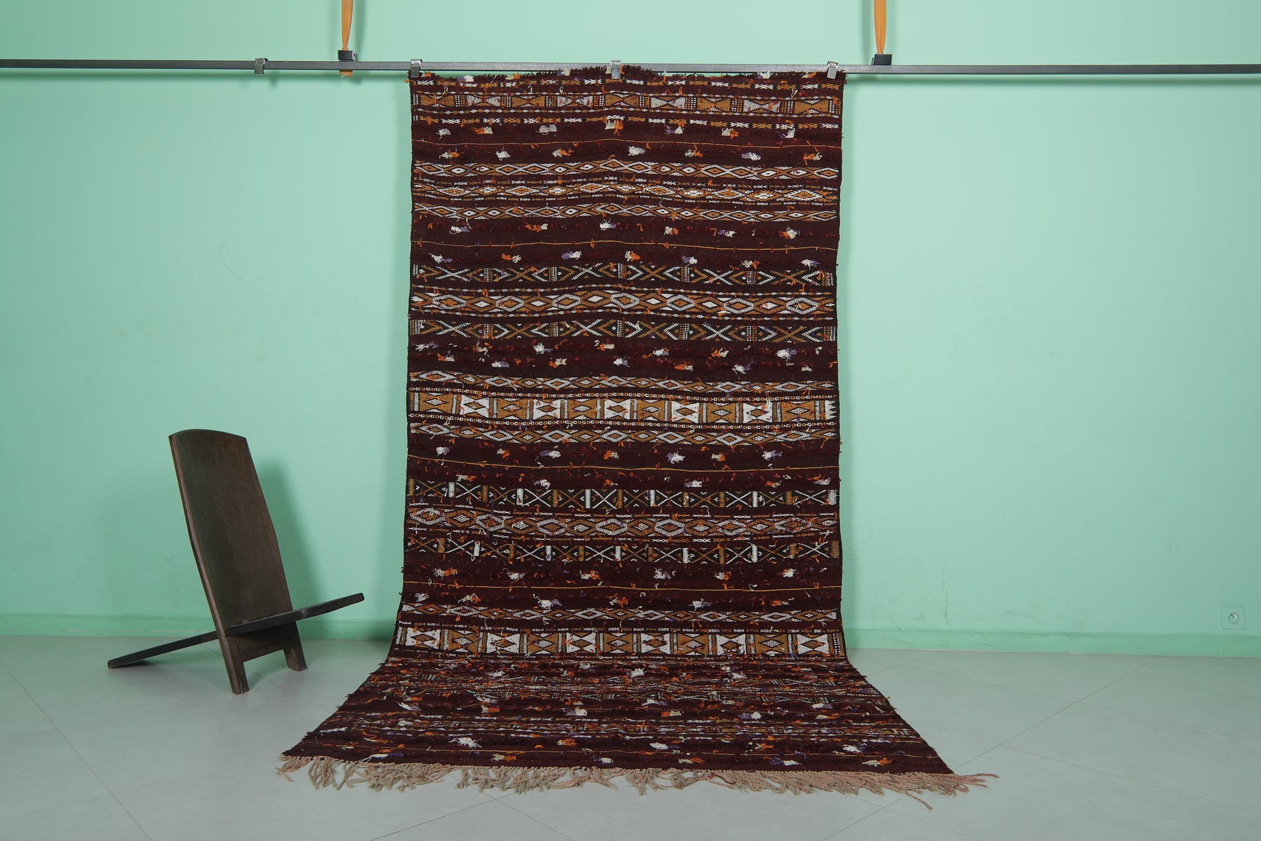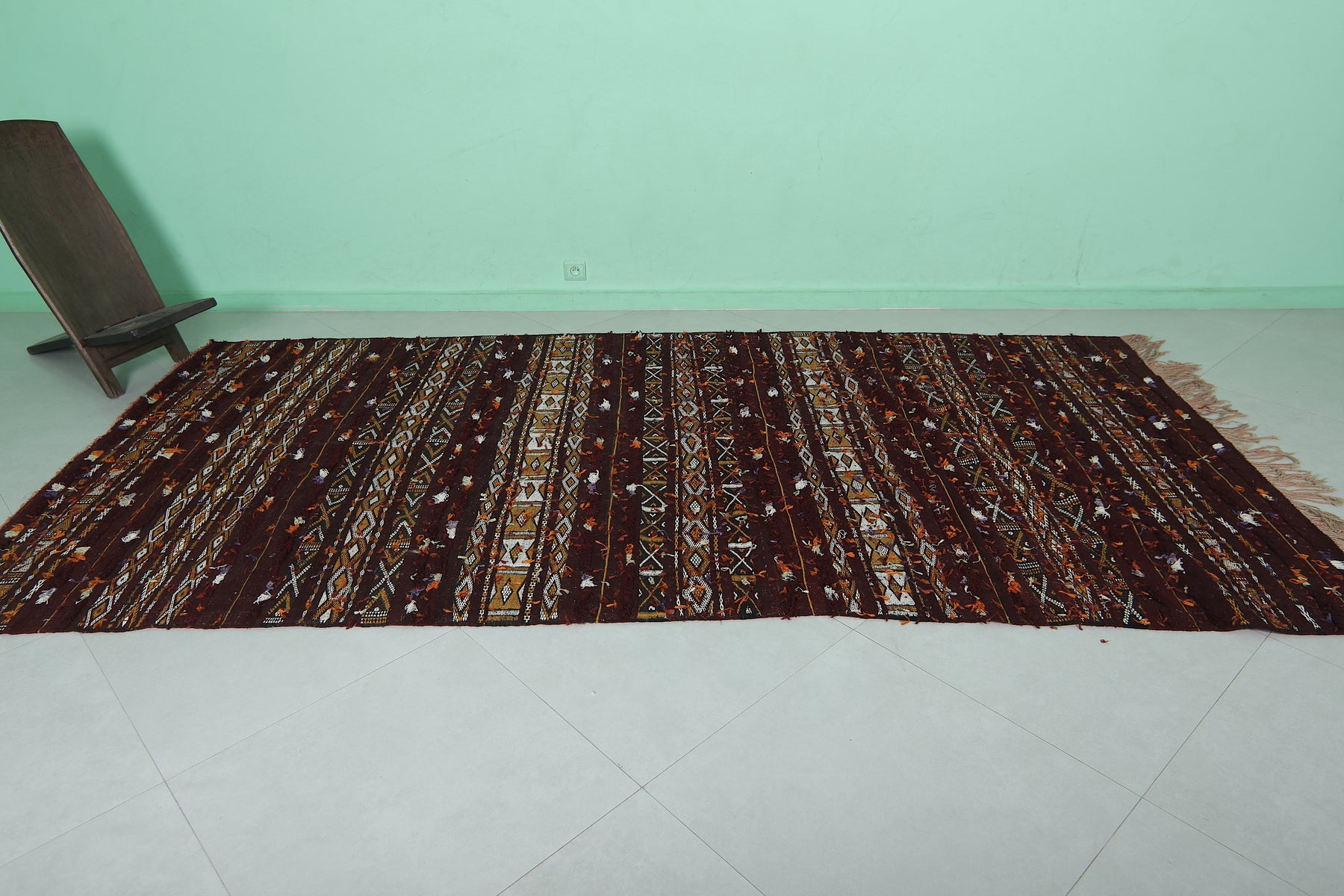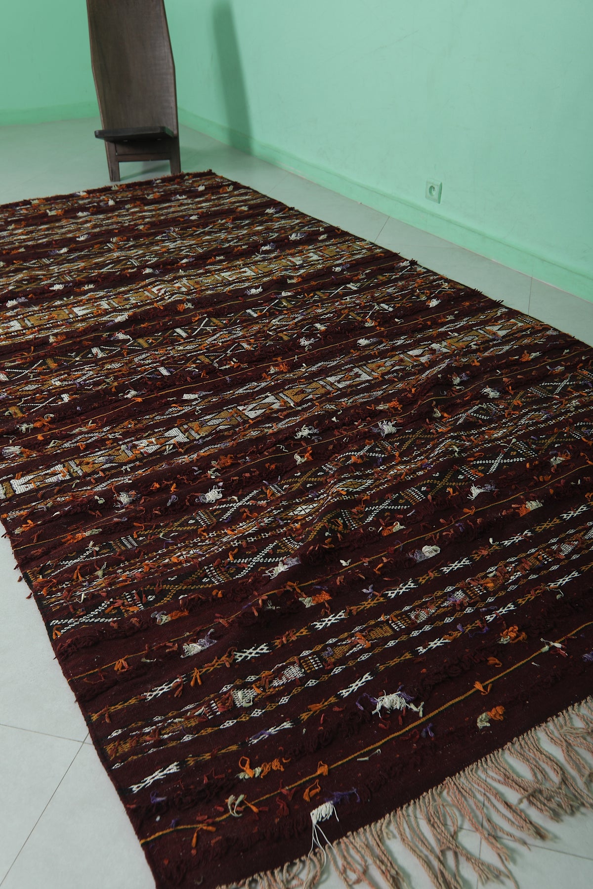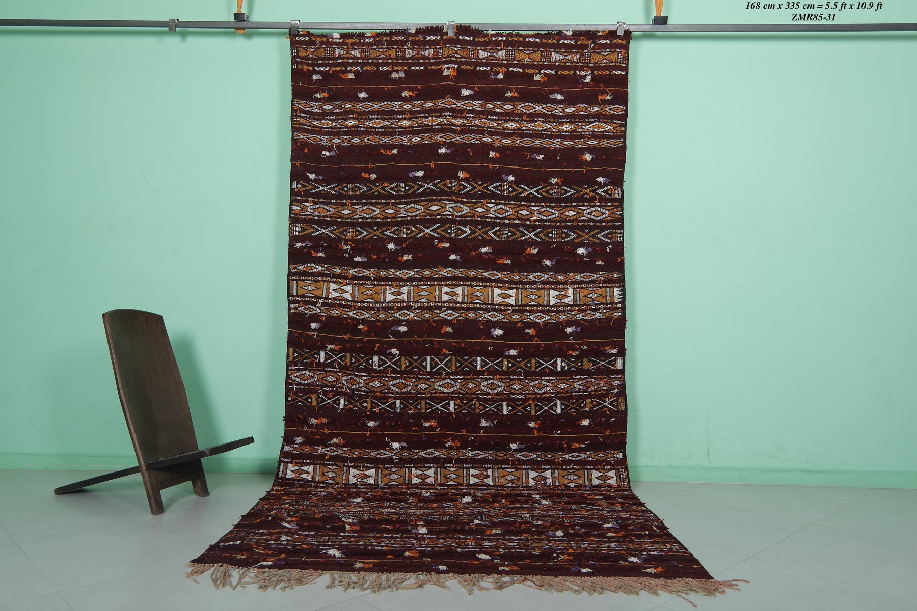 Wool and Silk Berber Kilim 5.5ft x 10.9ft - Handmade Moroccan Rug