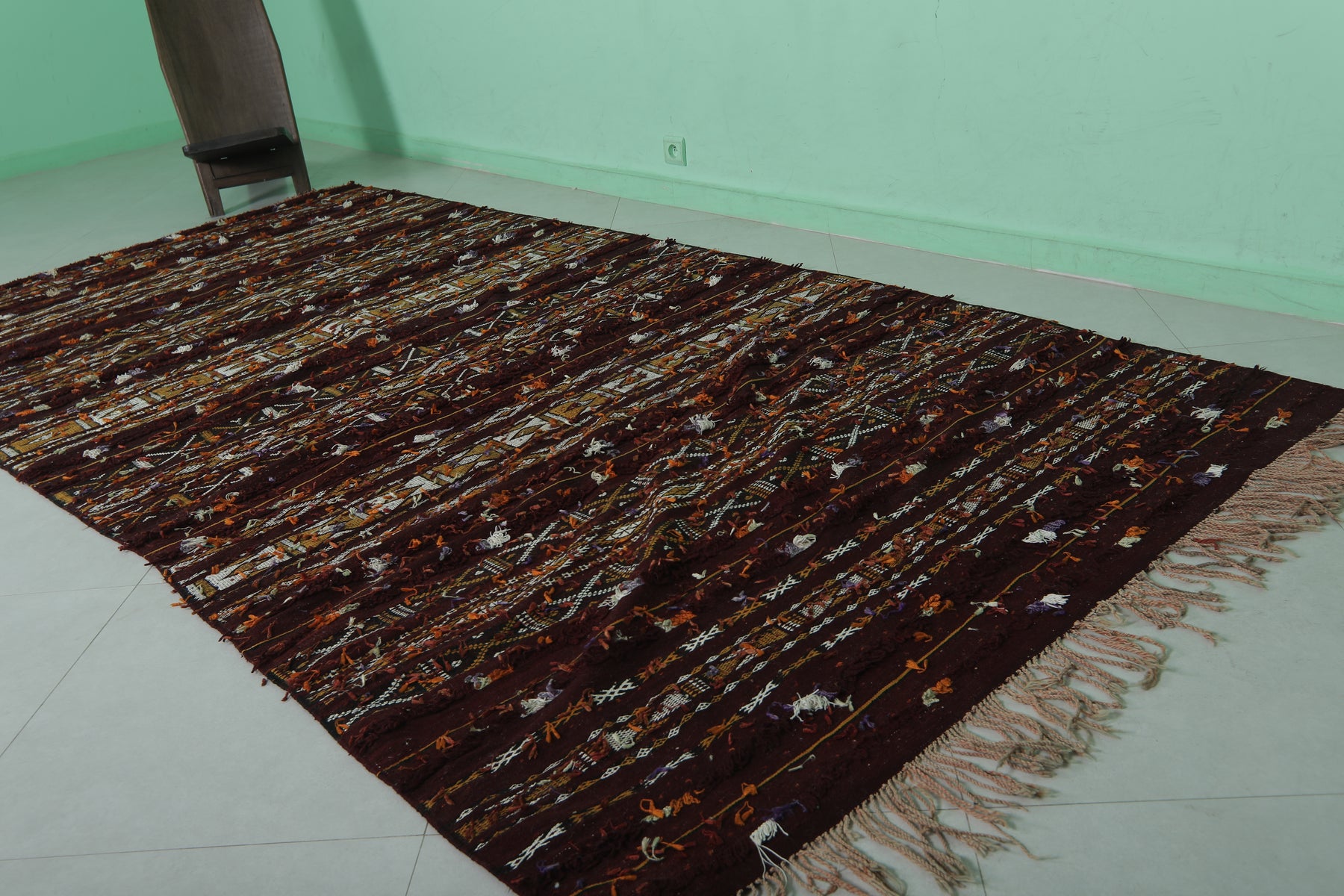 • Features intricate Berber motifs in deep earth tones with a subtle sheen.