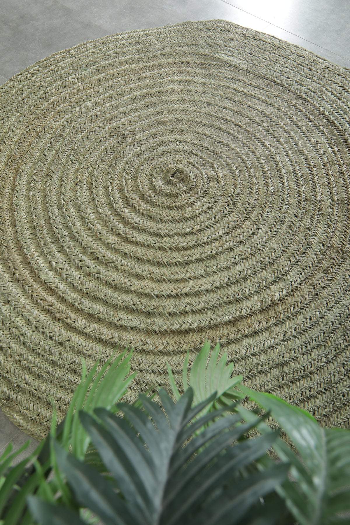 Made entirely from dried palm or straw fibers, each mat features a meticulously braided spiral pattern that reflects the heritage and artisanal skill passed down through generations in Morocco. Naturally biodegradable and lightweight, it’s ideal for indoor settings like living rooms, bedrooms, prayer spaces, or meditation zones.