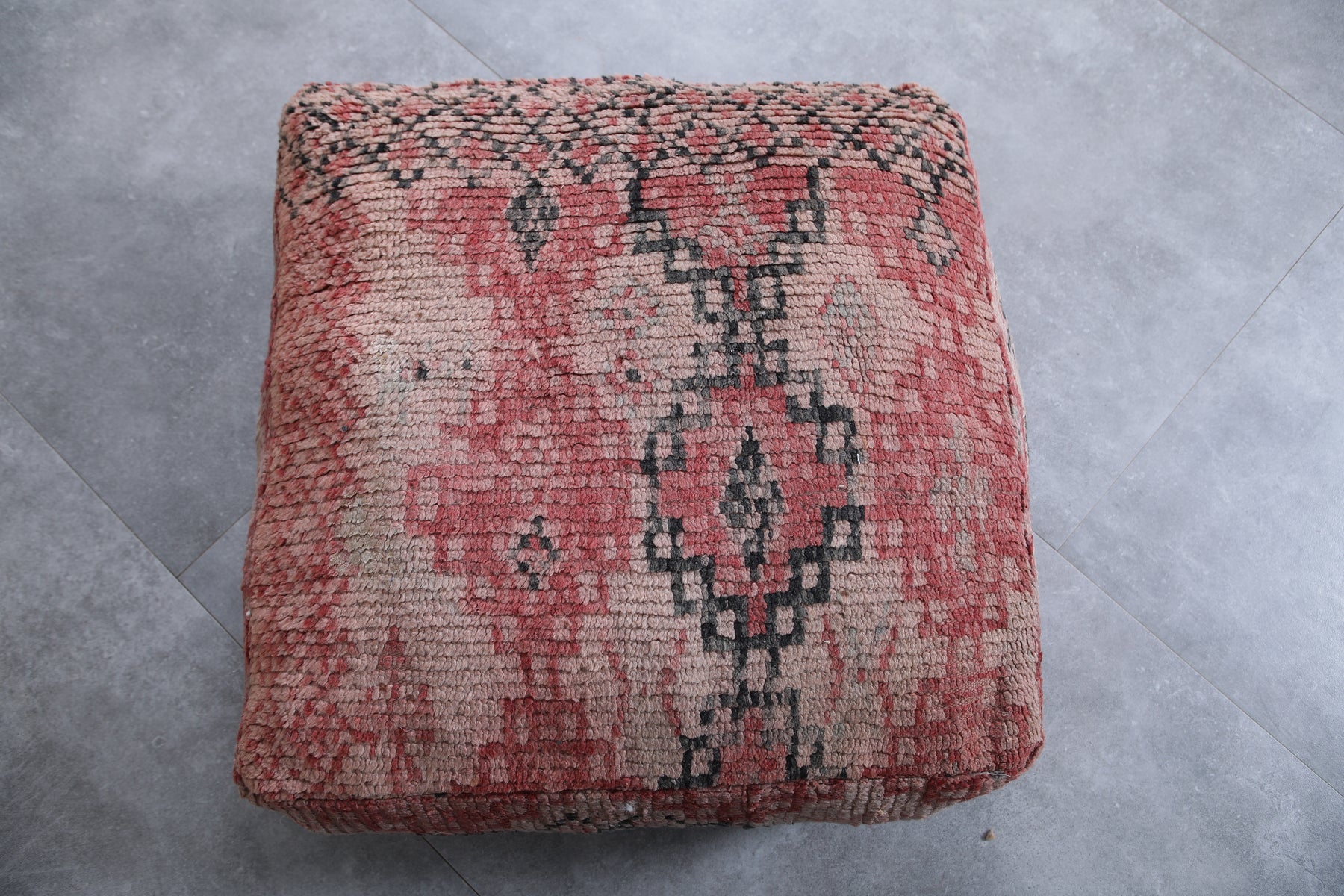 Bring the essence of Moroccan craftsmanship into your home with this handcrafted Vintage Ottoman Pouf. Featuring bold tribal patterns—including diamonds, zigzags, and chevrons—in rich earthy tones of red, cream, and black, this artisan piece adds texture, warmth, and cultural heritage to any space. Perfect as a footrest, extra seating, or a decorative accent, it effortlessly complements bohemian, eclectic, and rustic interiors with both style and function.