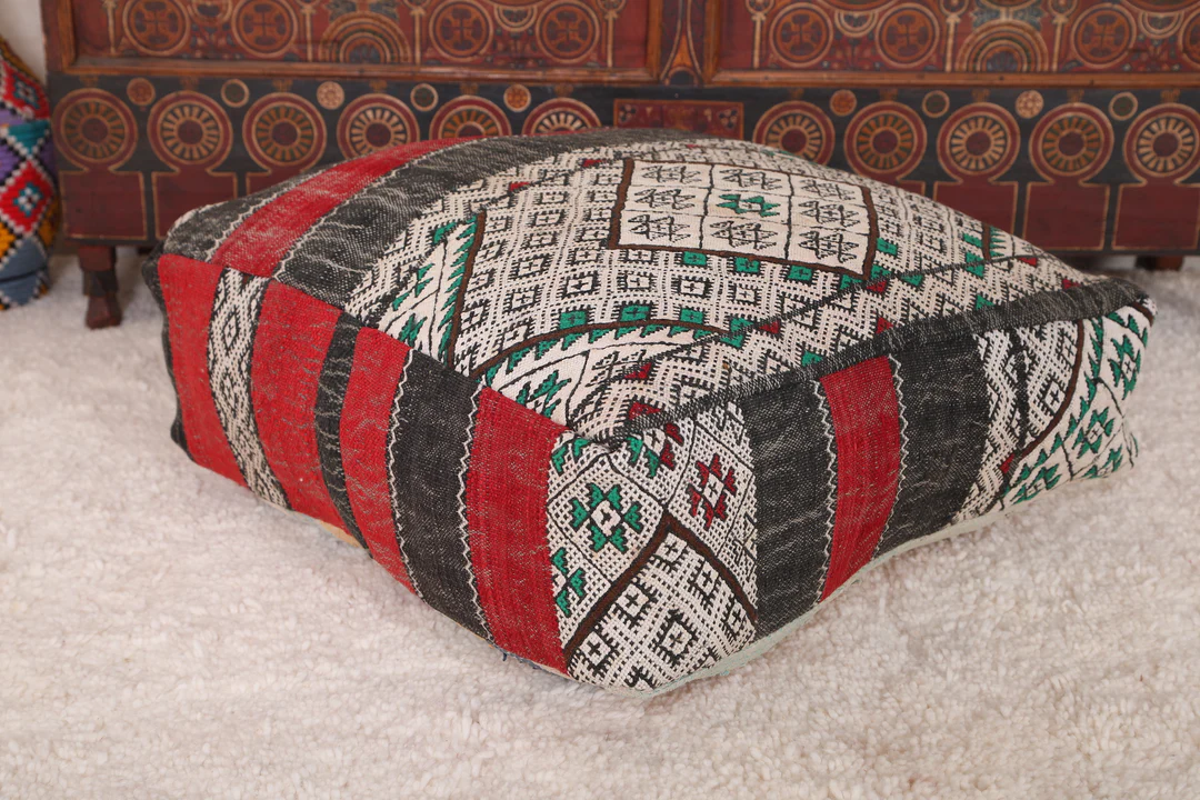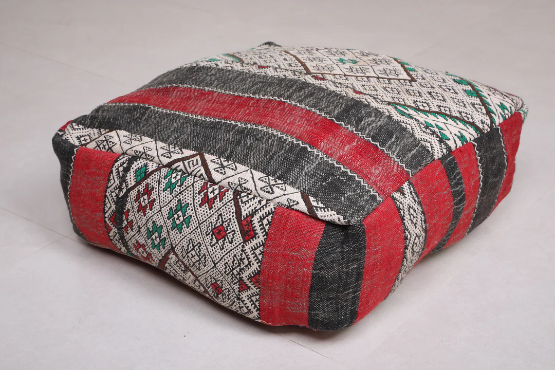 This Flatwoven Berber pouf is made by a Very Old Moroccan rug.