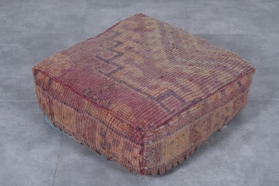 Handmade berber moroccan old red rug pouf - kilim pouf
