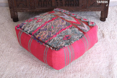 Handmade azilal ottoman berber pink rug pouf - kilim pouf