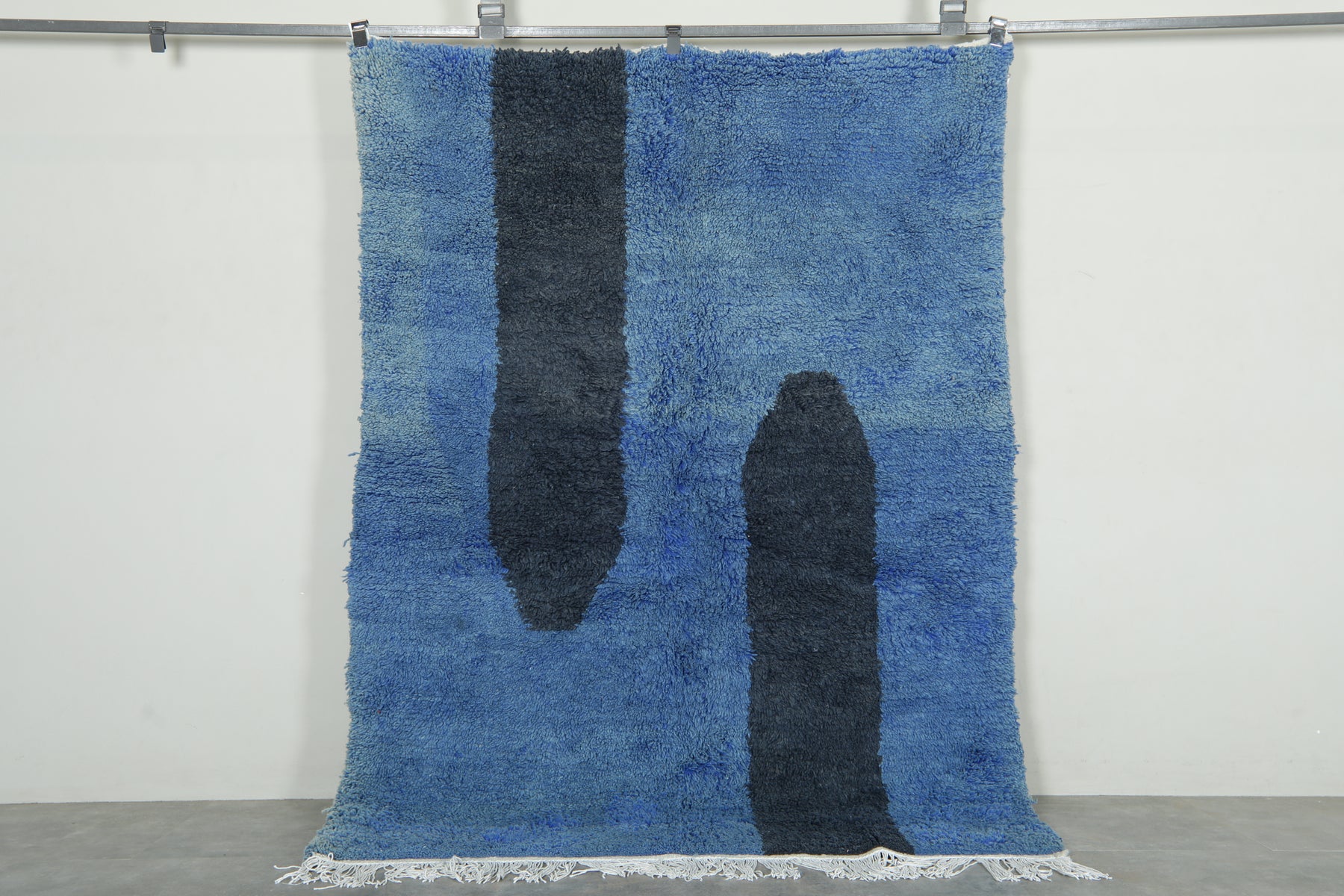 Blue & black beni ourain rug - 5.1 ft 7.1 ft - Handmade rug