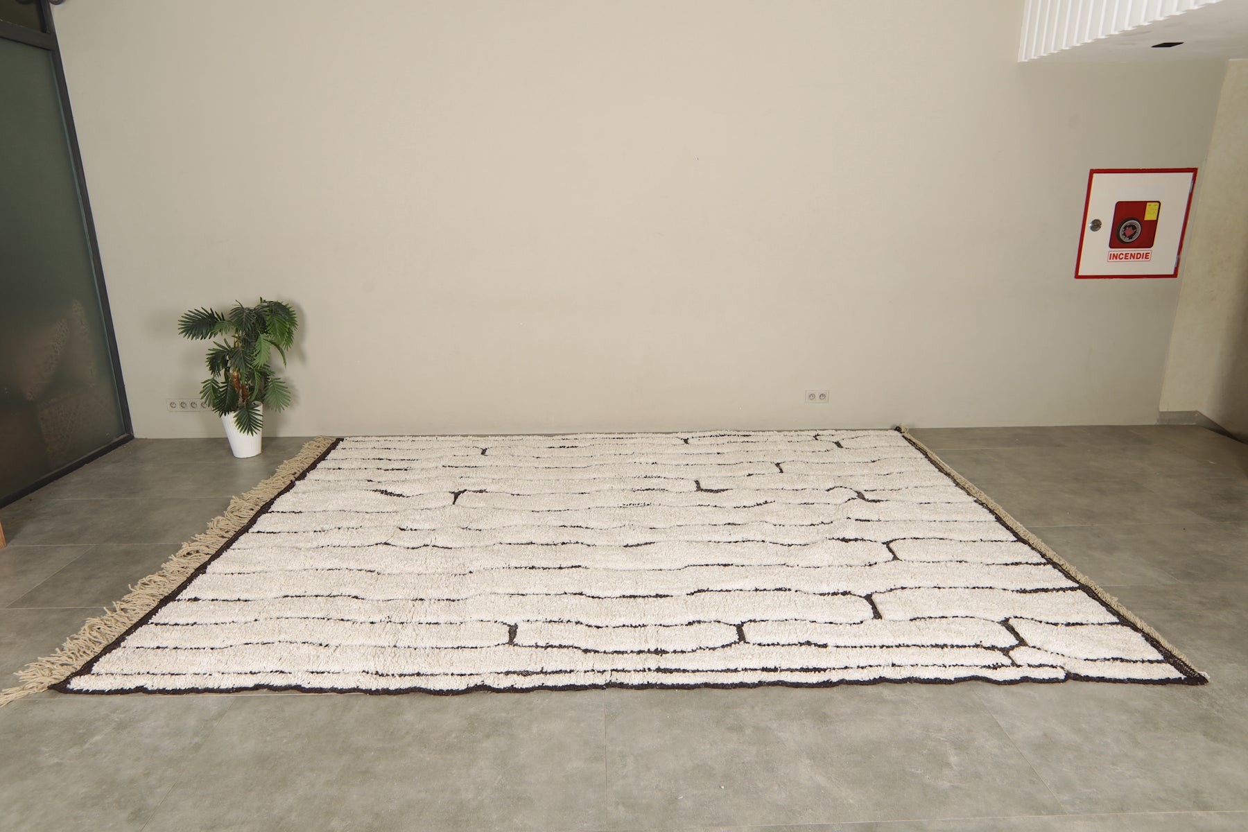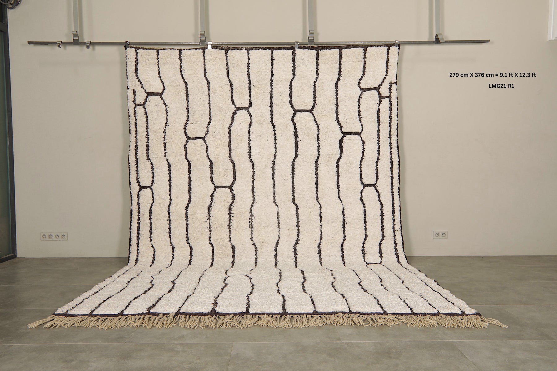 Geometric Moroccan rug - Ivory wool with black abstract lines - 9.1 FT Х 12.3 FT
