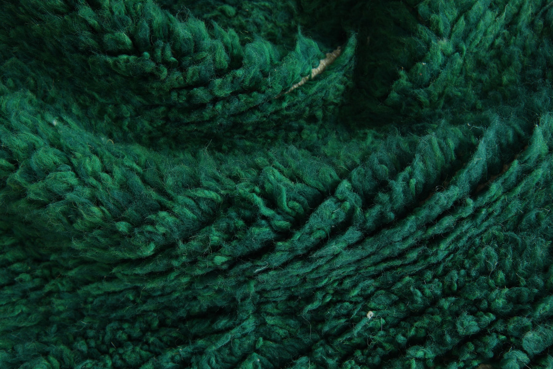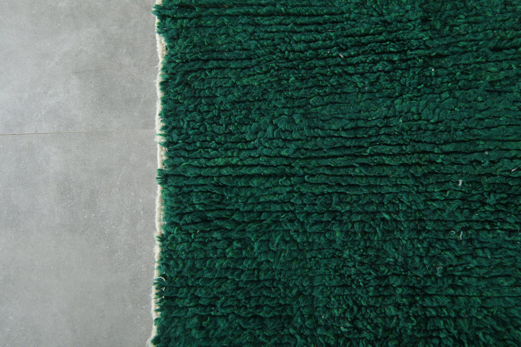 This handwoven green Moroccan shag rug features a deep emerald base with soft ivory fringes, offering a modern twist on the classic Beni Ourain style. Crafted from plush wool with a thick, cozy pile, it adds warmth, texture, and a bold pop of color to any space. Perfect for living rooms, bedrooms, or bohemian-inspired interiors, this rug blends authentic Moroccan craftsmanship with contemporary design, making it a versatile statement piece that enhances both comfort and style.