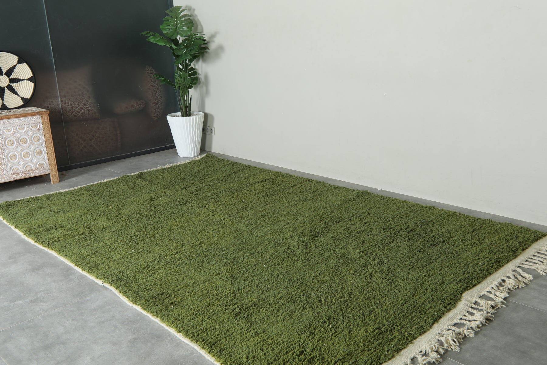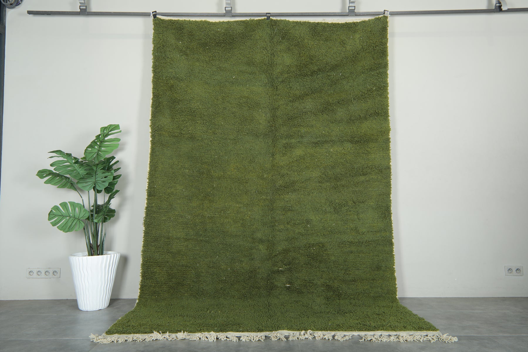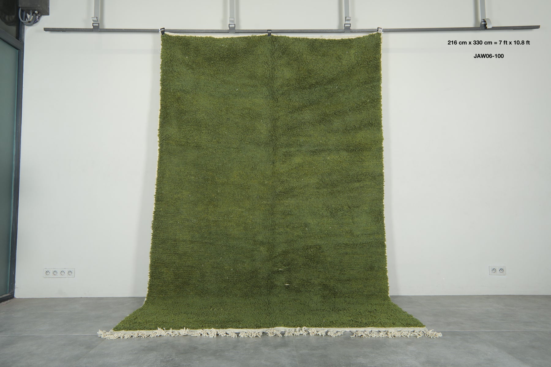 Green Moroccan beni ourain rug - 7 ft x 10.8 ft - Minimalist wool rug - Beni ourain rugs