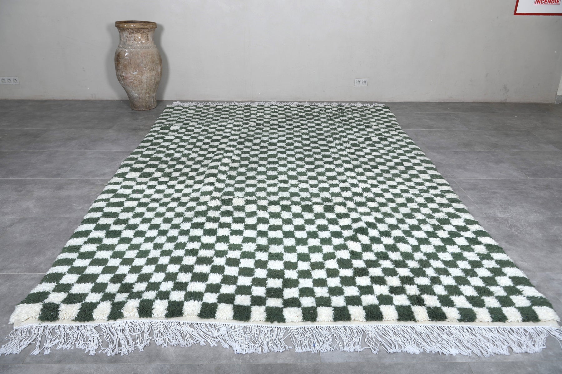 Green Moroccan Rug - 8.3 x 11.9 ft | Handwoven Checkered Design