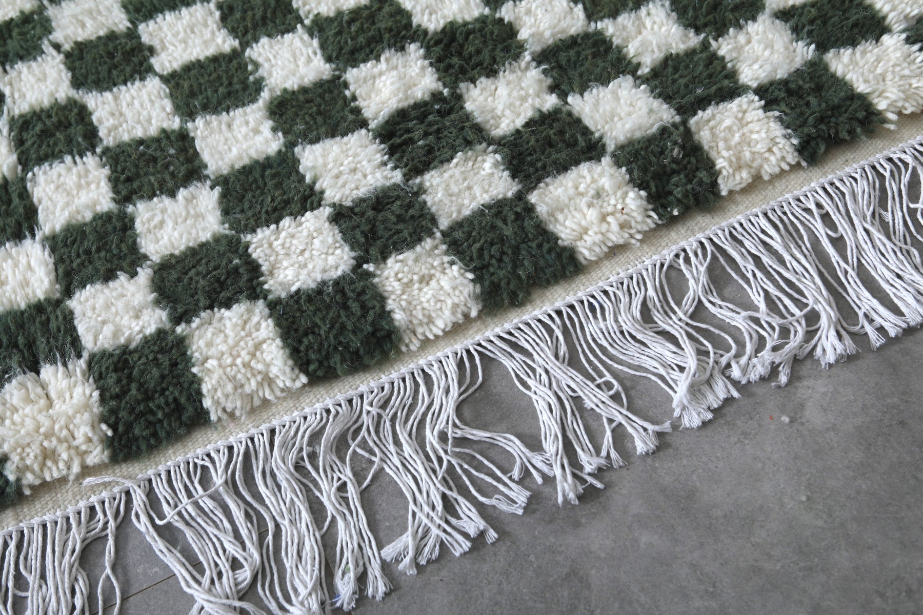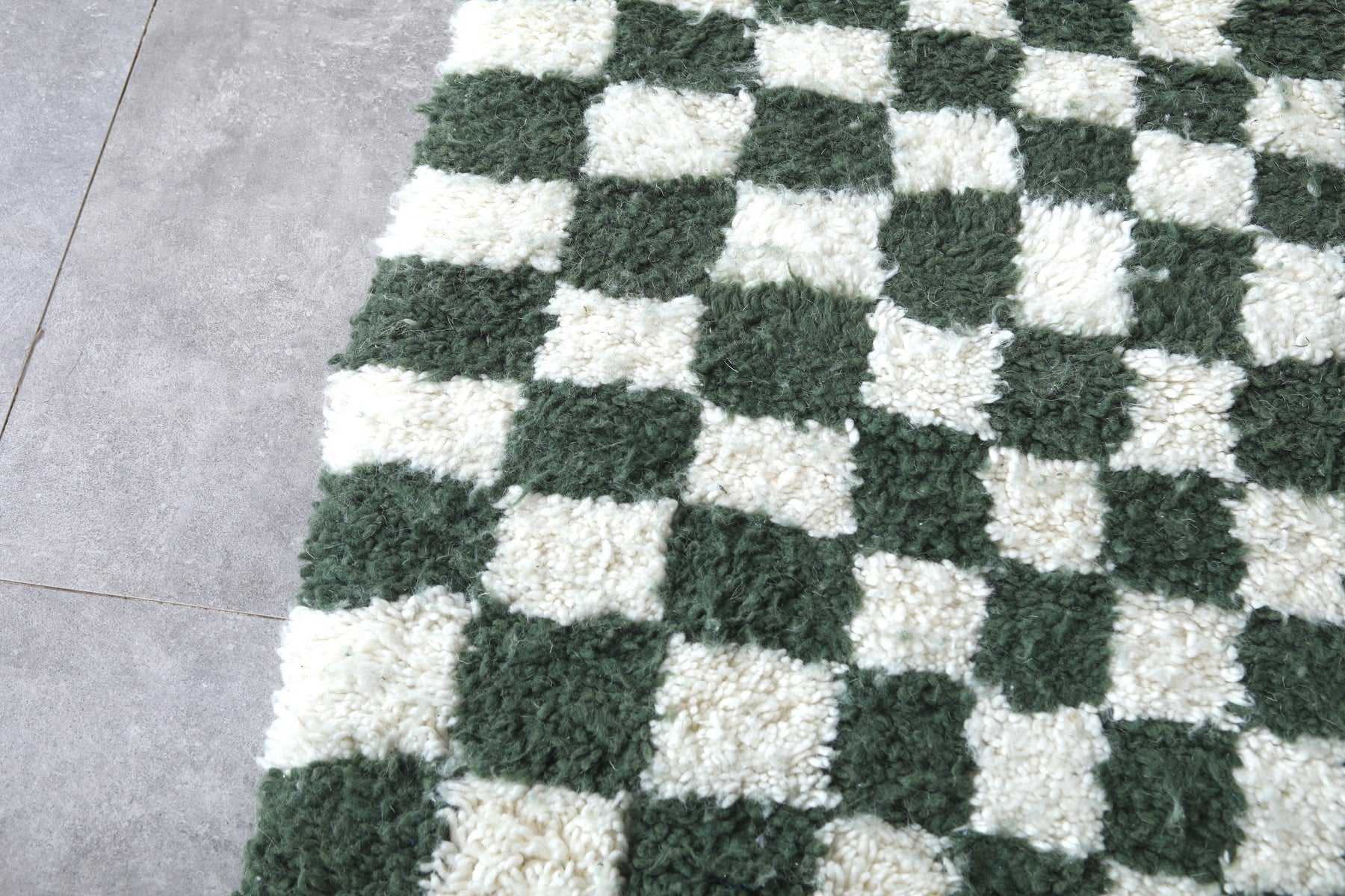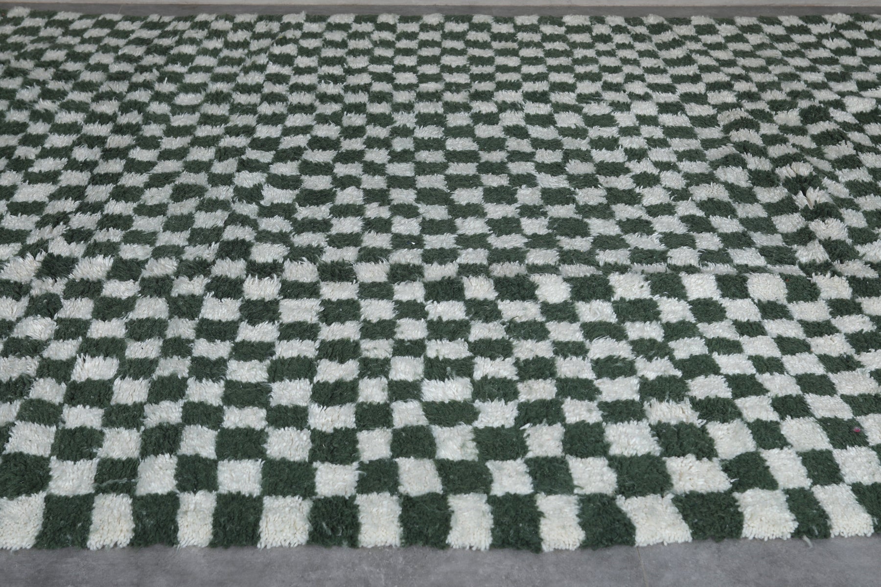 The classic checkered pattern in rich green and white tones creates a striking visual statement, perfect for modern and eclectic interiors.