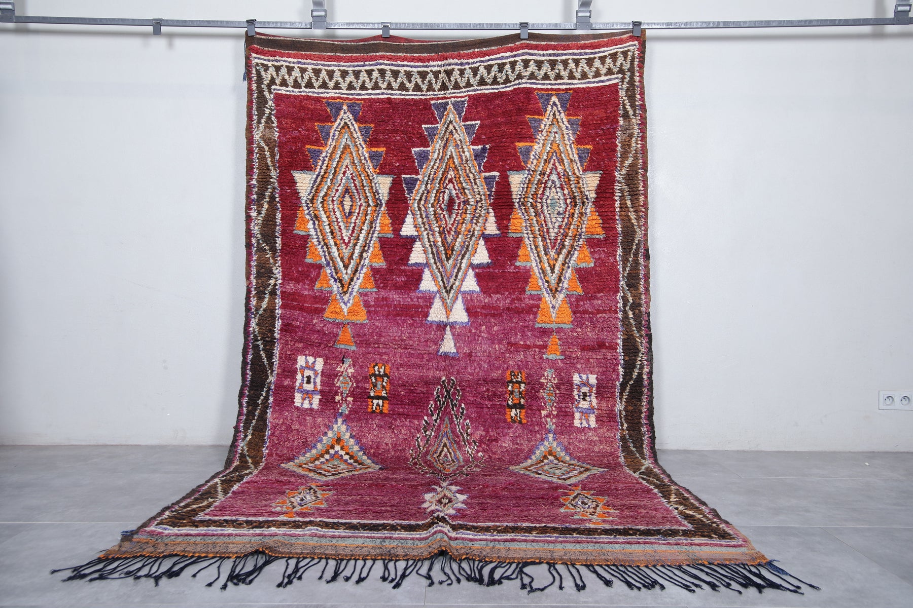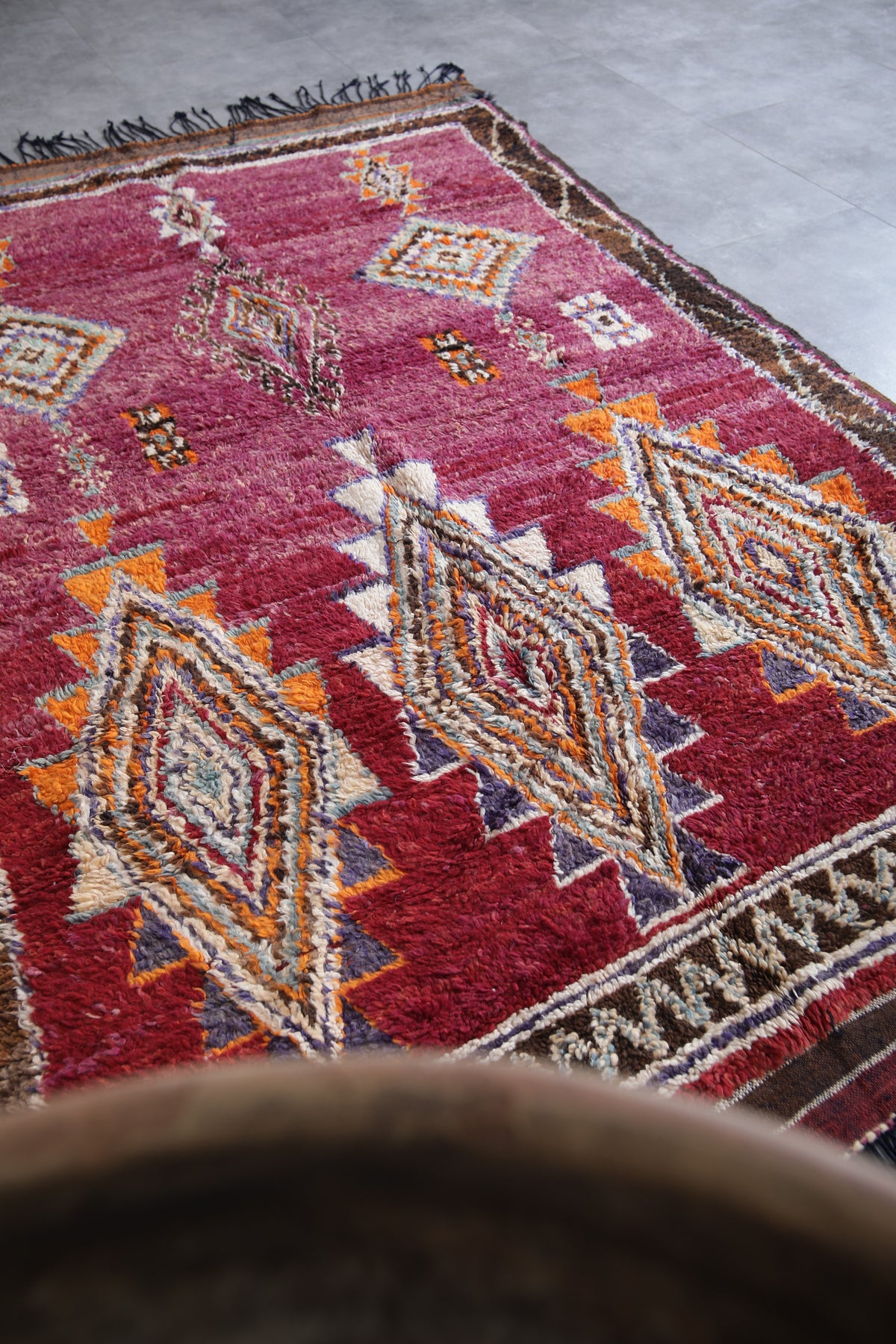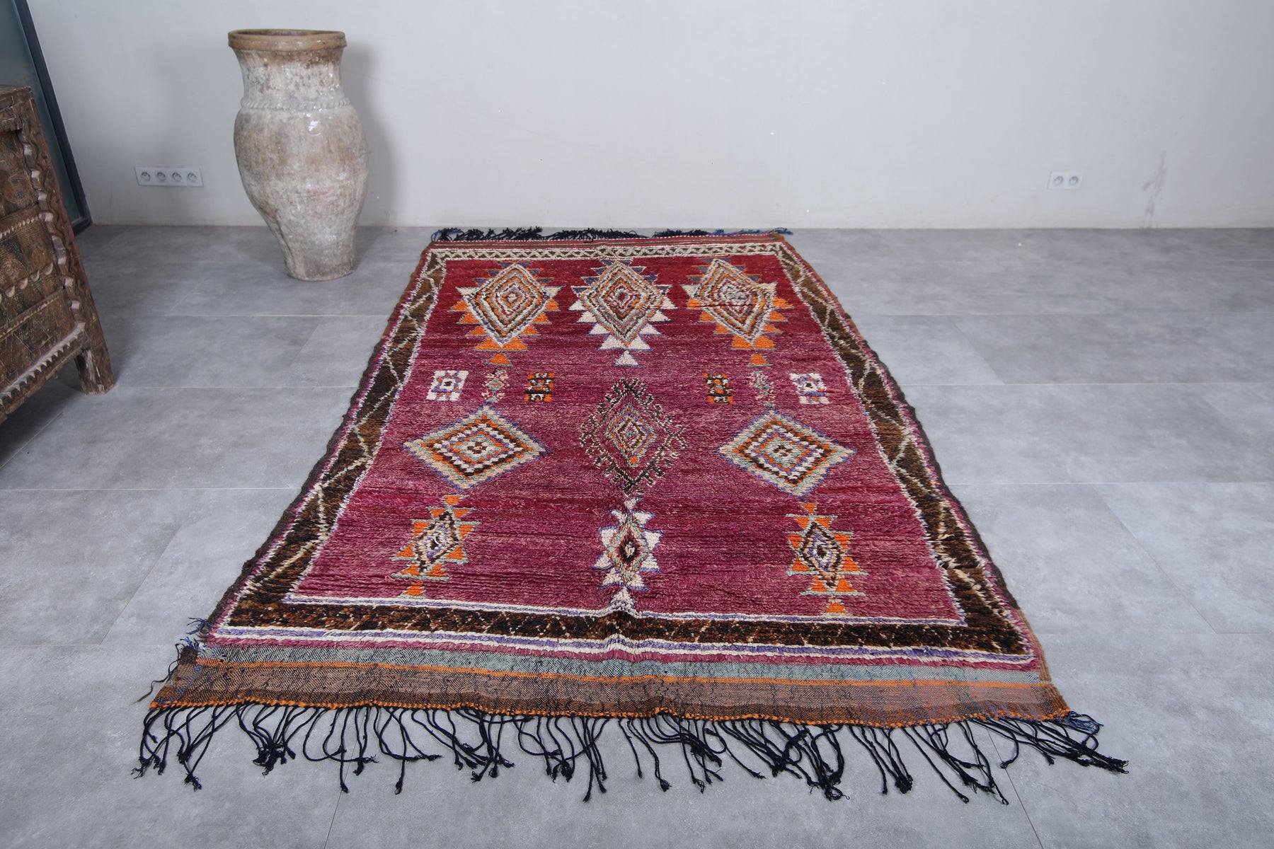 Bold red base with intricate Berber diamond motifs