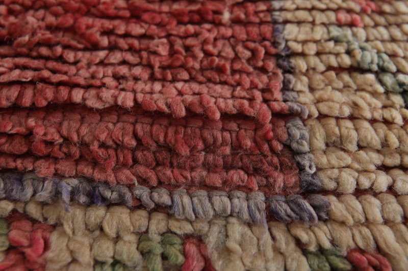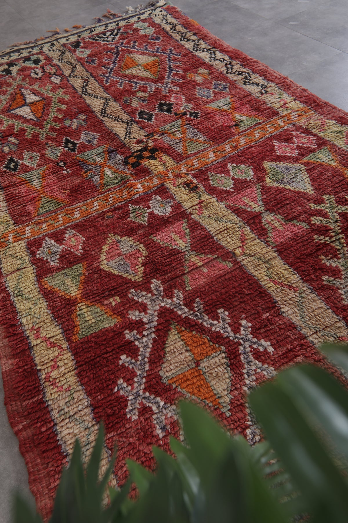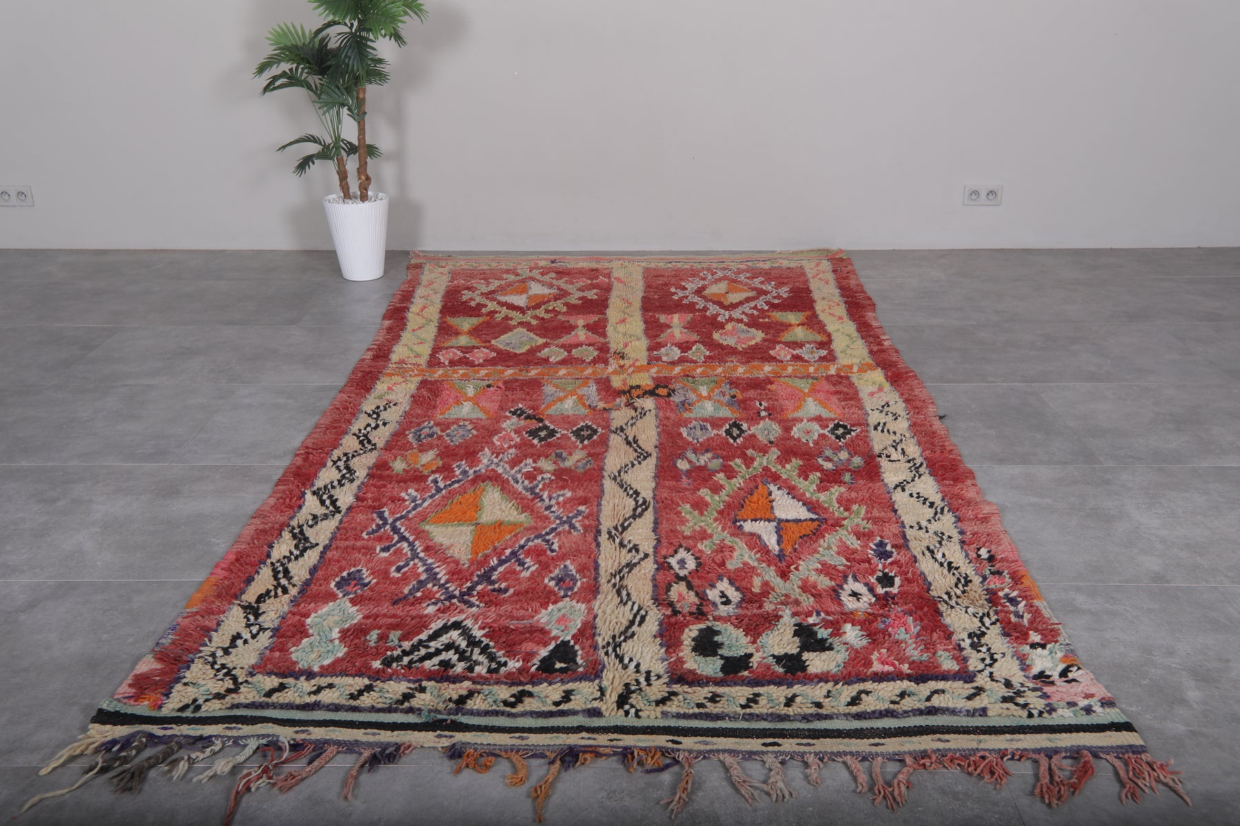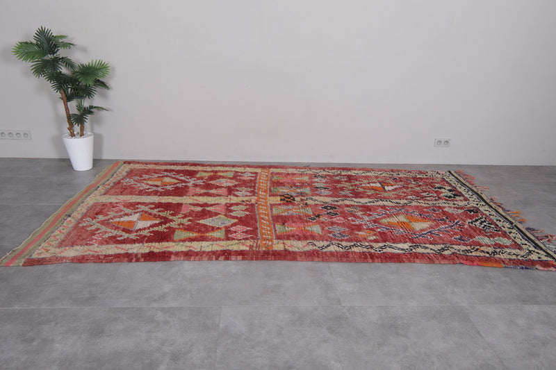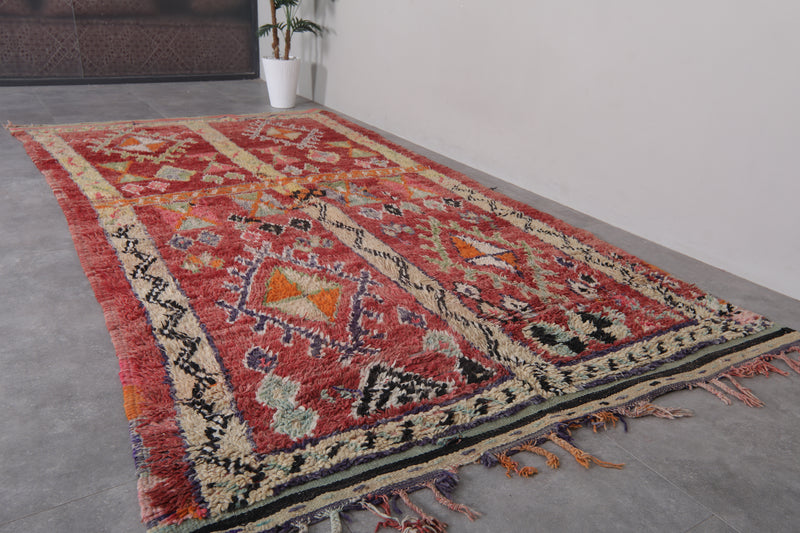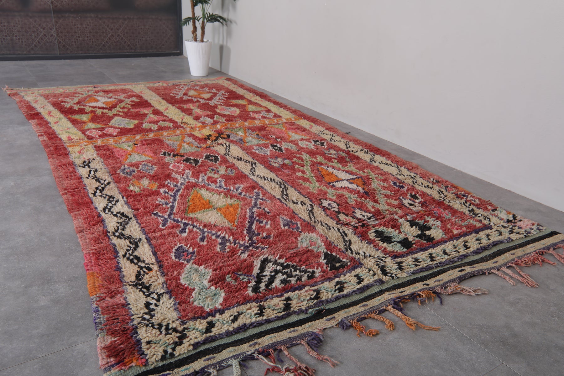 Add a splash of vibrant color to your space with this exquisite handmade Moroccan rug, measuring 5.7 x 11 feet. Featuring a bold red base adorned with intricate diamond patterns and geometric shapes, this rug brings traditional Moroccan craftsmanship to life. Accents of soft green, orange, and white add contrast and depth, making it a stunning focal point for any living room, bedroom, or bohemian-style space. Woven from high-quality wool, this rug offers durability, warmth, and timeless elegance. Perfect for creating an inviting atmosphere filled with culture and artistry.