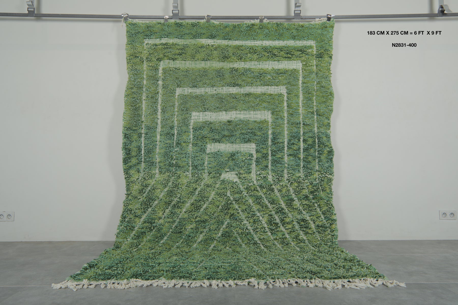 Expertly handcrafted in Morocco, this 6' x 9' wool rug showcases traditional artisanal techniques passed down through generations. The natural wool fibers provide exceptional durability while offering thermal insulation and sound absorption properties. Each piece features unique variations in pattern and texture, reflecting authentic Moroccan craftsmanship that elevates any interior space.