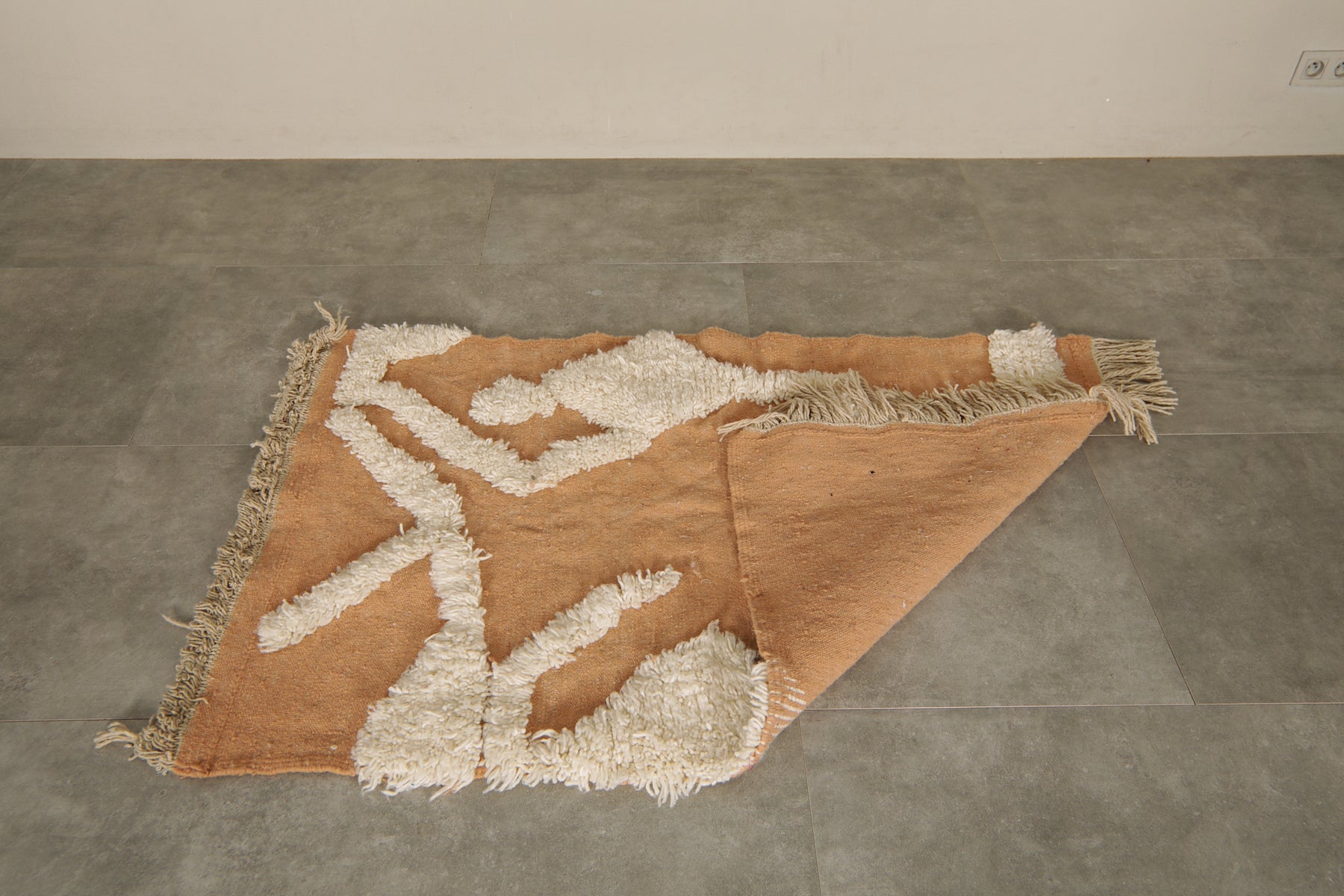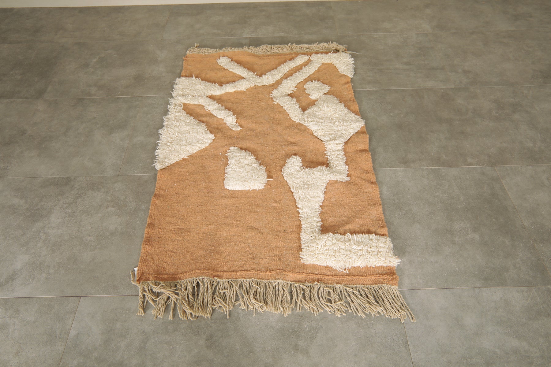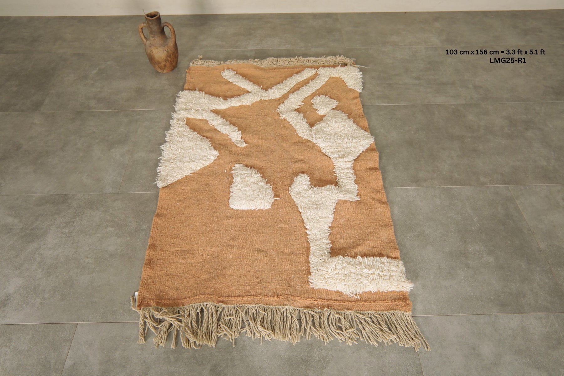 Handmade Moroccan terracotta & cream wool rug - 3.3 FT Х 5.1 FT
