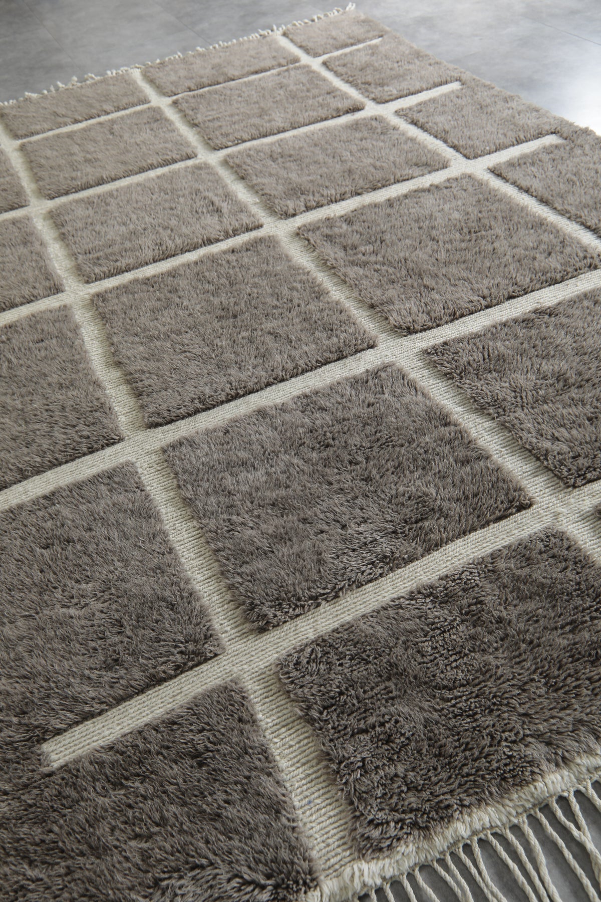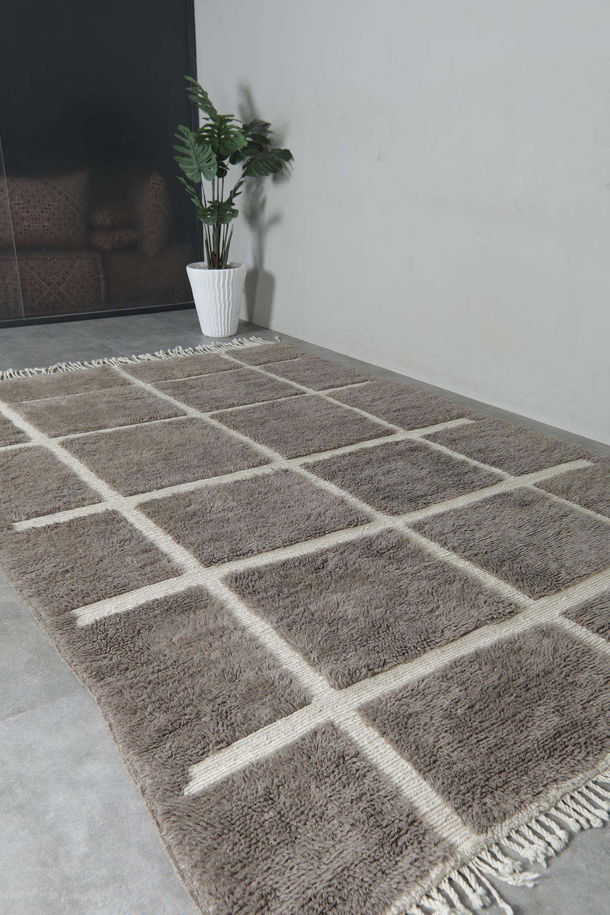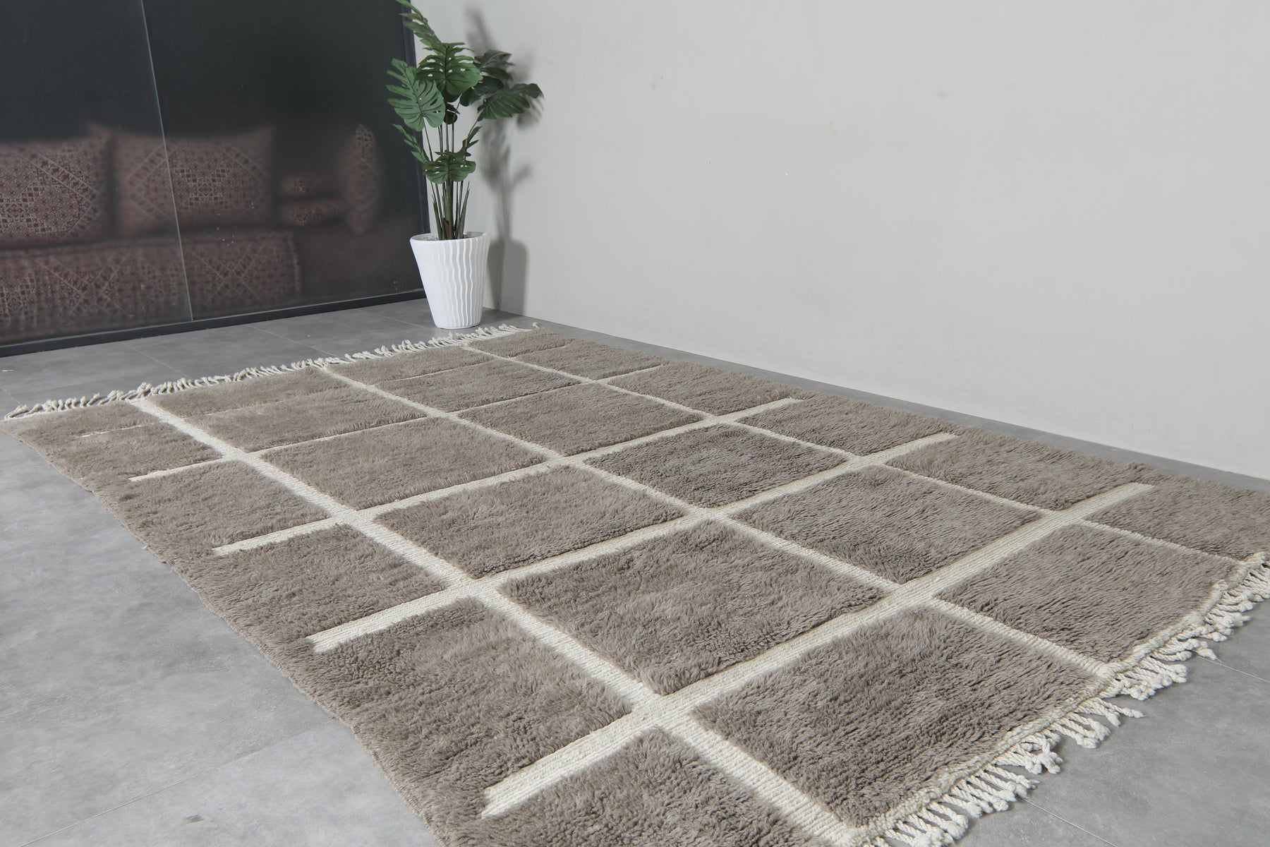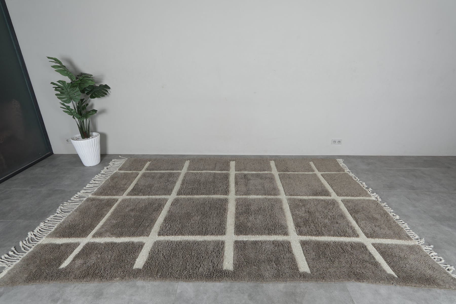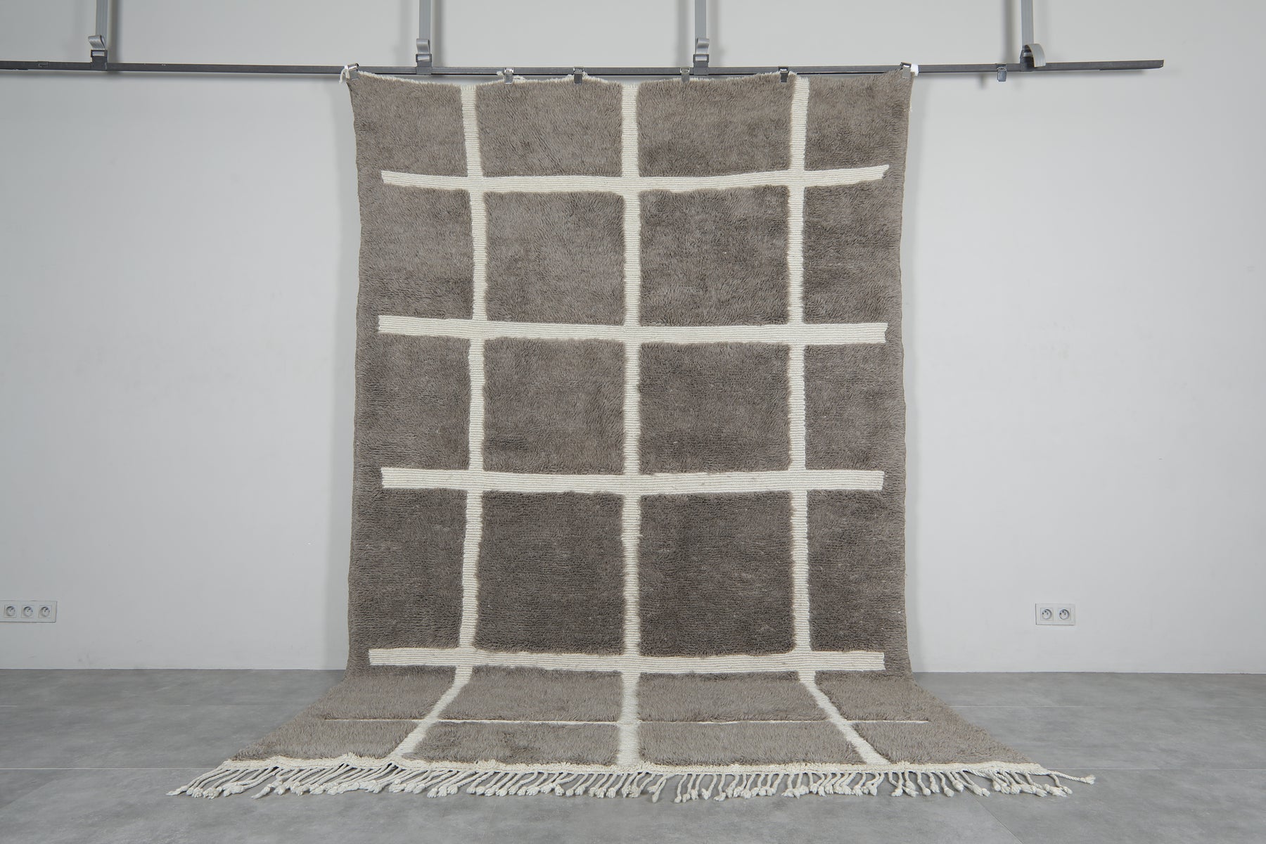 Elevate your space with this luxurious Handwoven Moroccan rug, measuring 7.2 FT x 10.7 FT. Crafted from 100% natural wool, this elegant piece features a modern grid pattern in earthy tones, blending traditional craftsmanship with contemporary design. Its soft texture and durable quality make it a timeless addition to any home.