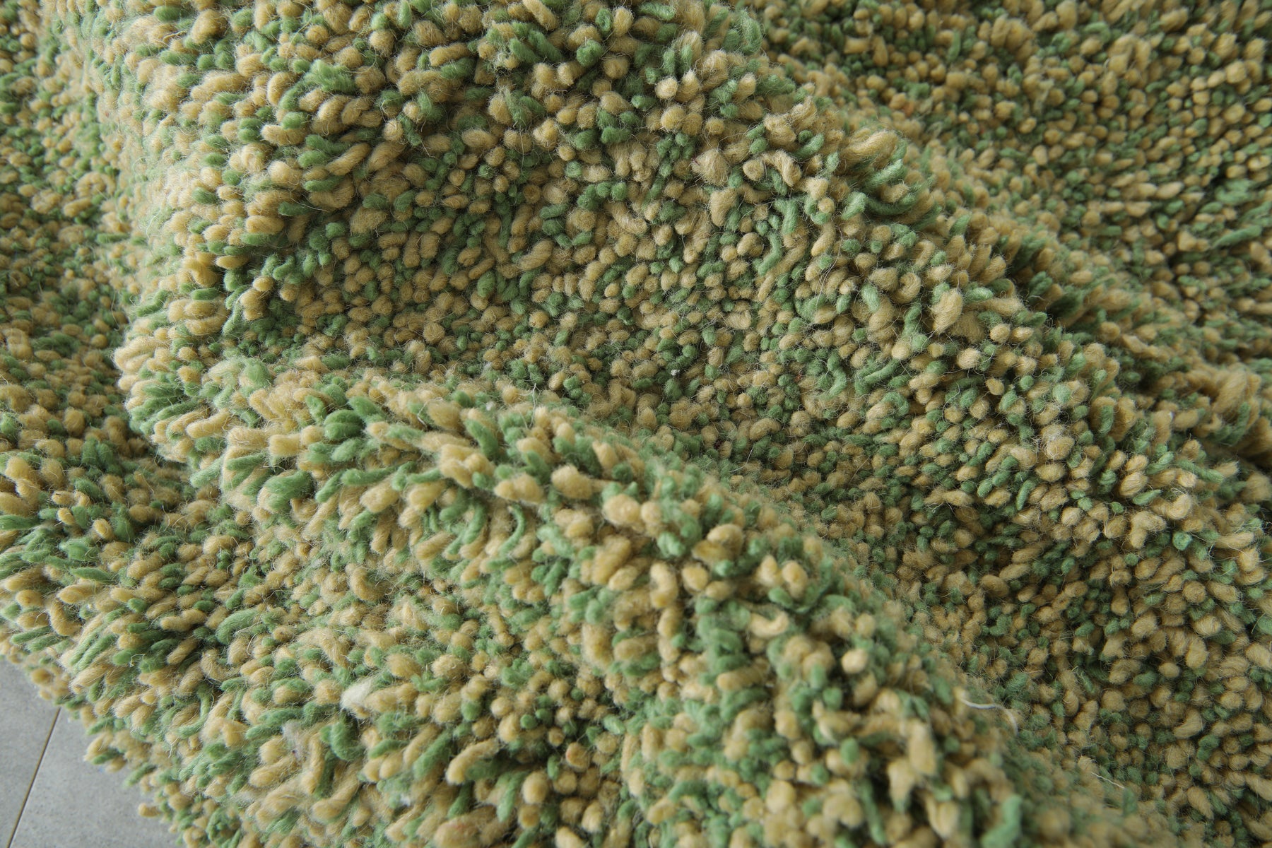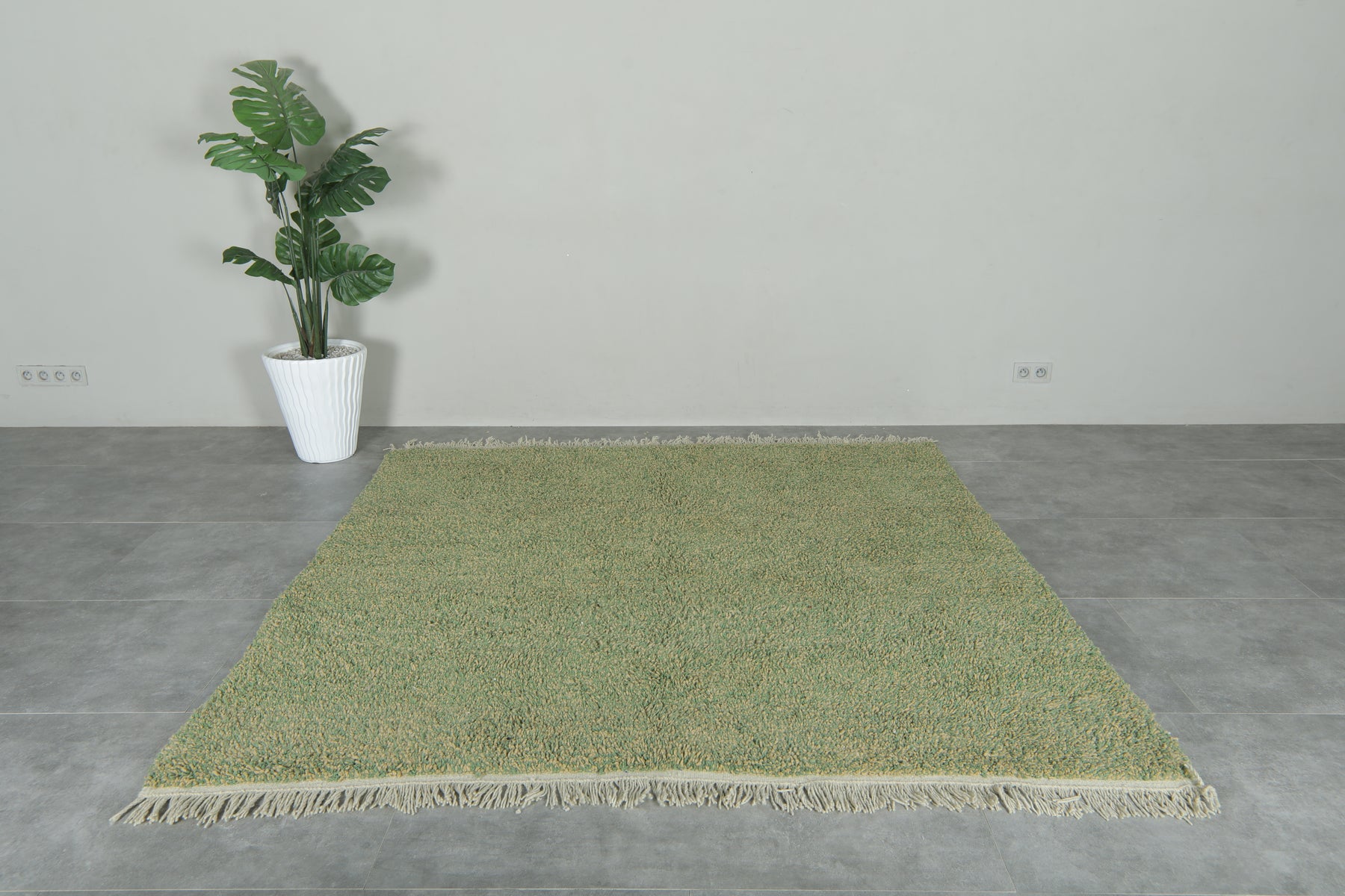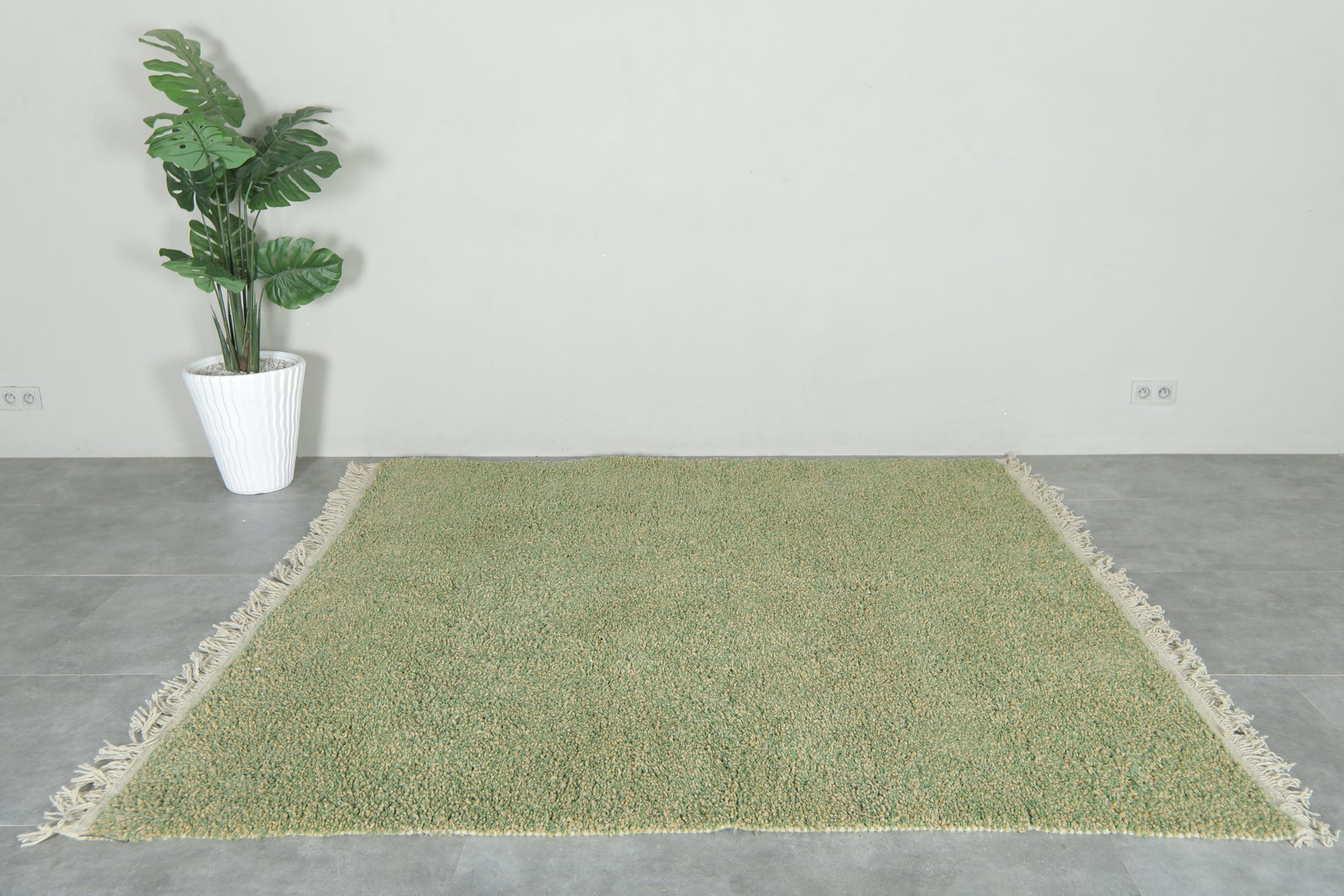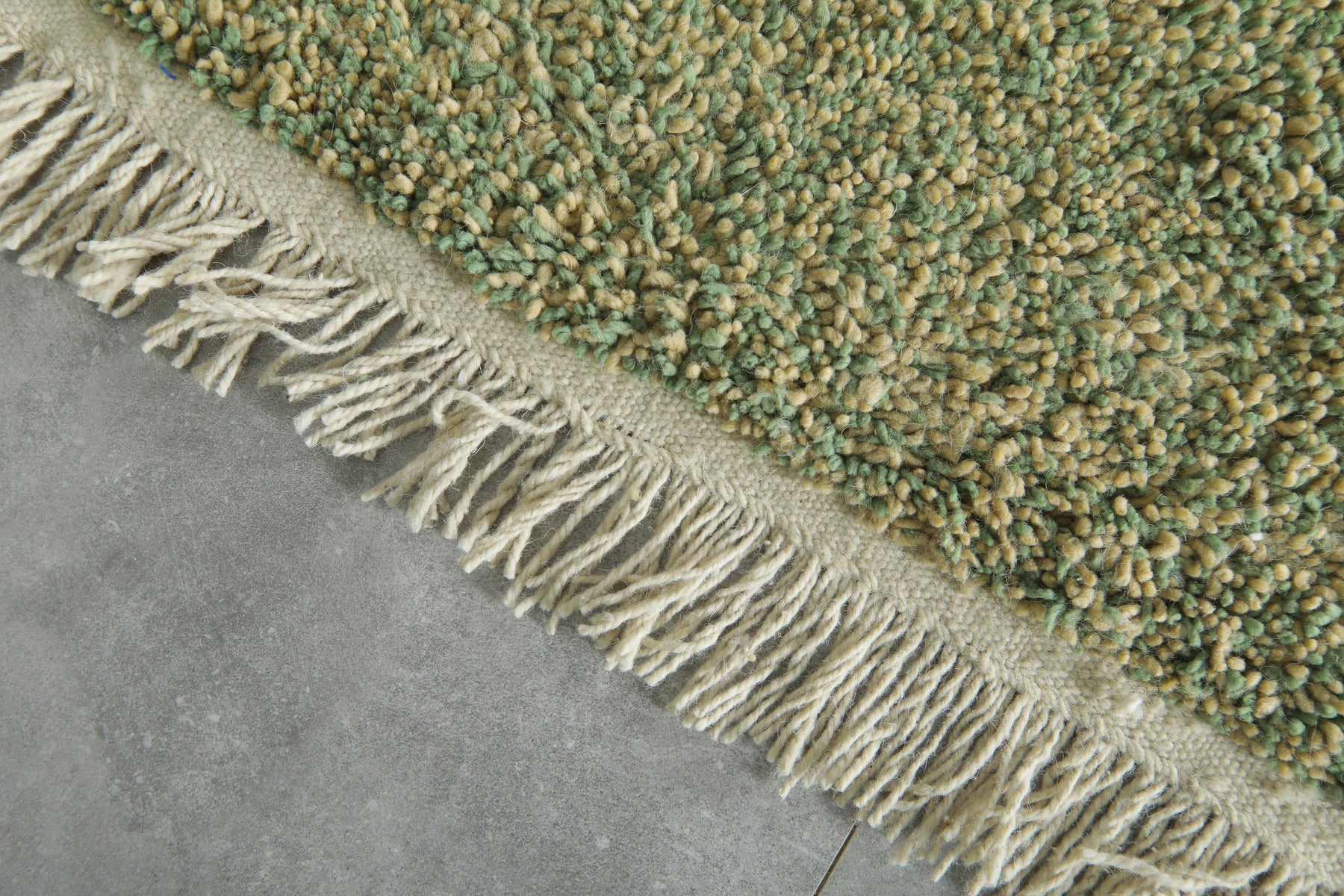 Add a touch of nature-inspired serenity to your home with this beautiful sage green and beige wool rug, handwoven in the timeless Moroccan tradition. Crafted from 100% natural wool, this rug features a lush, high-pile texture in a soothing blend of soft sage green and earthy beige, perfect for grounding any modern, bohemian, or minimalist space.
