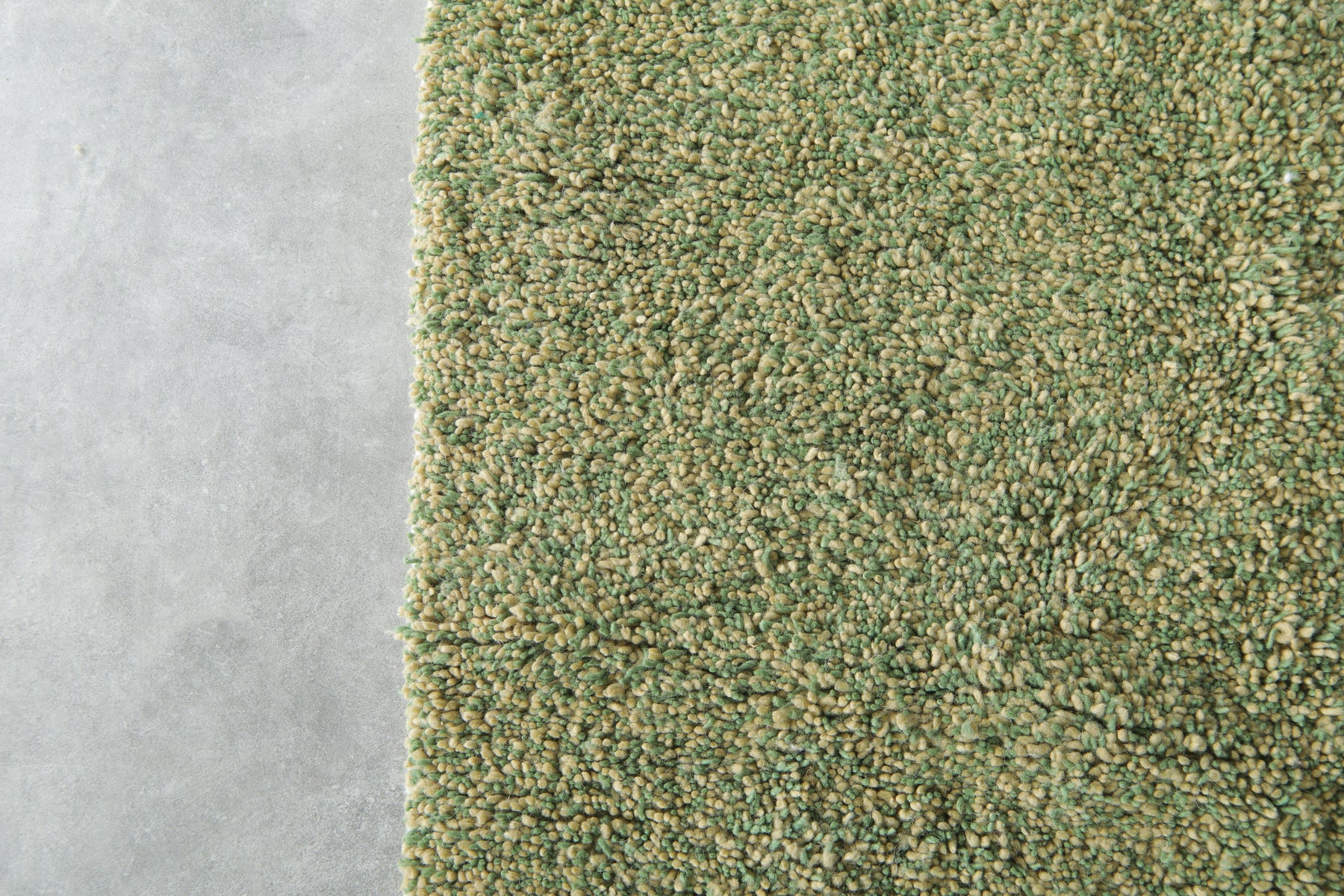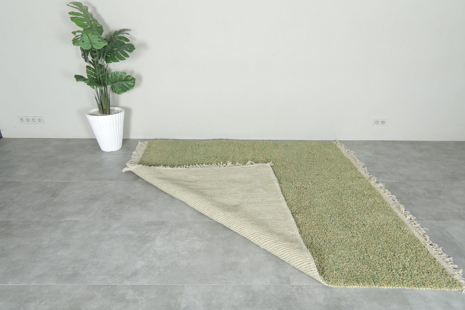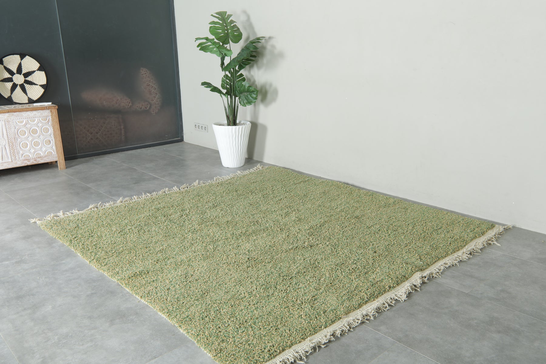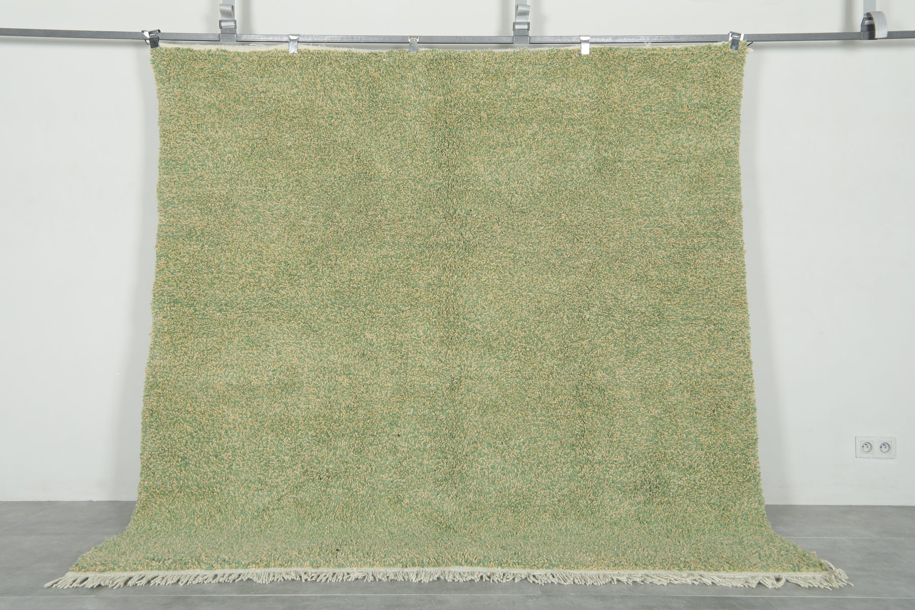 Add a touch of nature-inspired serenity to your home with this beautiful sage green and beige wool rug, handwoven in the timeless Moroccan tradition. Crafted from 100% natural wool, this rug features a lush, high-pile texture in a soothing blend of soft sage green and earthy beige, perfect for grounding any modern, bohemian, or minimalist space.