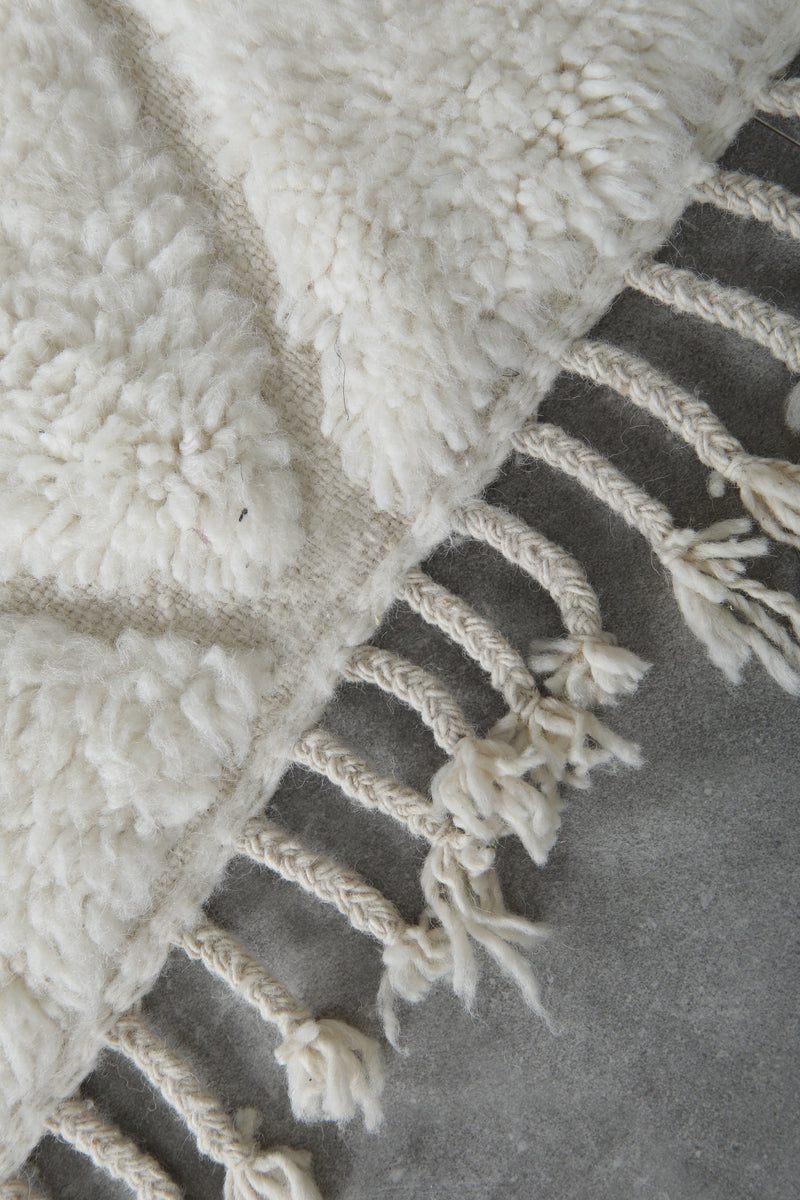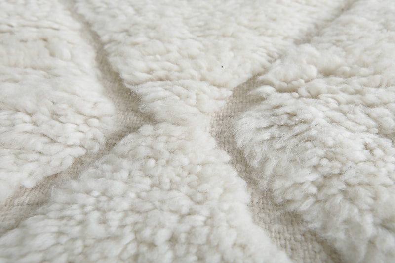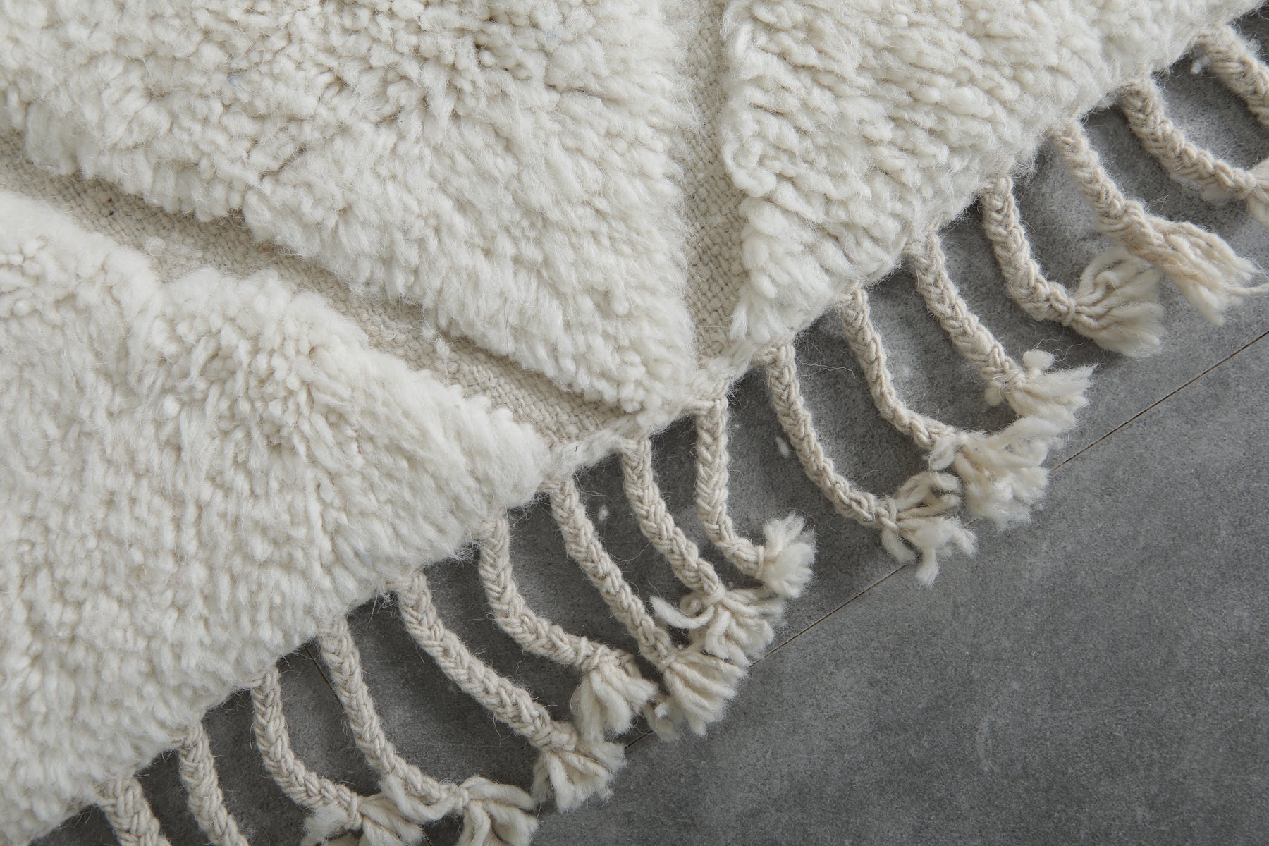 Expertly handwoven using 100% wool, the Moroccan Berber Rug in size 3.2 FT X 5.6 FT offers a cozy and durable addition to any room. Inspired by traditional Berber designs, this rug adds an authentic touch to your decor while providing softness and warmth underfoot. Made from natural materials, this rug is also eco-friendly and easy to maintain. Bring the charm of Morocco into your home with this beautiful wool rug.