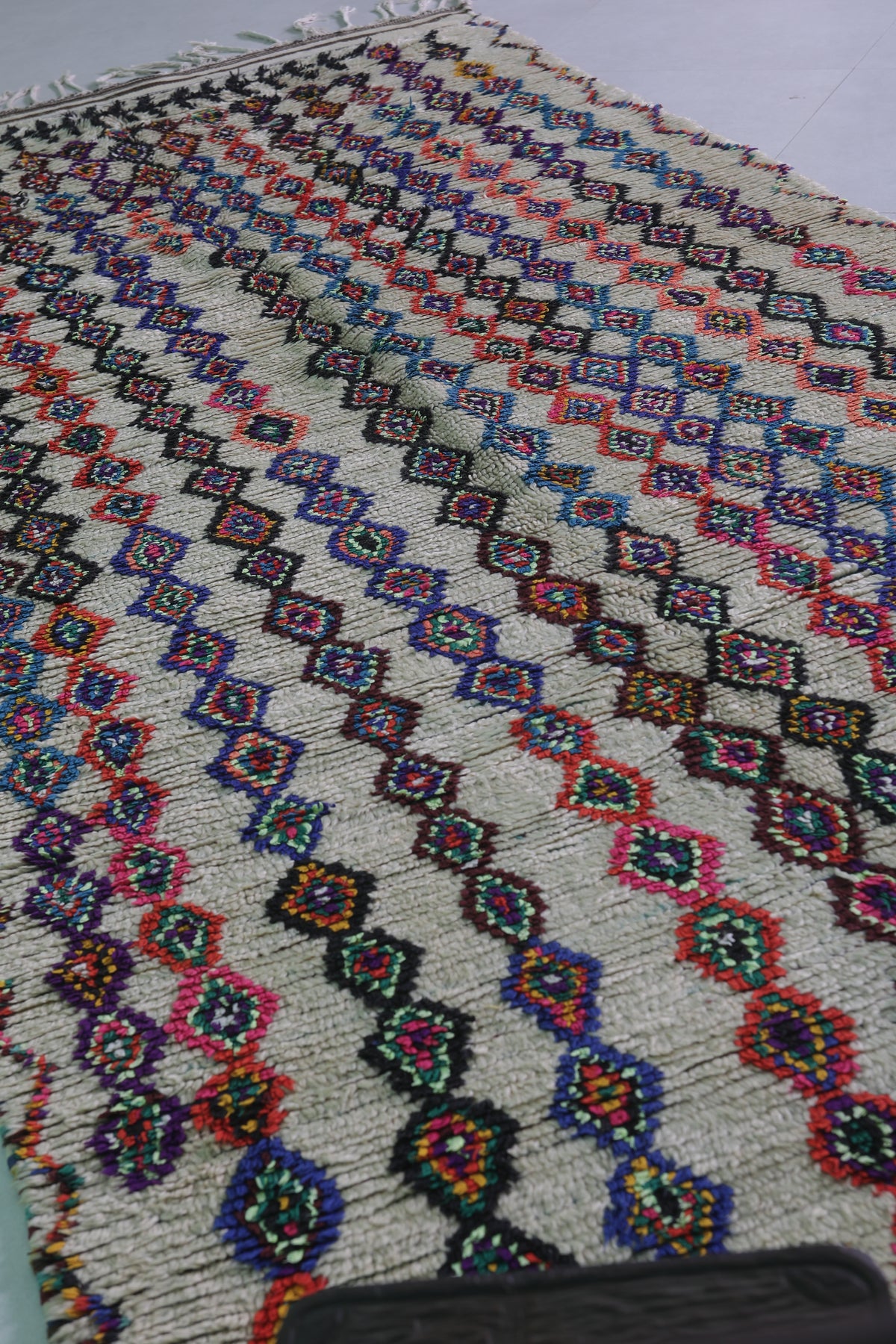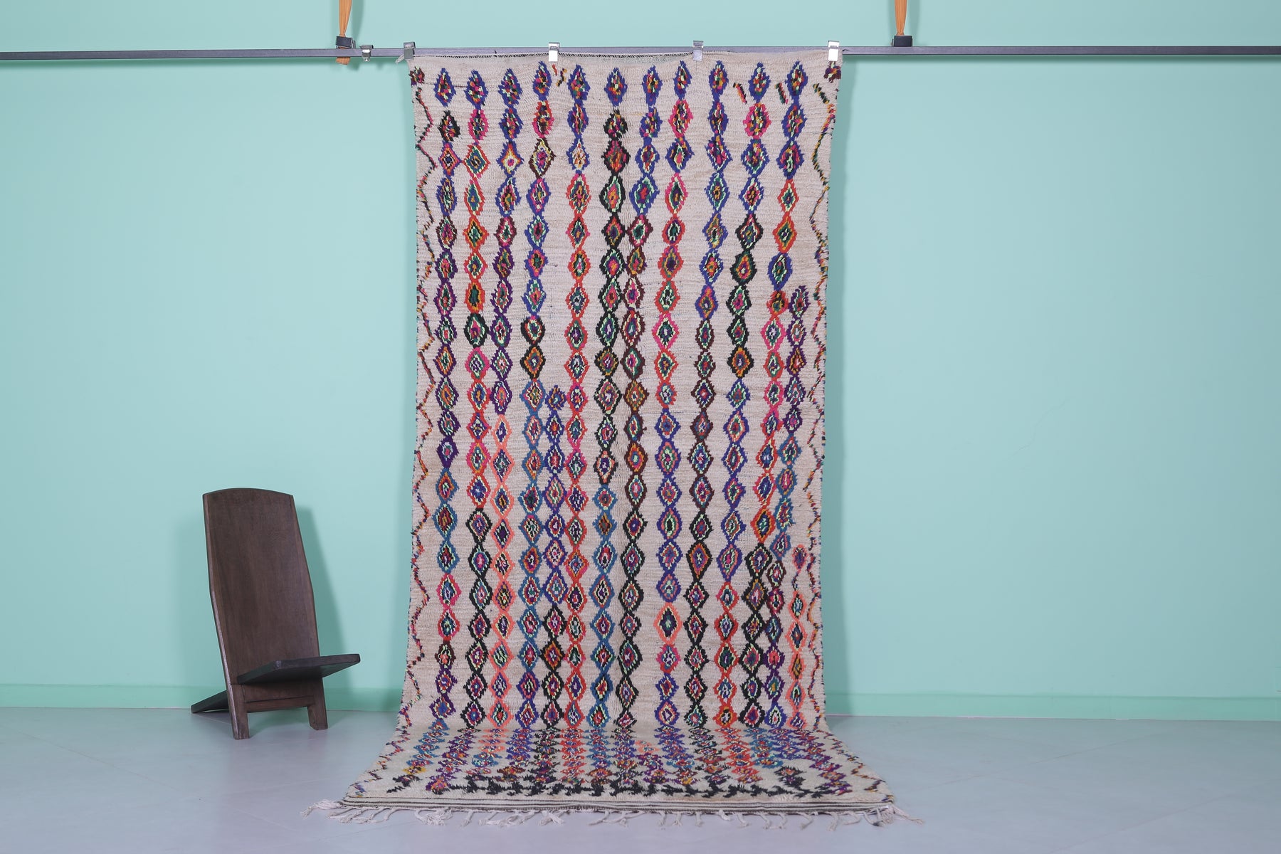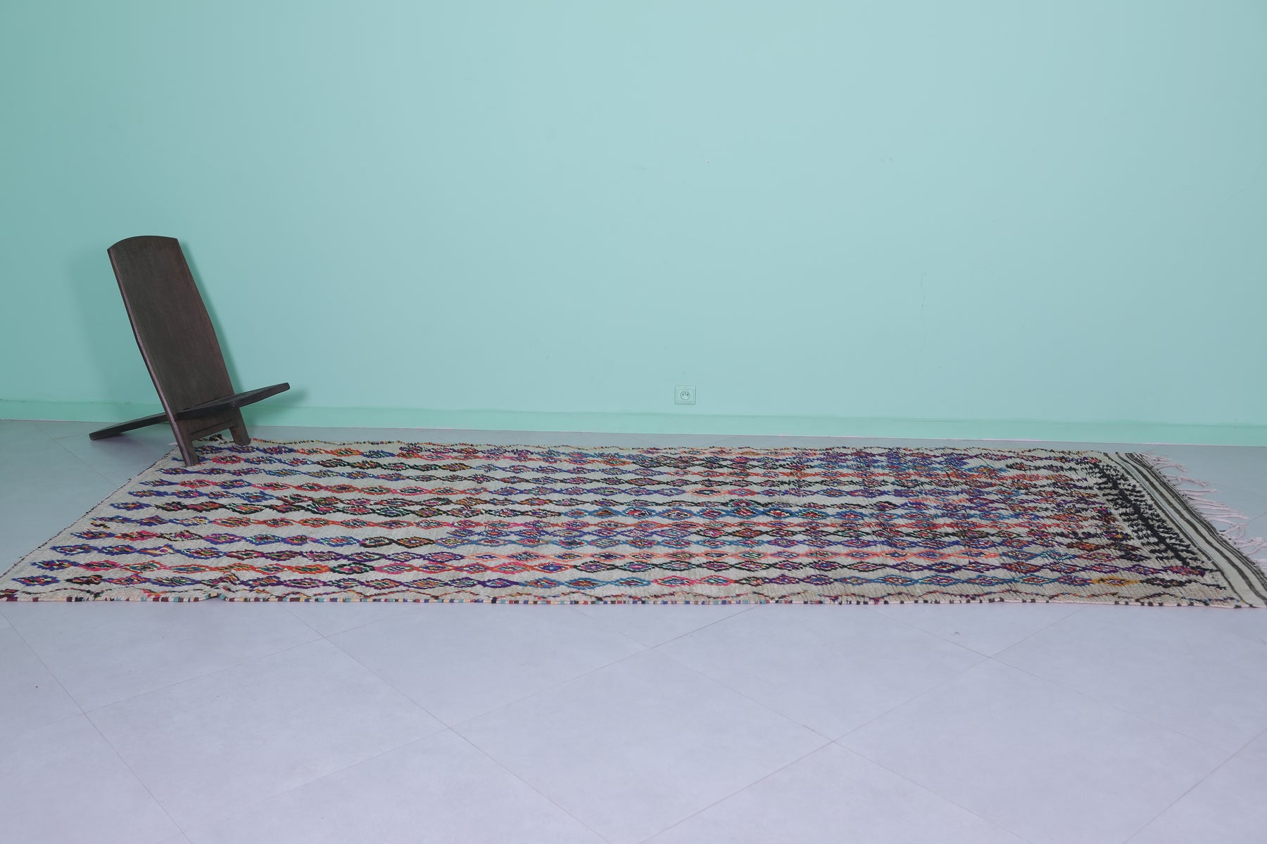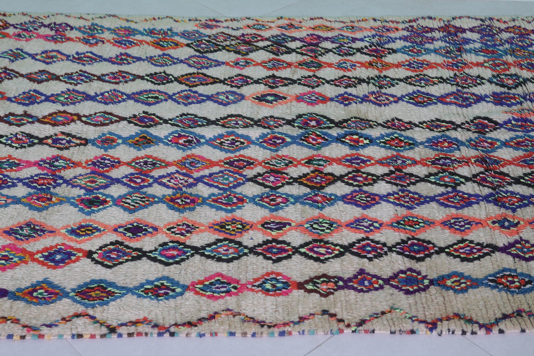 Add vibrancy to your home with this colorful handmade Berber Moroccan rug, measuring 4.7 FT x 12.1 FT. Featuring vertical rows of multicolored diamond motifs in striking shades of red, blue, green, purple, and orange, this rug beautifully balances artistry and modern style. Handwoven from premium natural fibers, it offers exceptional durability, warmth, and texture. Perfect for hallways, living rooms, or eclectic spaces, this rug brings energy and personality to any setting.