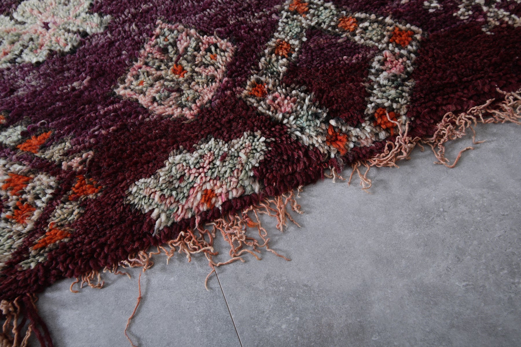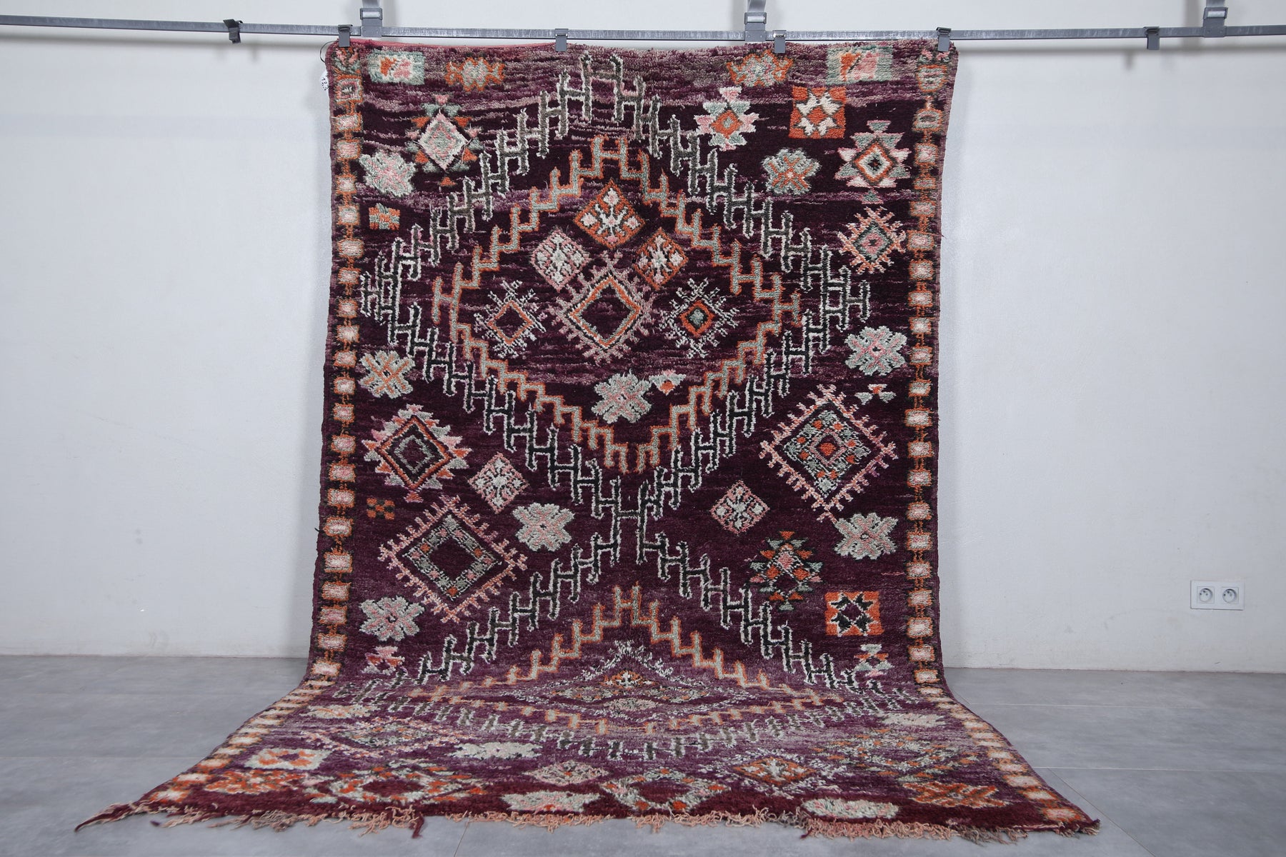 Elevate your living space with this stunning Moroccan handmade rug, sized 5.8 FT x 9.9 FT. Woven with high-quality wool, the rug features intricate geometric patterns and tribal symbols in rich shades of deep plum, cream, and warm orange tones. The detailed Berber artistry reflects a timeless cultural heritage, making this piece a perfect addition to bohemian, modern, or eclectic interiors. Whether in a living room, bedroom, or workspace, this unique rug brings warmth, texture, and a statement of history to your decor. A true blend of tradition and craftsmanship.