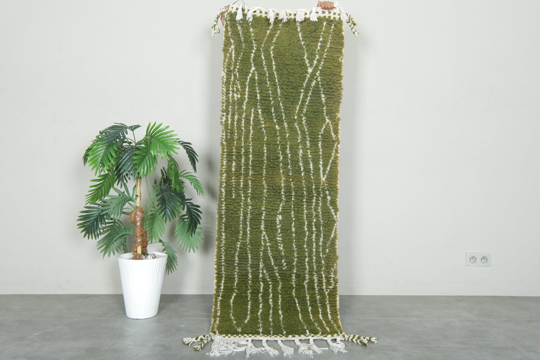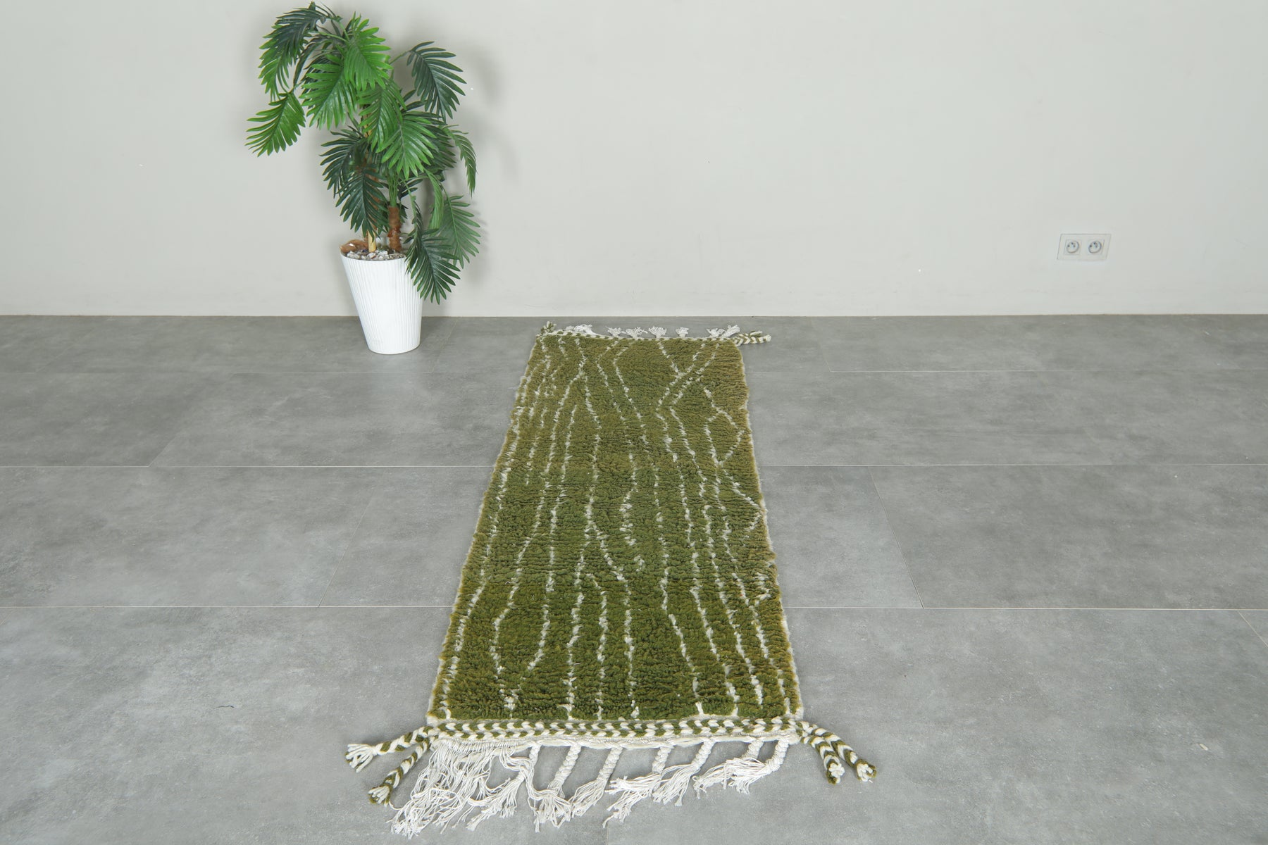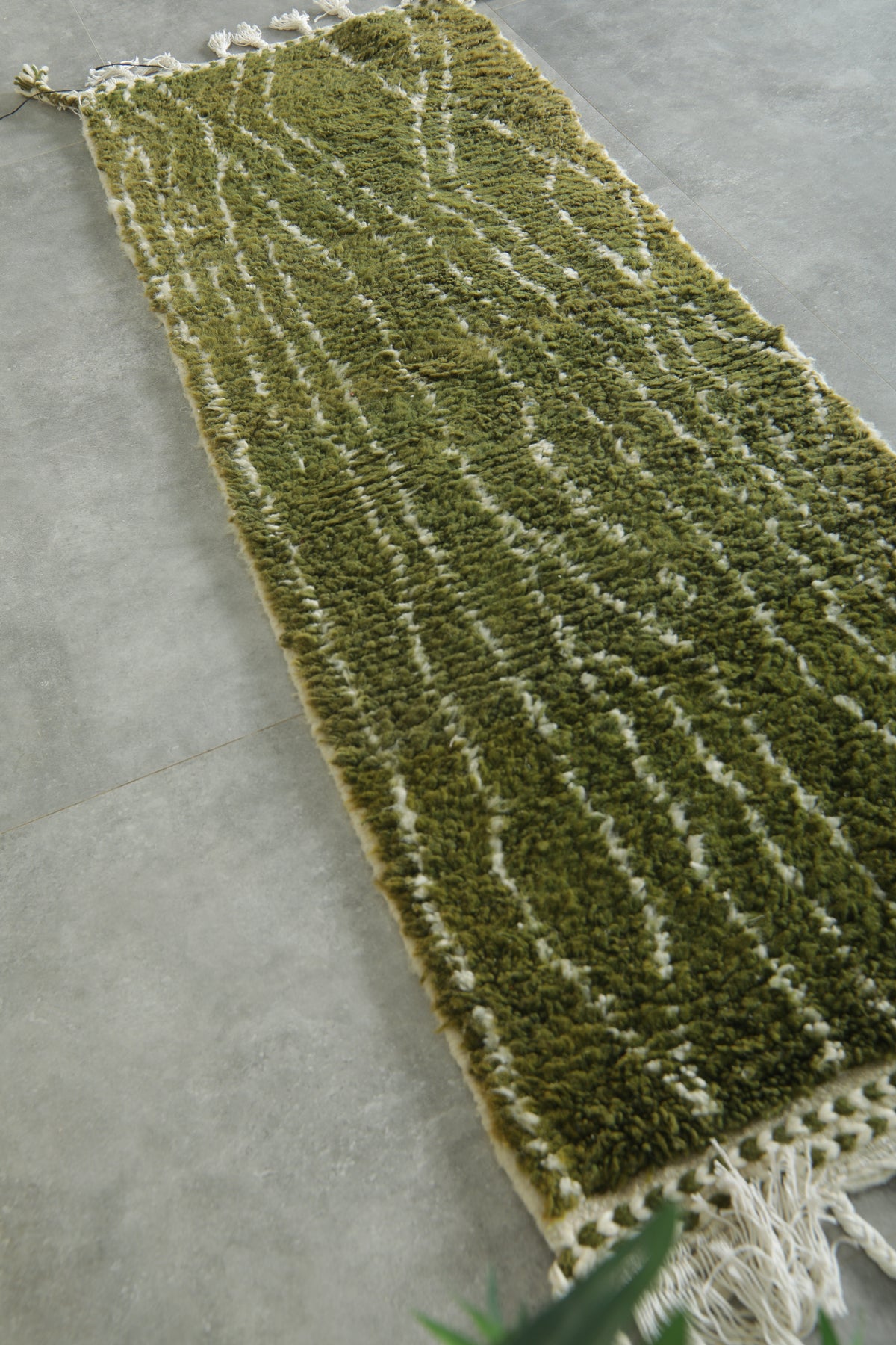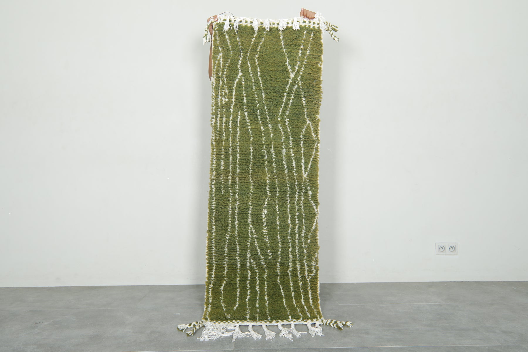 Moroccan wool runner – Olive green beni ourain style - 2.1 ft x 6 ft