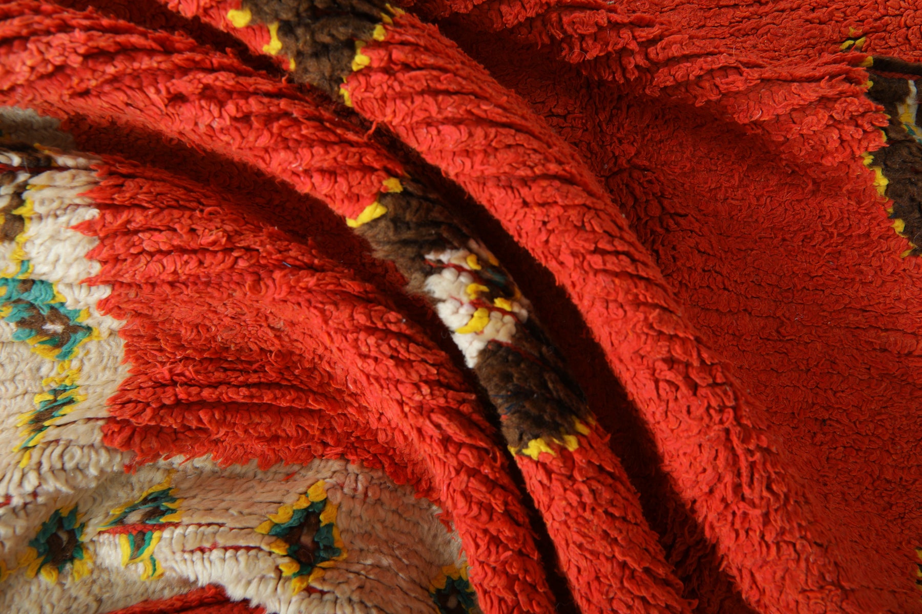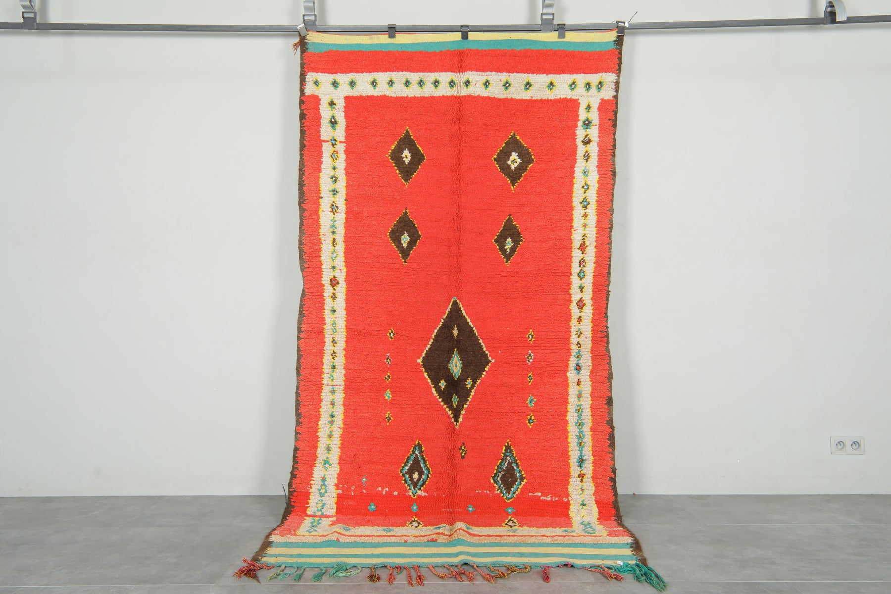Bring vibrant tradition and eco-conscious design into your home with this one-of-a-kind Azilal rug. Handwoven by Moroccan artisans using upcycled fabric scraps, each piece tells a story of heritage, sustainability, and artistic expression. This vintage Moroccan rug features a bold patchwork of bright colors and geometric patterns, making it a perfect accent for bohemian, eclectic, or modern interiors.