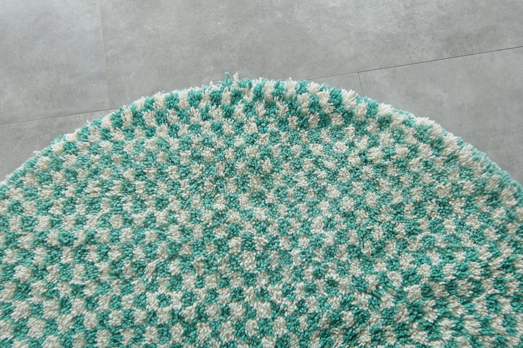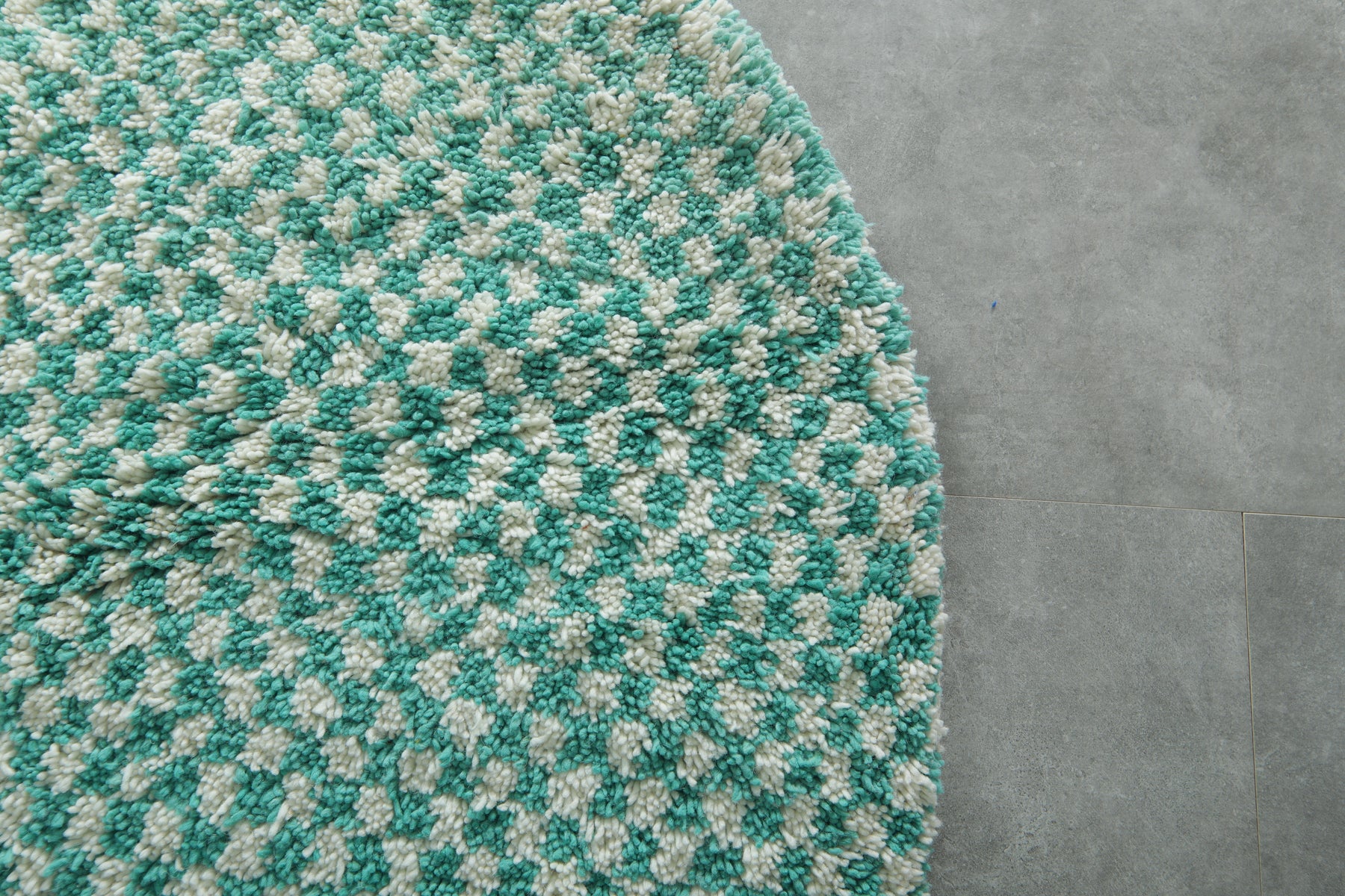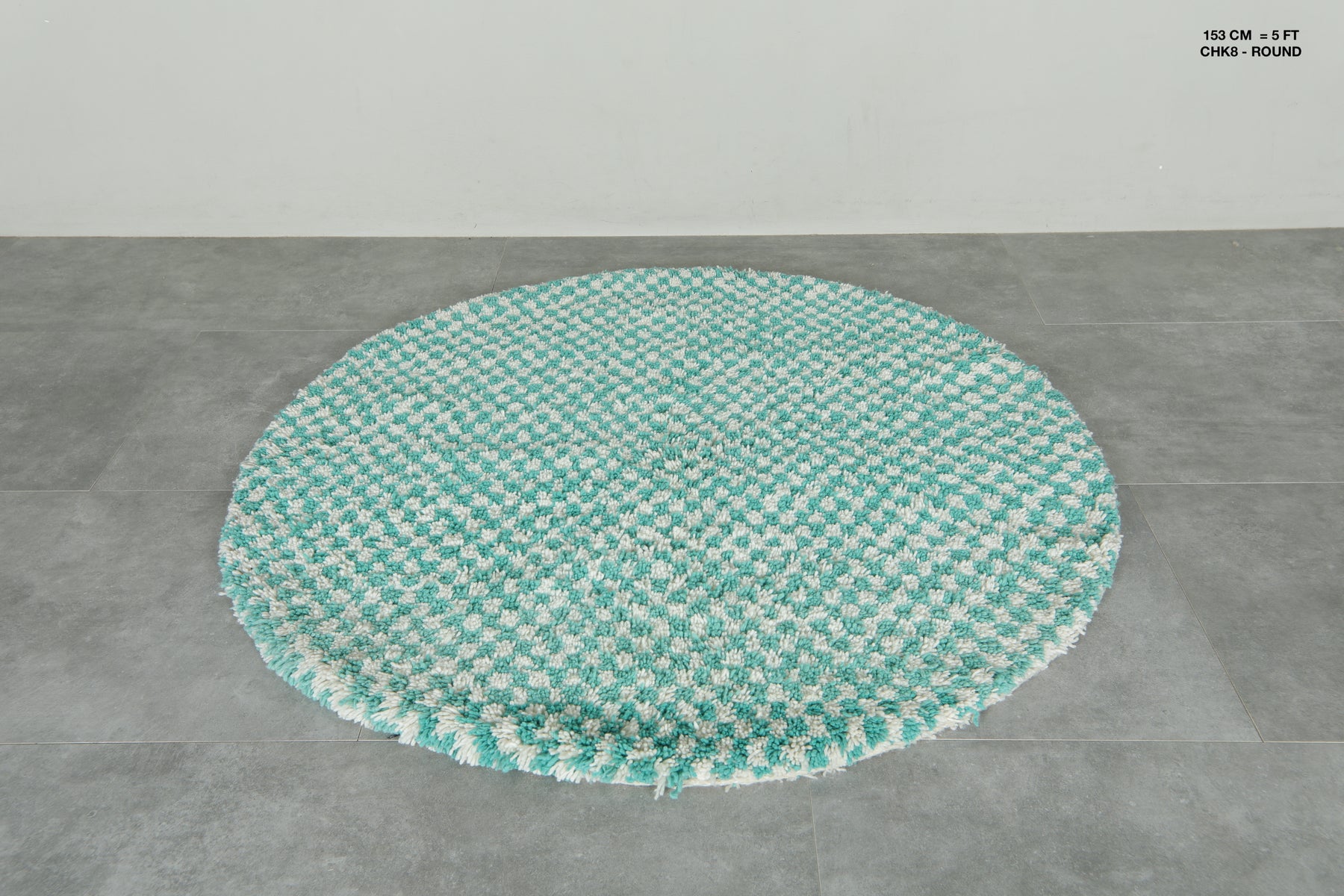 Round Moroccan Wool Rug - 4.9ft Mint Checkerboard