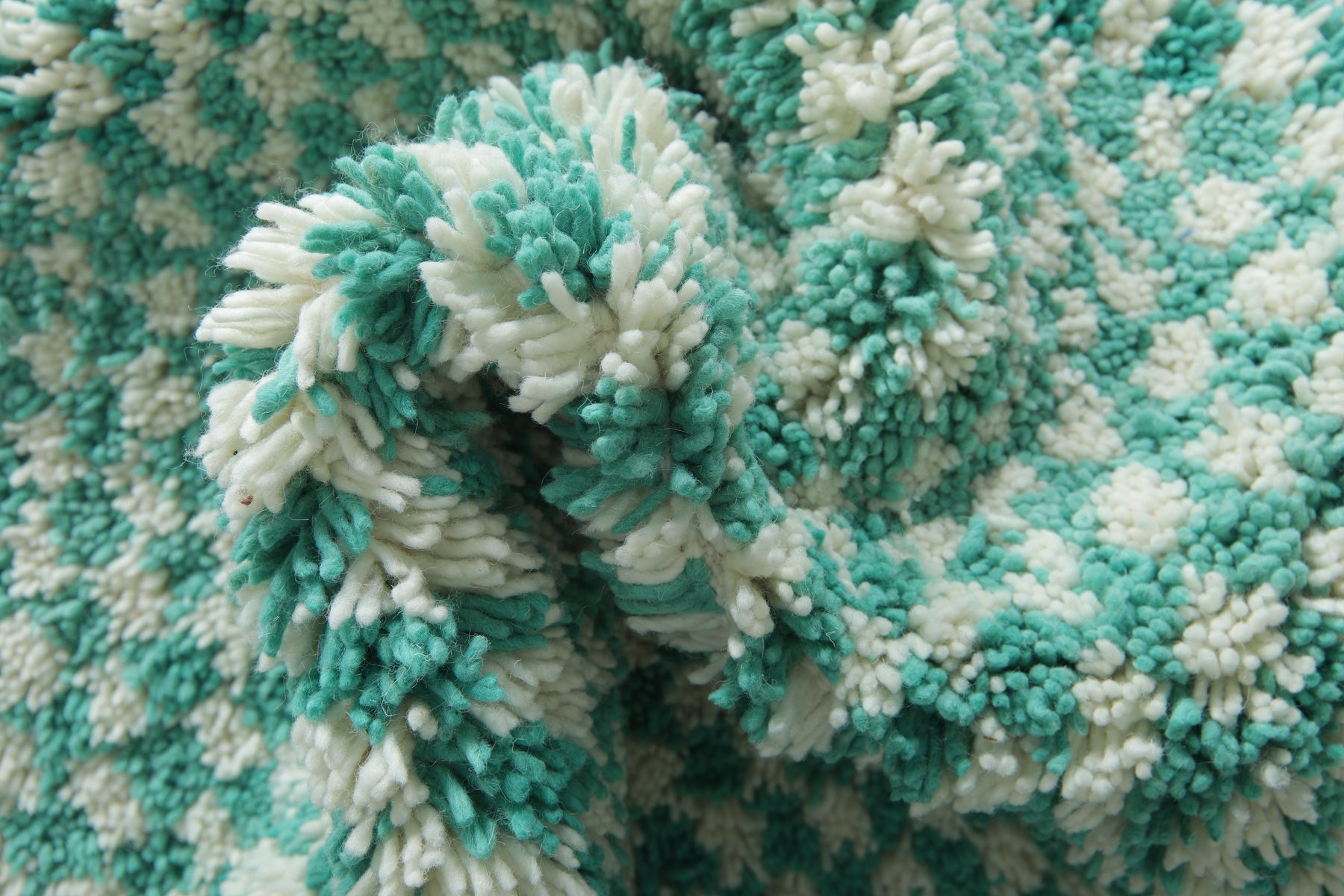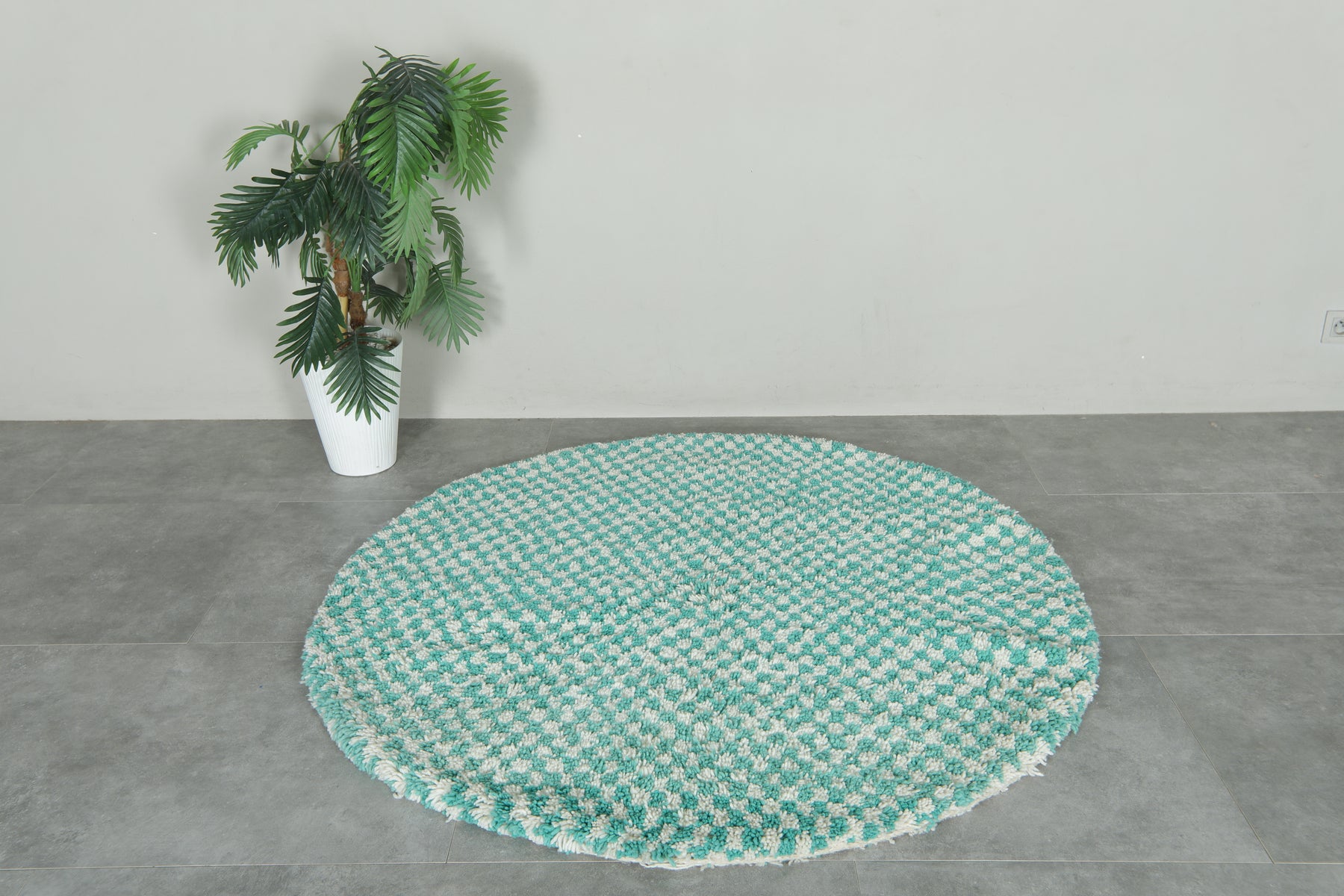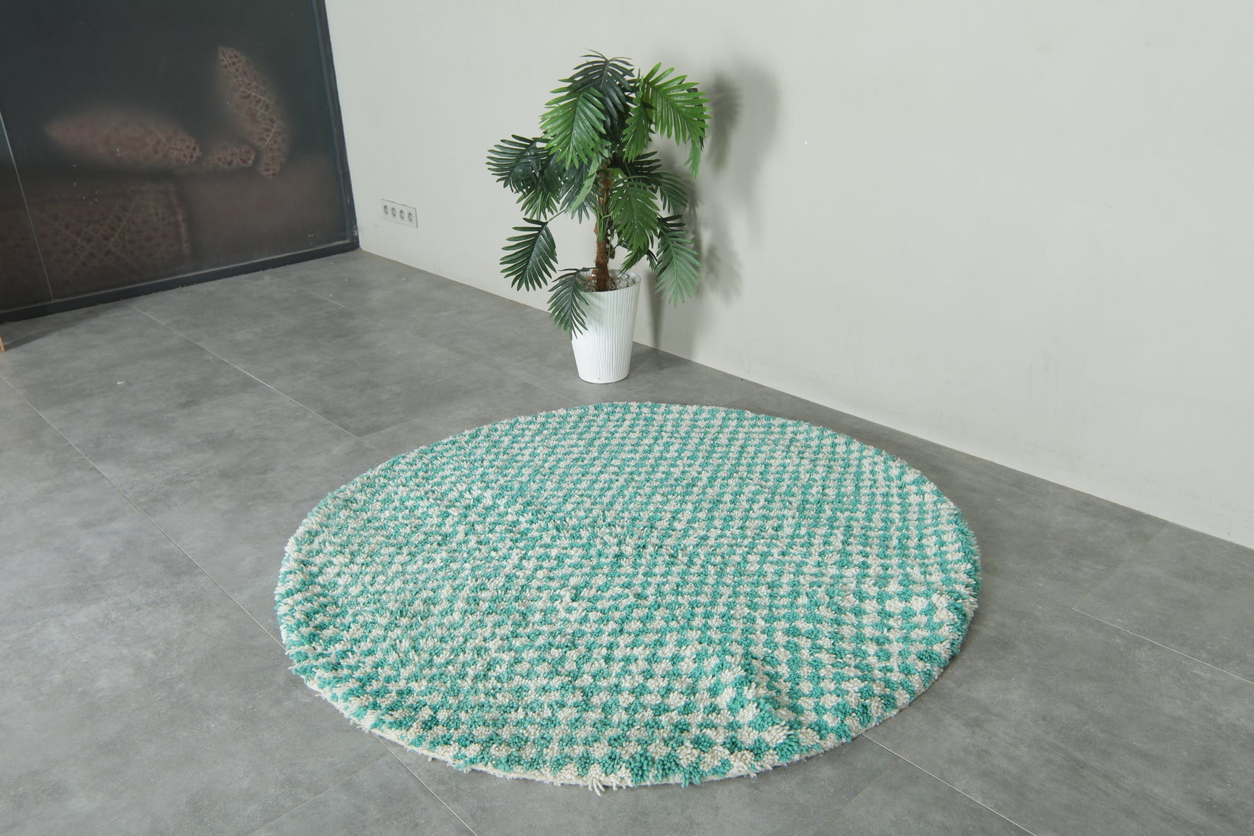 Round Moroccan Wool Rug - 4.9ft Mint Checkerboard