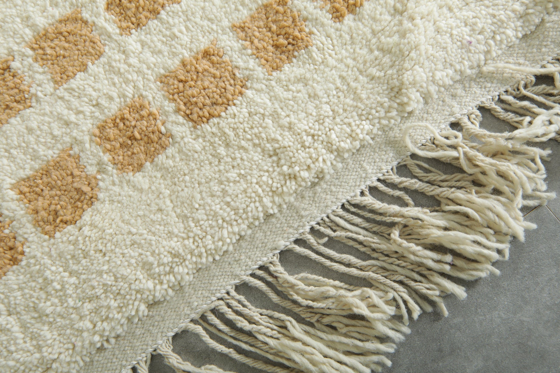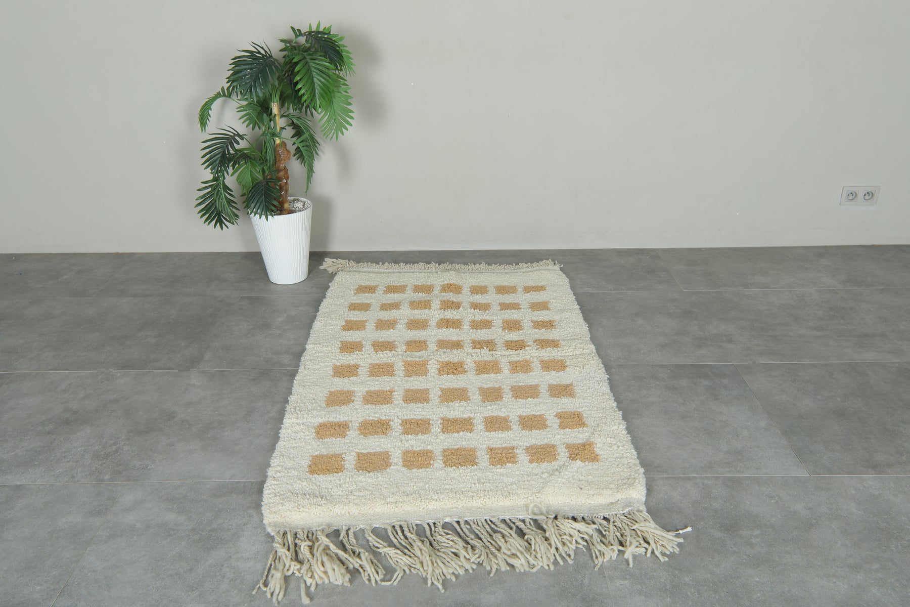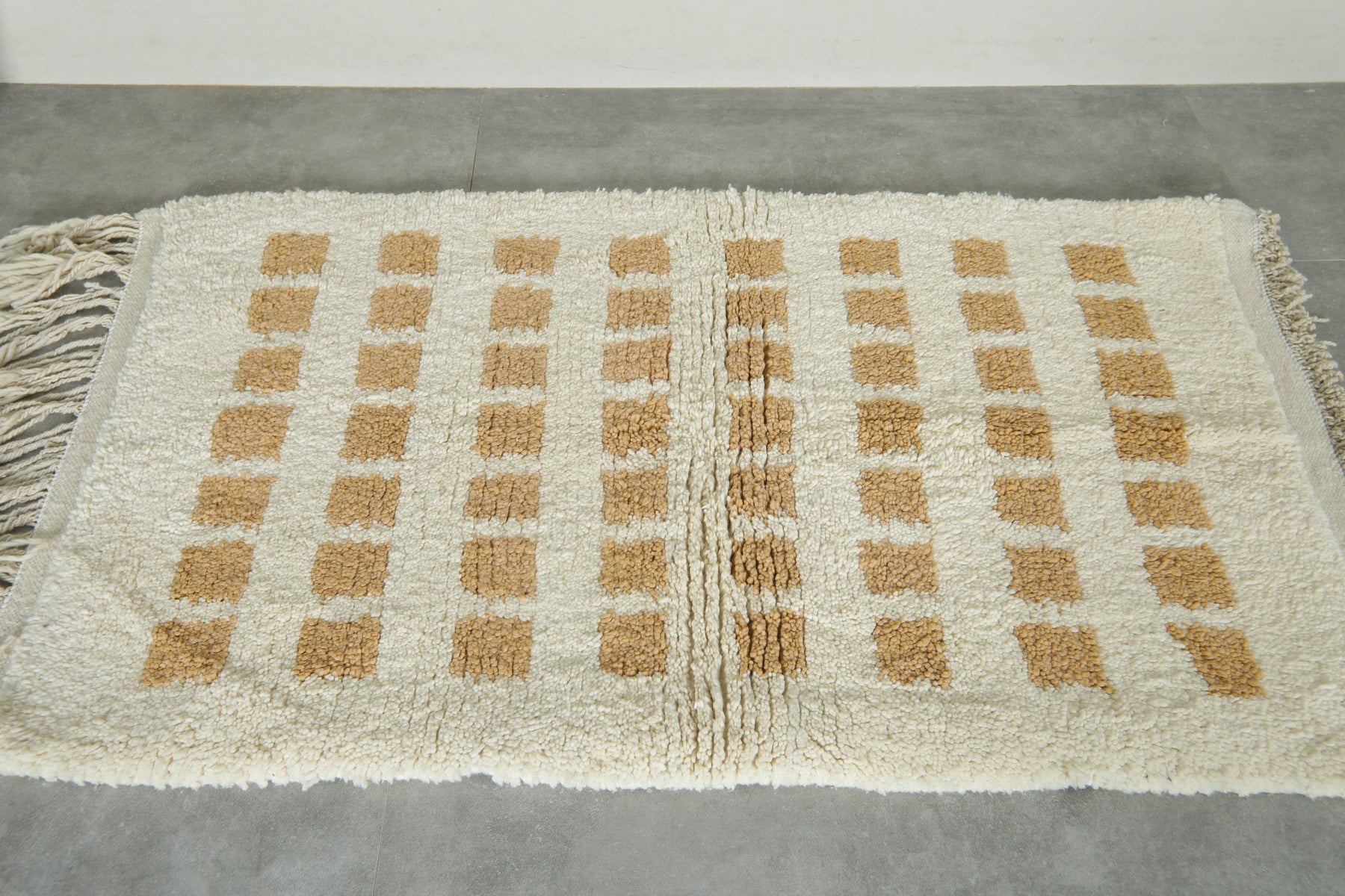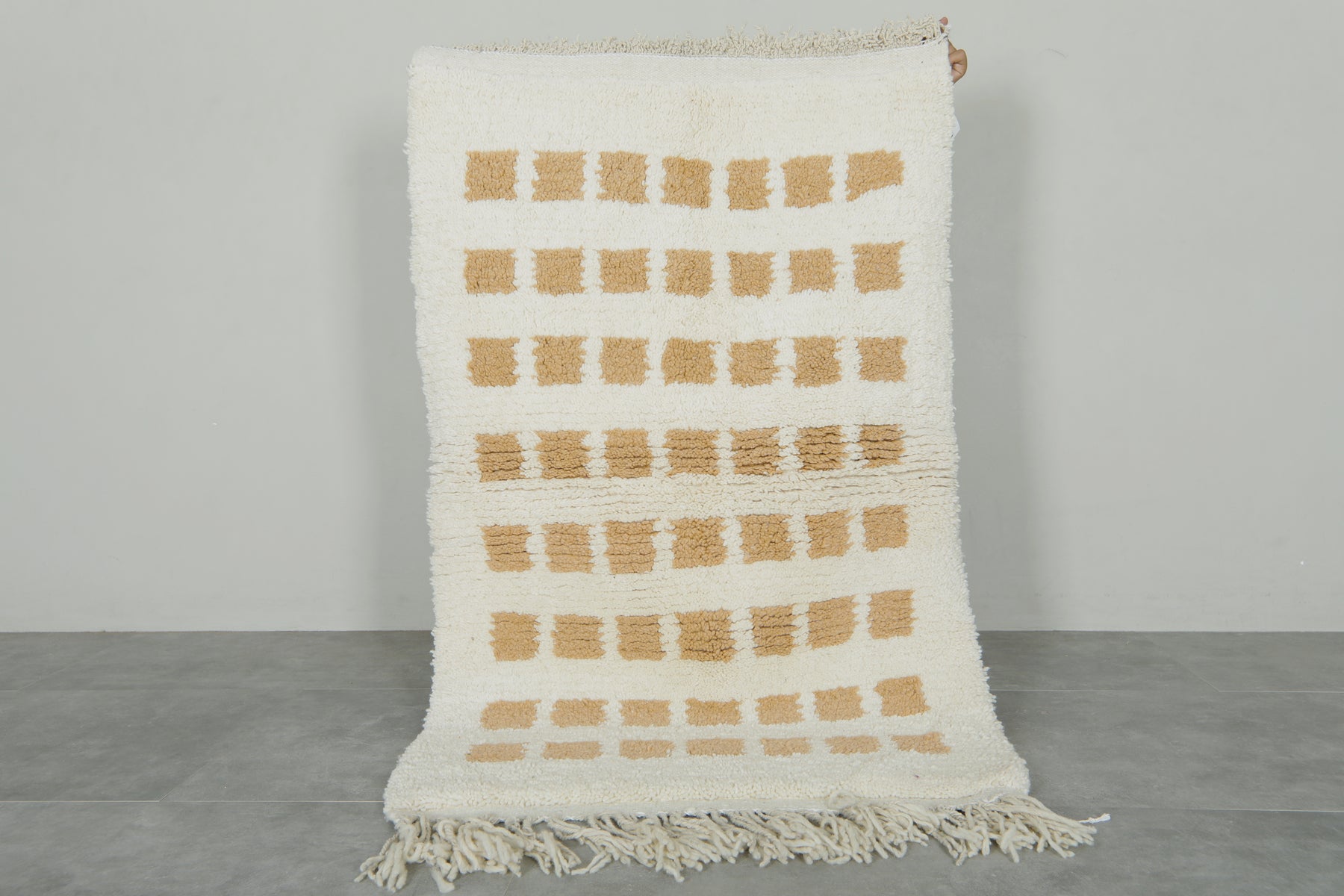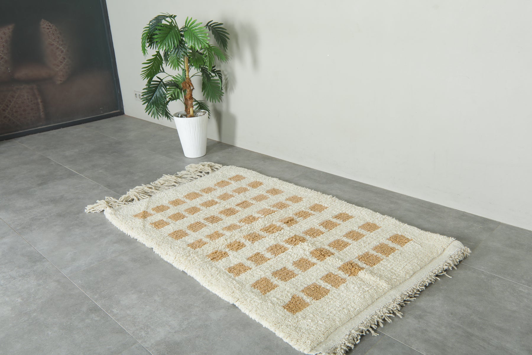 White Moroccan beni ourain rug with beige checkered design - 3.2 ft x 5.2 ft