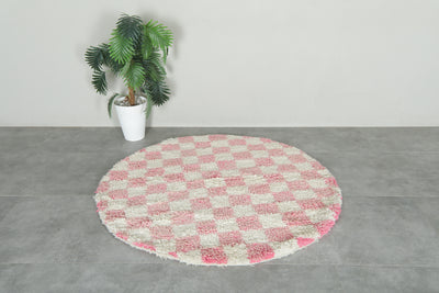 Round Moroccan Wool Rug - 5ft Pink Checkerboard