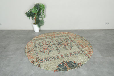 Round Moroccan Wool Rug - 5 ft Soft Gray Tone