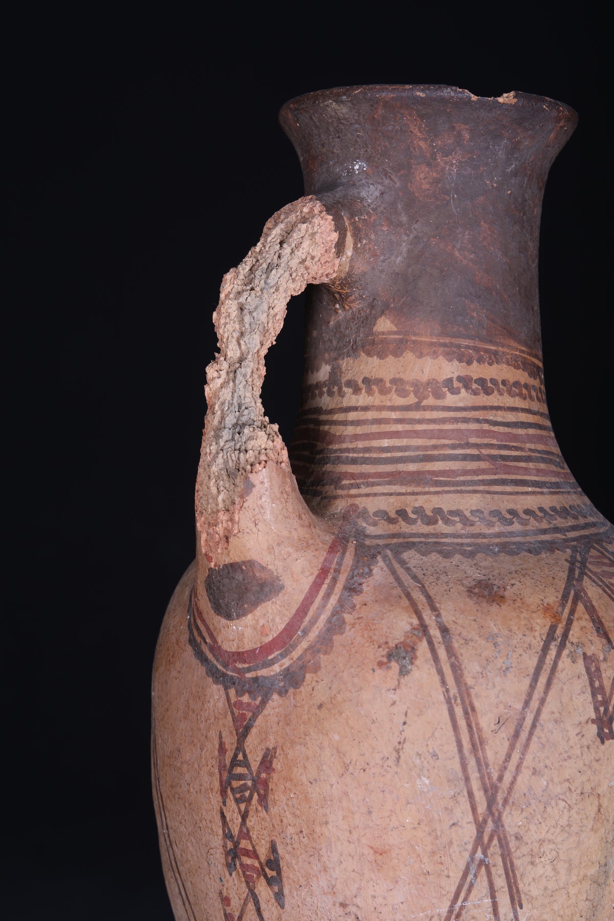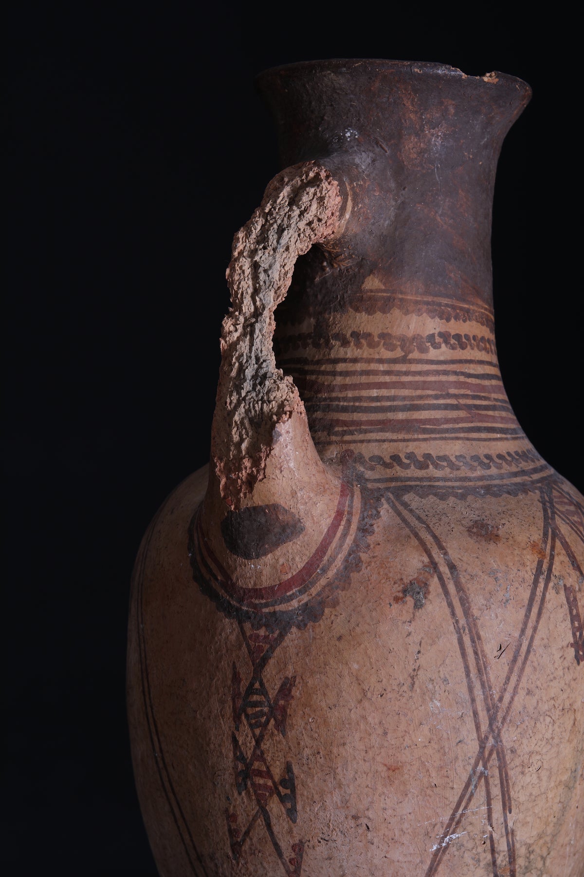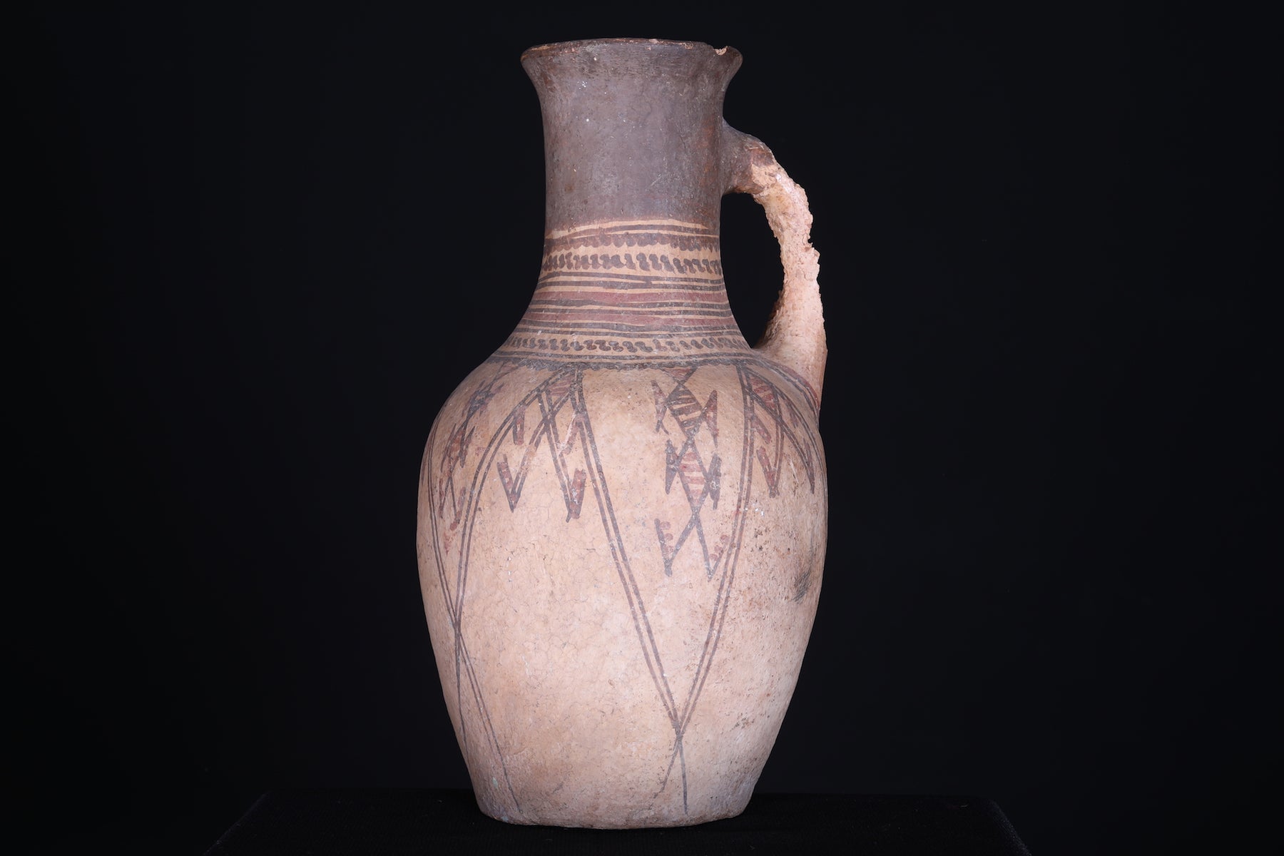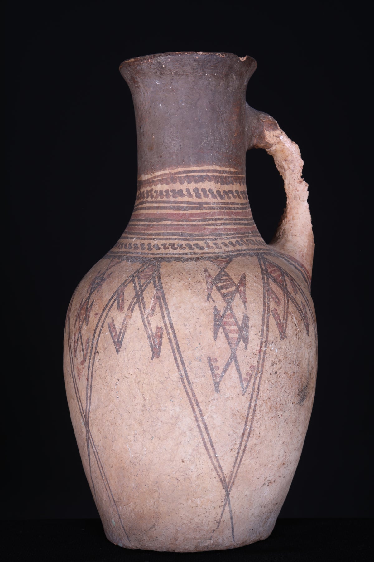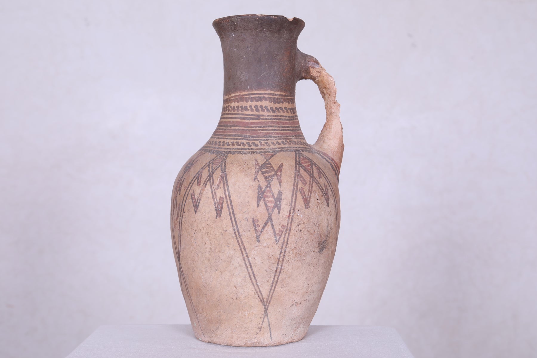 This antique Moroccan water clay jug is a unique piece for any home. Crafted with vintage clay, it measures 15.3 inches by 7.8 inches, so it can fit in any corner of the house. The jug is perfect for decorating or for storing water or other liquids.