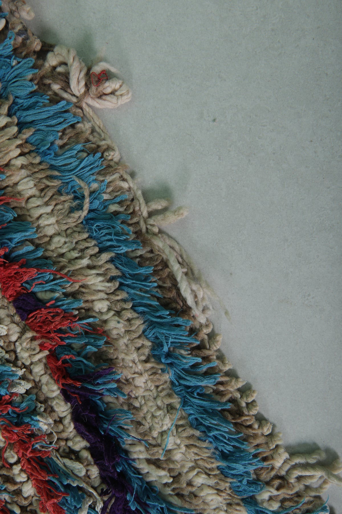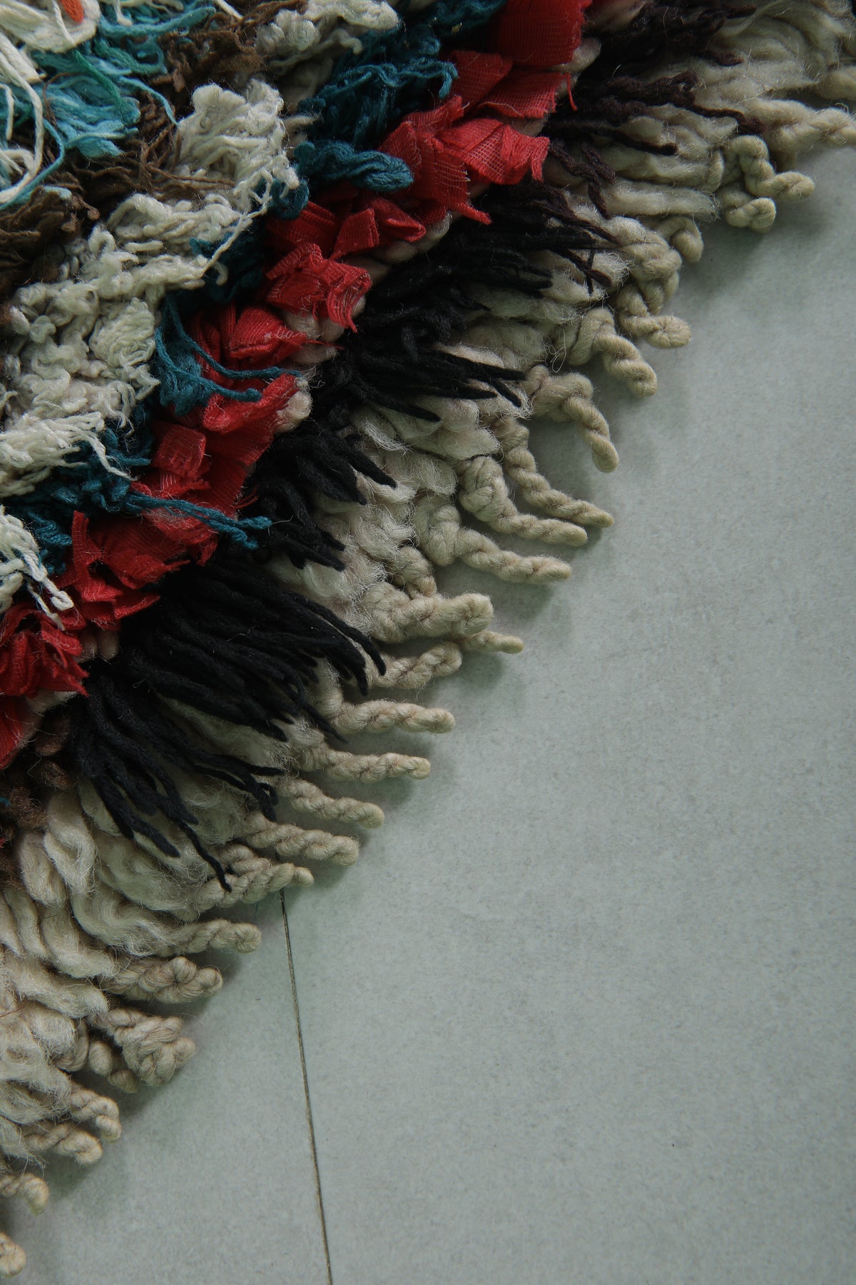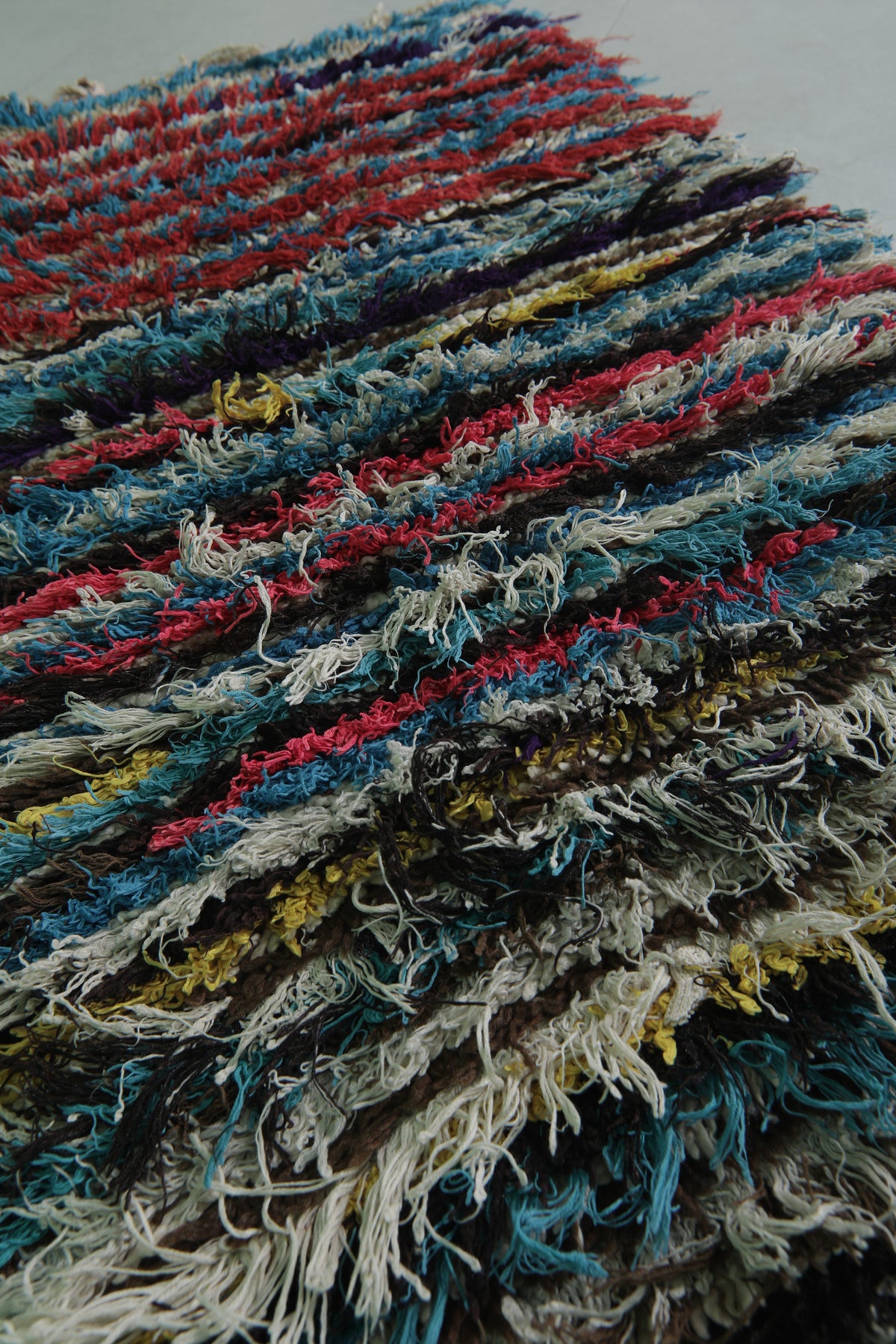 Brighten your space with the vibrant energy of this Colorful Striped Shaggy Rug, measuring 2.4 x 4.7 feet. Handwoven in Morocco, this playful piece features bold, textured stripes in a mix of red, blue, yellow, black, and more—creating a stunning visual rhythm. The high-pile shag adds cozy warmth and a sense of artisanal charm, making it a perfect fit for entryways, bedside areas, or creative corners. This rug is a celebration of color and culture, designed to uplift any room with its cheerful character.