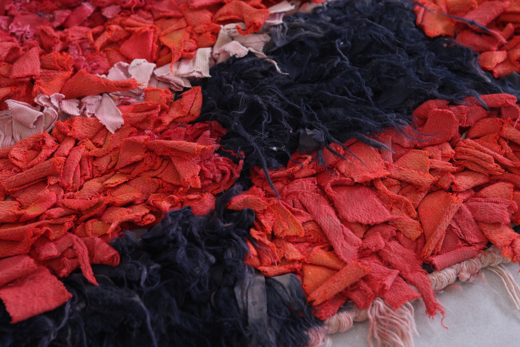 Handmade Moroccan Rug – Red & Navy Geometric 2.2 x 6.5 ft