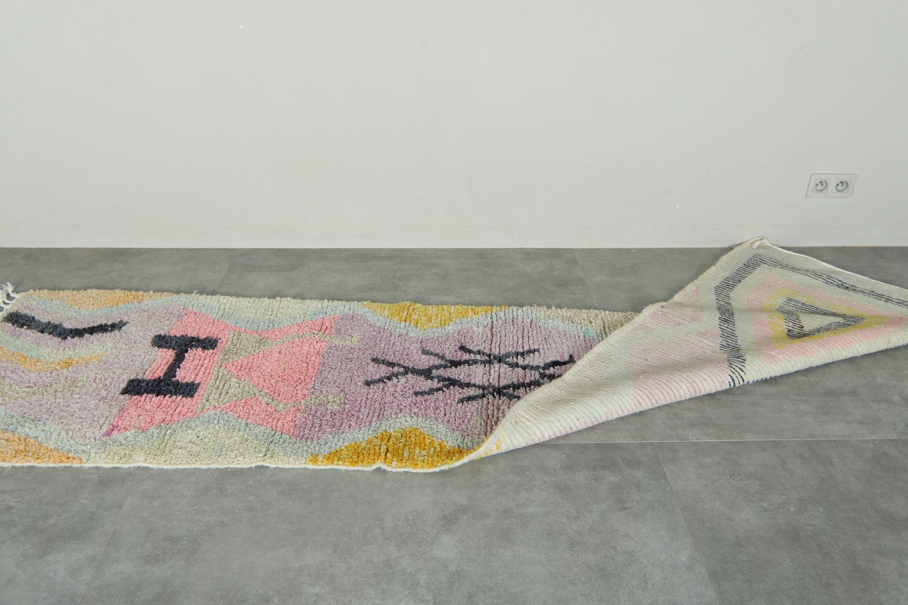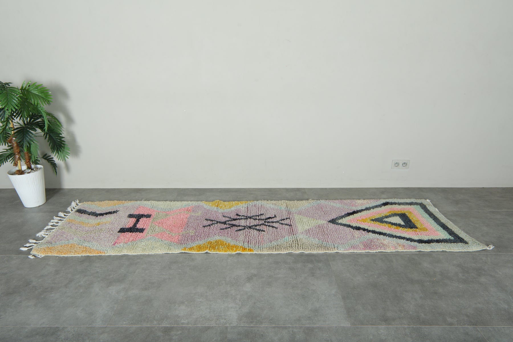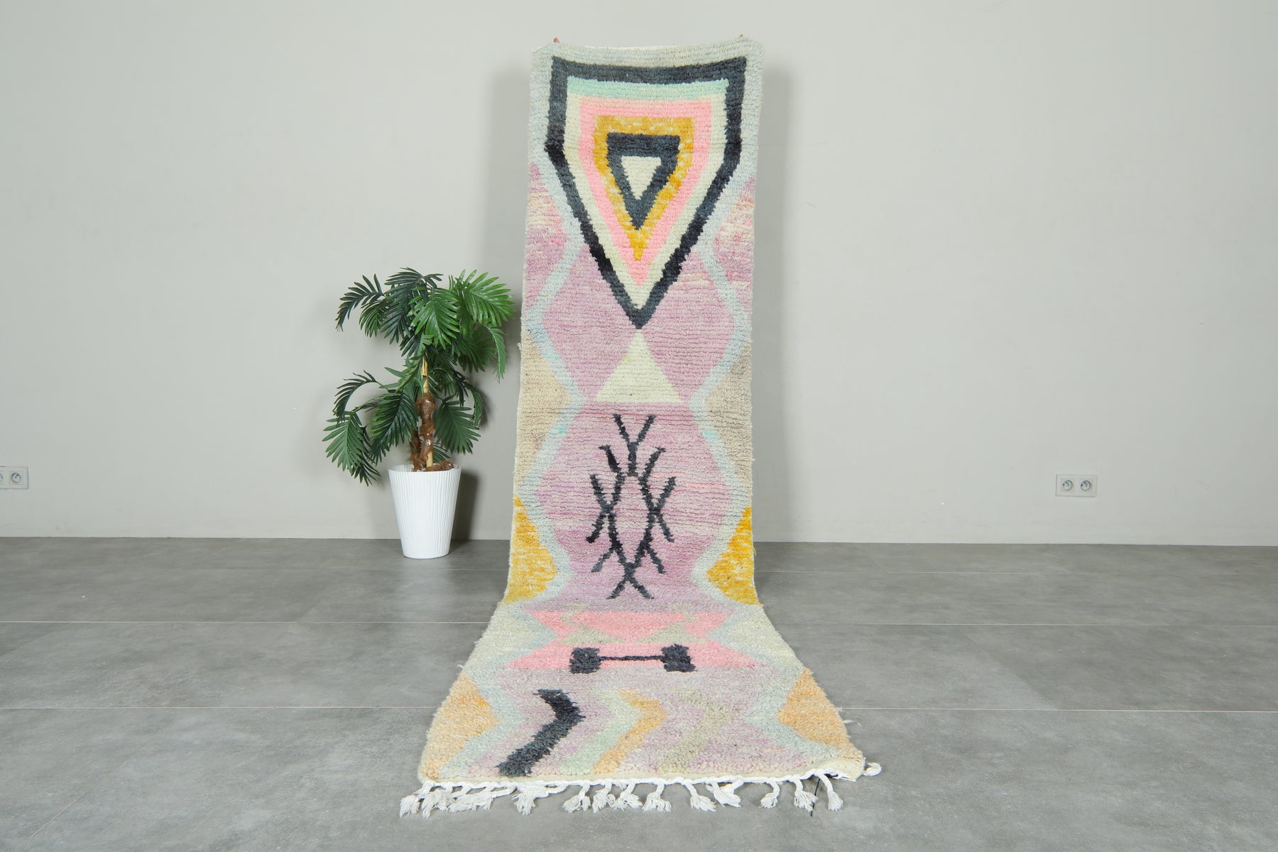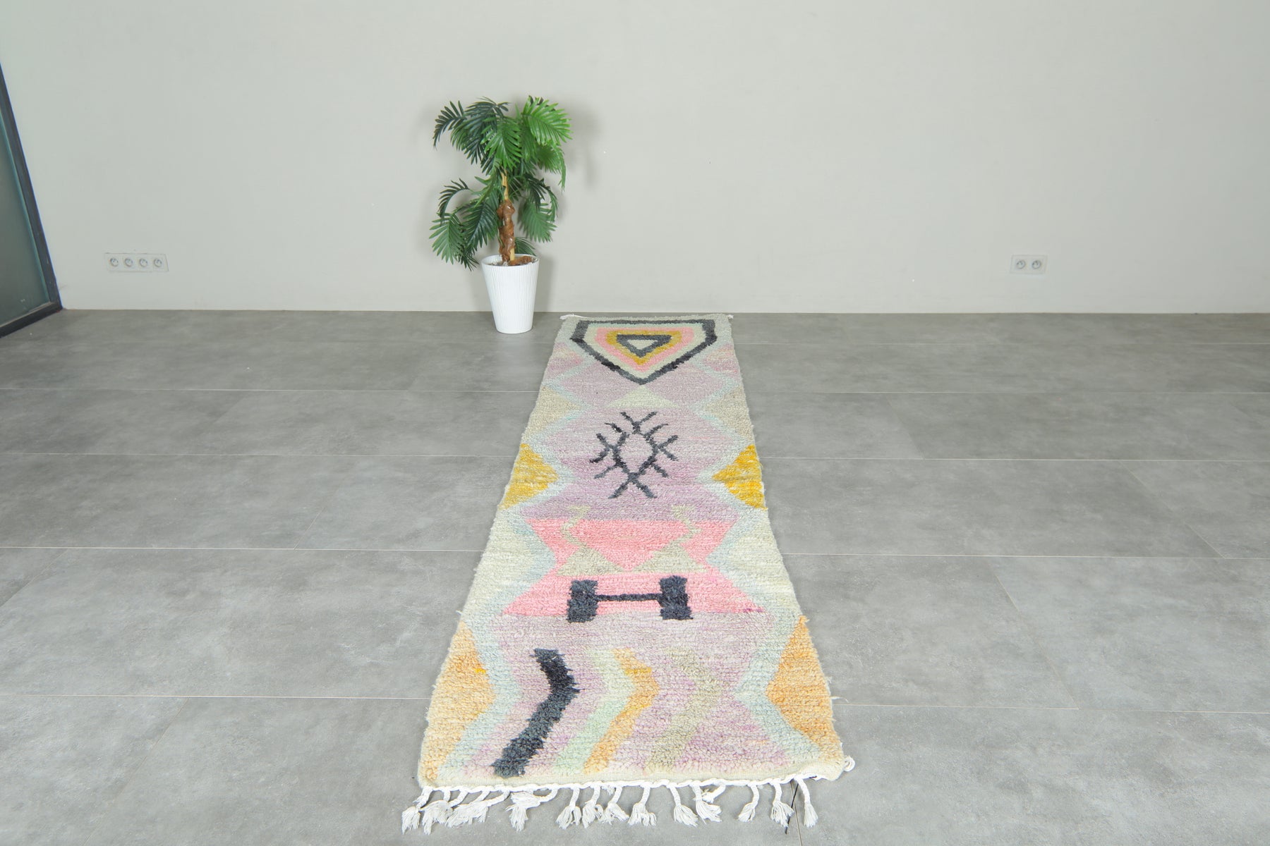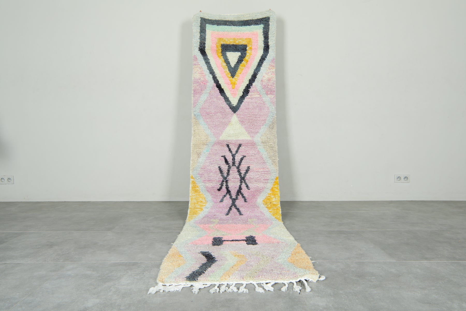 Handwoven Moroccan runner rug - Geometric azilal design - 2.4 ft x 9.8 ft