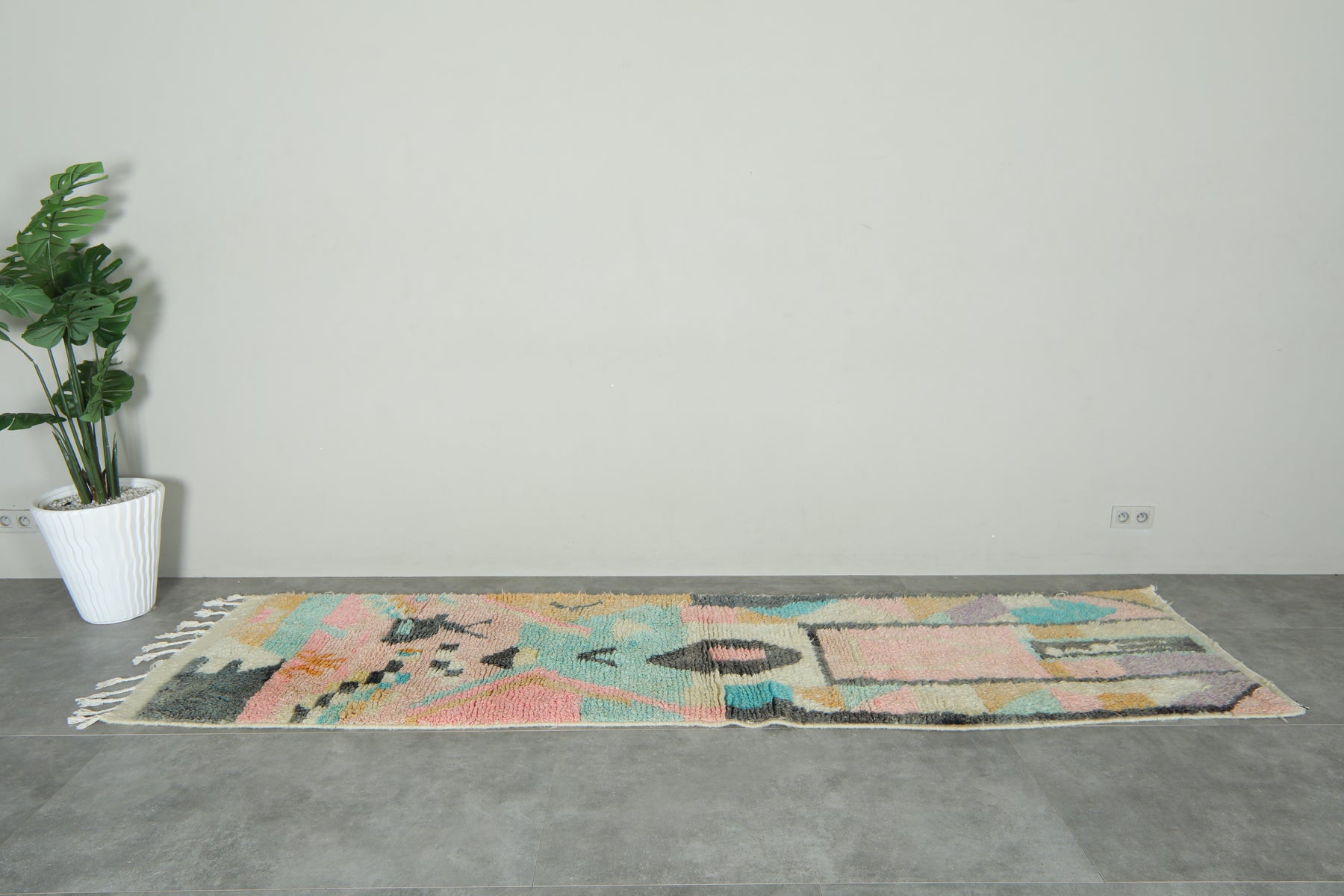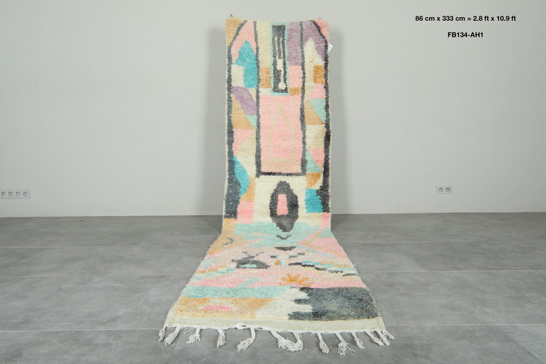 Moroccan runner rug - Pastel geometric beni ourain style - 2.8 ft x 10.9 ft