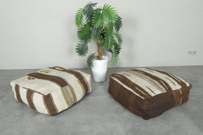 Two Moroccan handmade ottoman berber pouf - kilim pouf