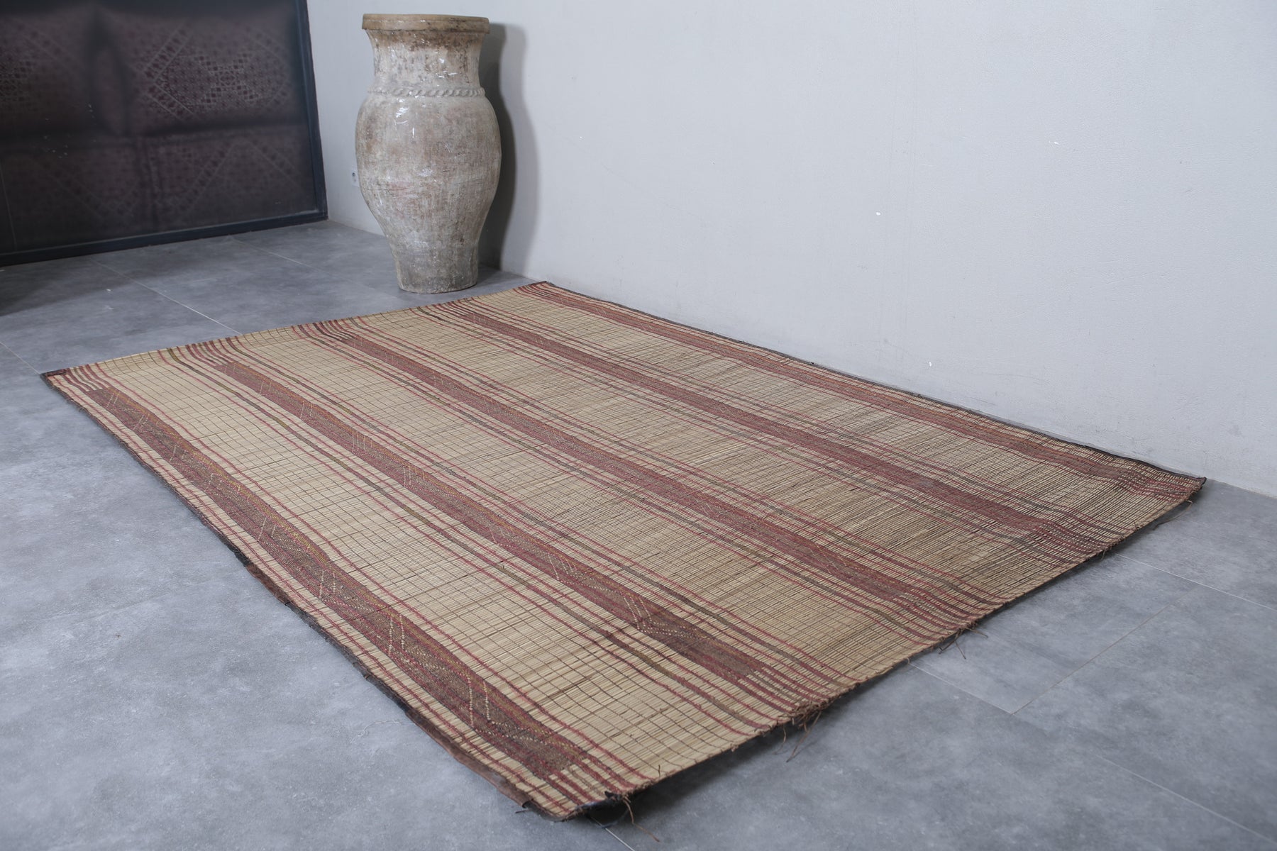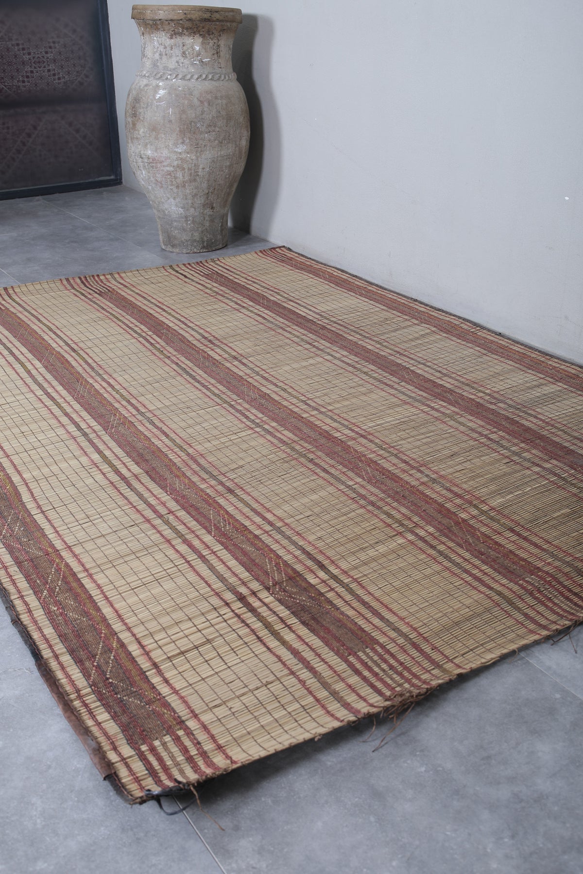# Antique rug # Mauritanian mat # Mauritanian rug # Nomad rug # Nomadic rug # Reed and leather rug # Reed rug # Tuareg reed rug # Vintage reed rug # Vintage tuareg mat # Vintage tuareg rug