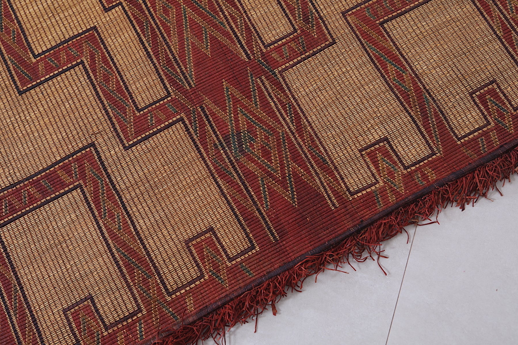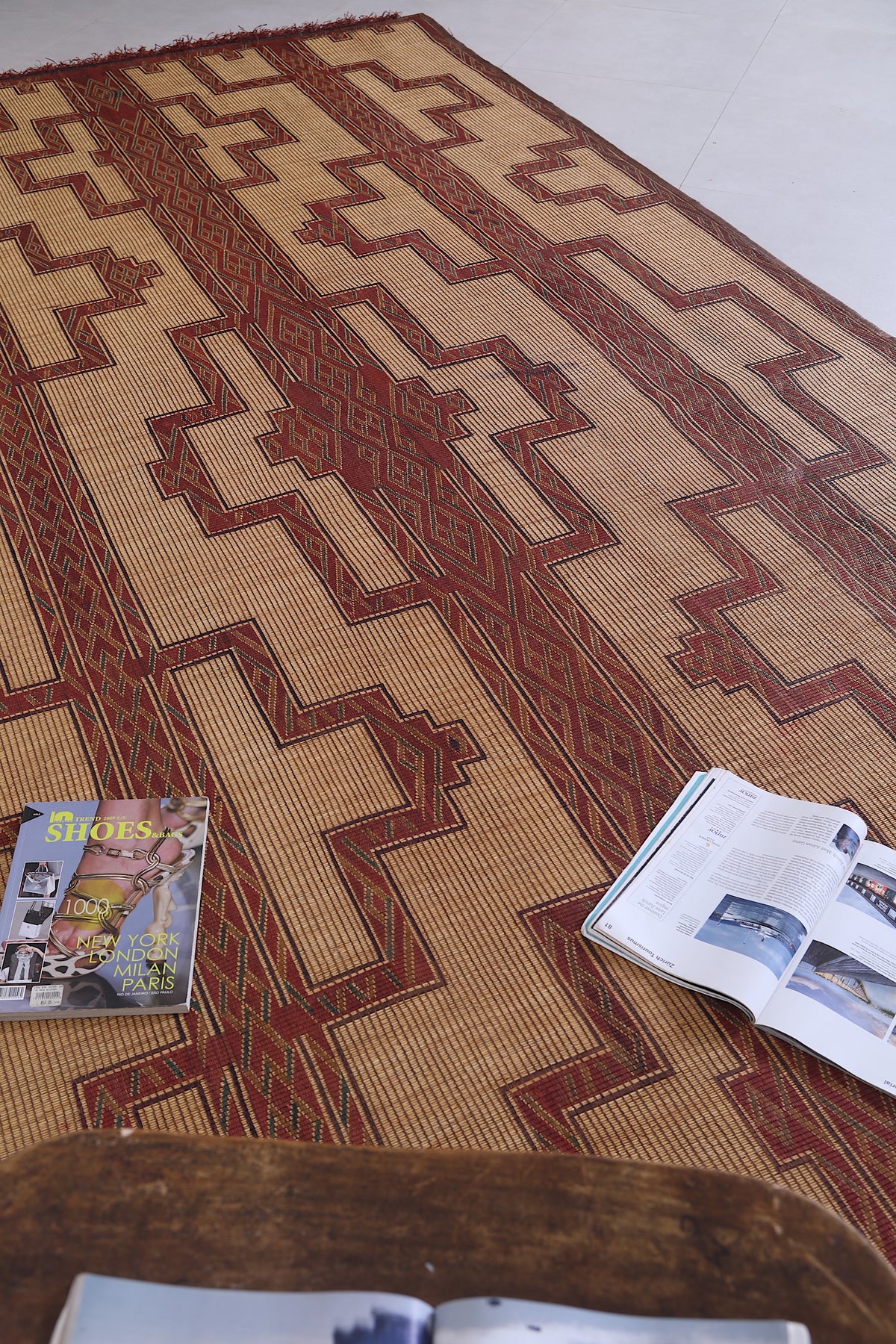 Make a bold statement with the authentic beauty of this handcrafted Tuareg Rug. Expertly woven by skilled artisans using natural reed fibers, this stunning piece showcases intricate tribal motifs that celebrate rich cultural heritage. Its warm earthy tones and geometric patterns add texture, warmth, and character to any space, creating a true focal point in your home.