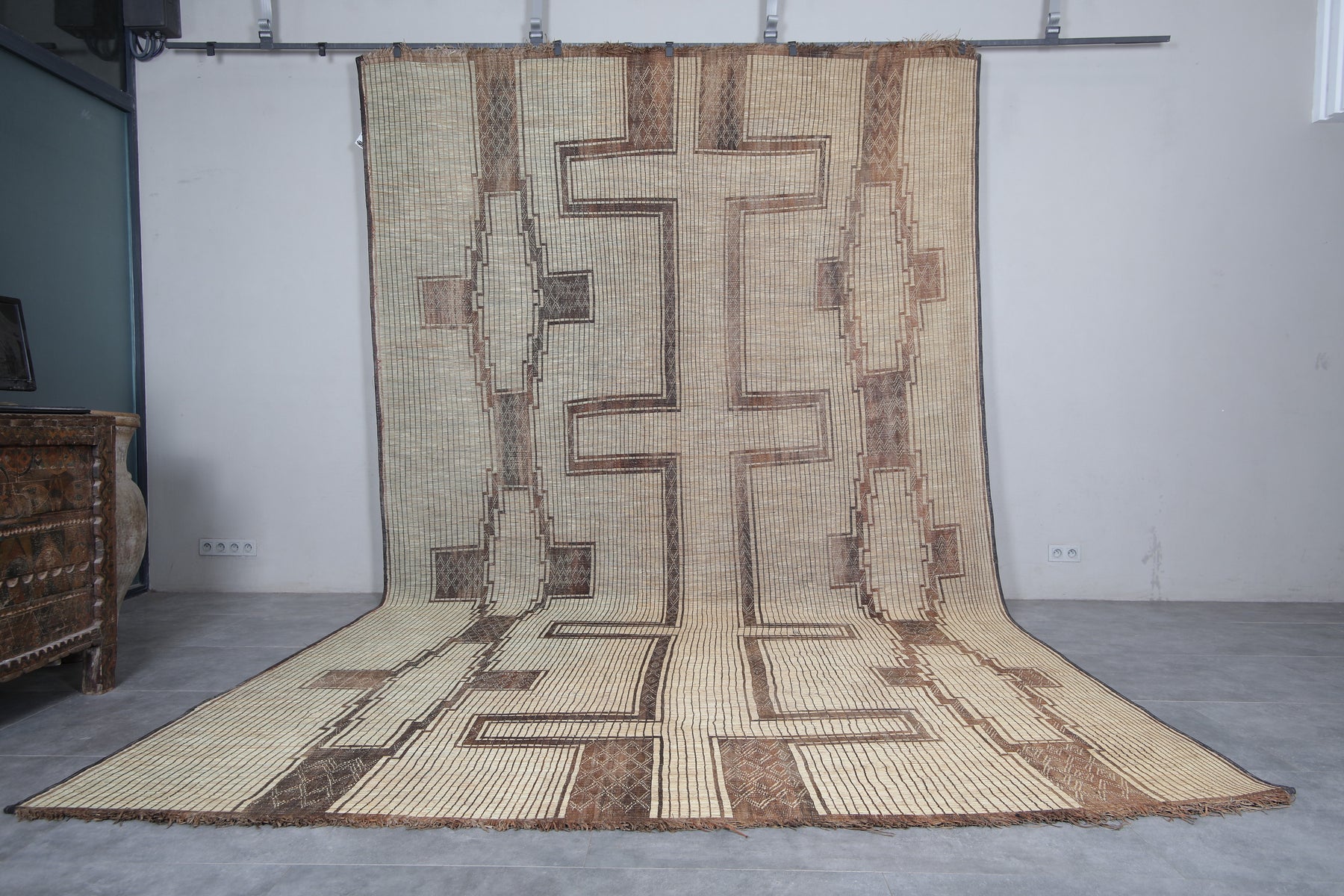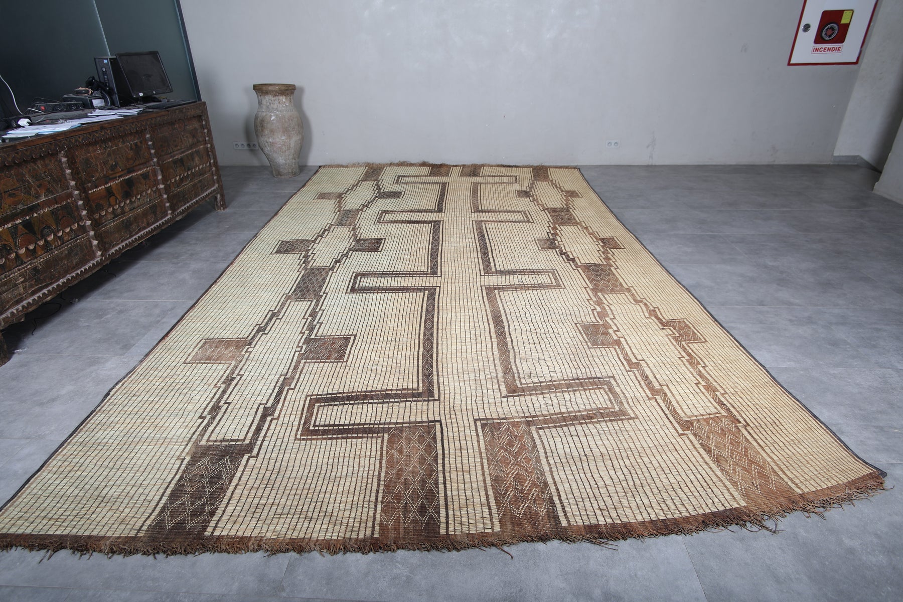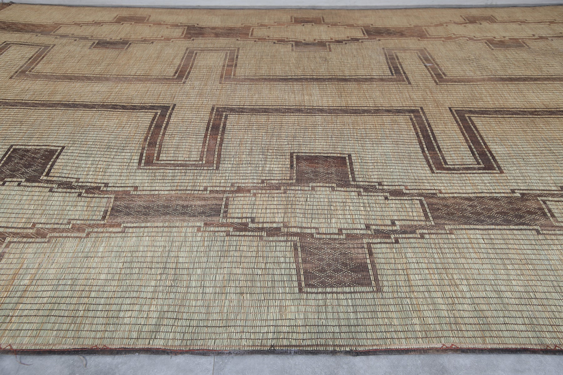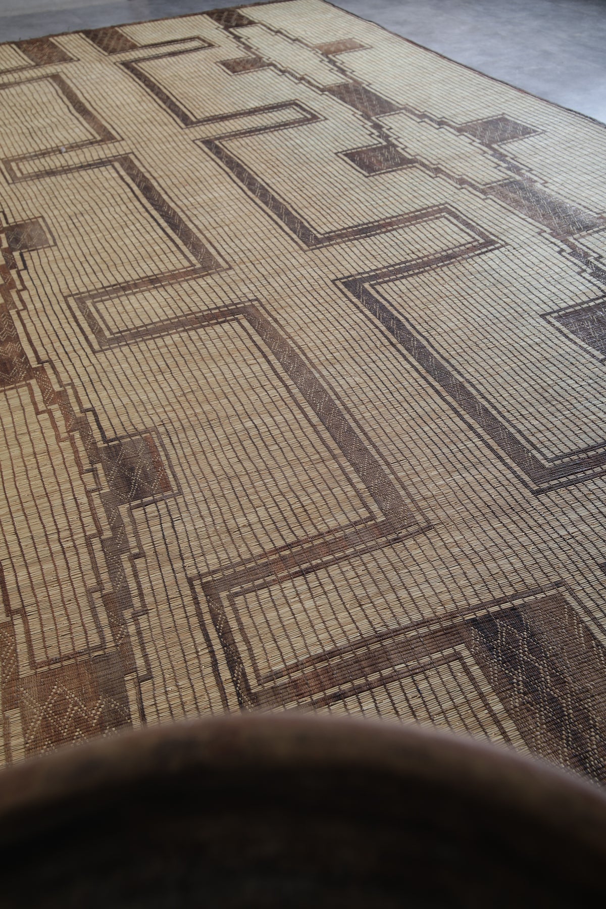 Bring cultural heritage and artisan craftsmanship into your home with this stunning Tuareg rug. Handwoven from organic reed by skilled Tuareg artisans, this rug showcases intricate geometric designs, blending tradition with timeless beauty. Its earthy tones and bold patterns make it a striking centerpiece for larger spaces such as living rooms, entryways, or open-plan interiors. Durable and sustainably crafted, this rug offers both lasting quality and cultural authenticity.