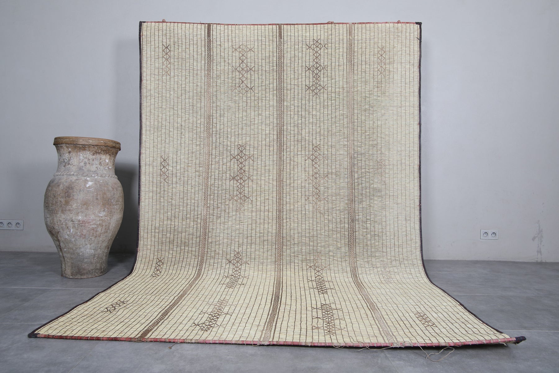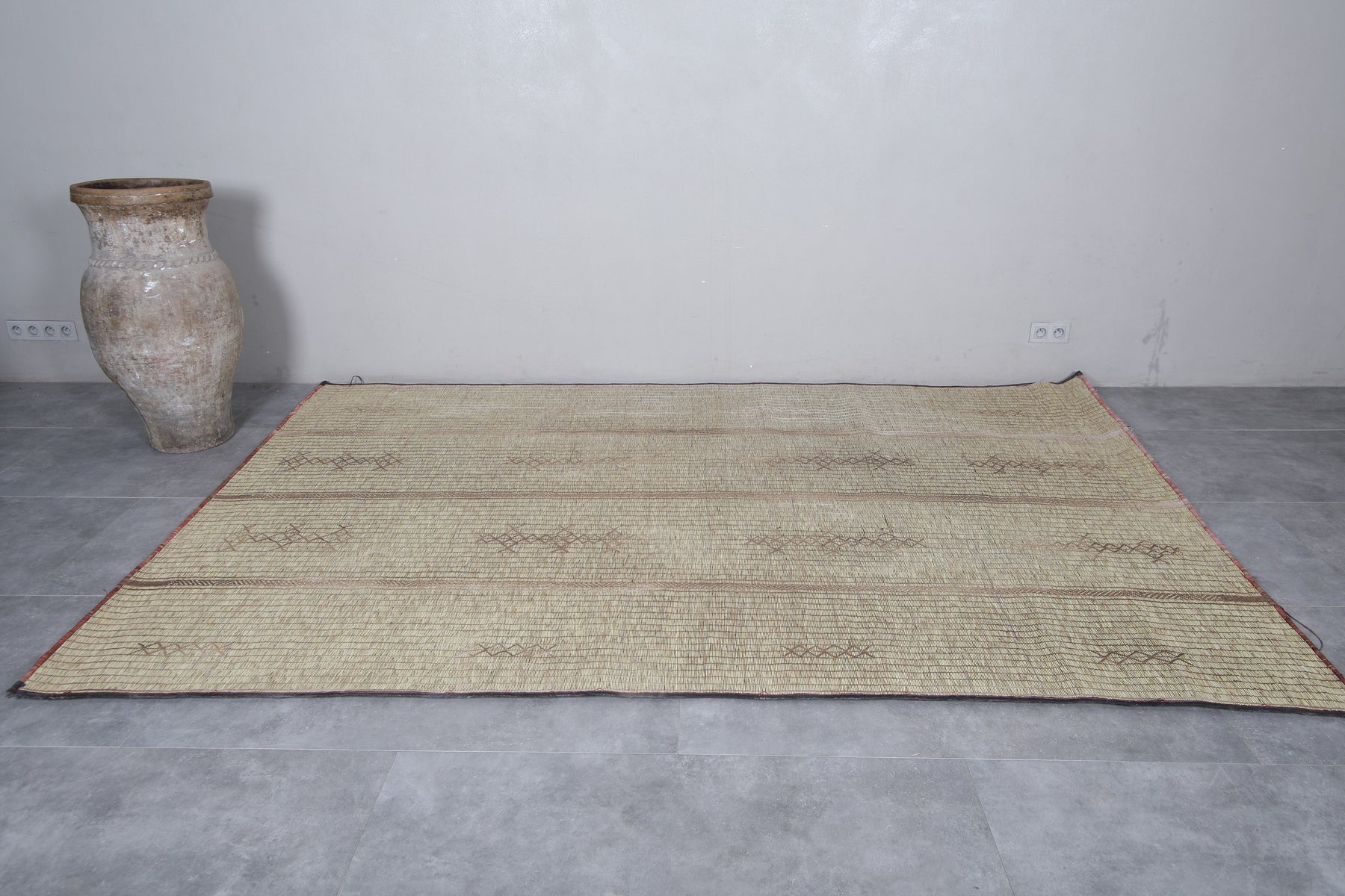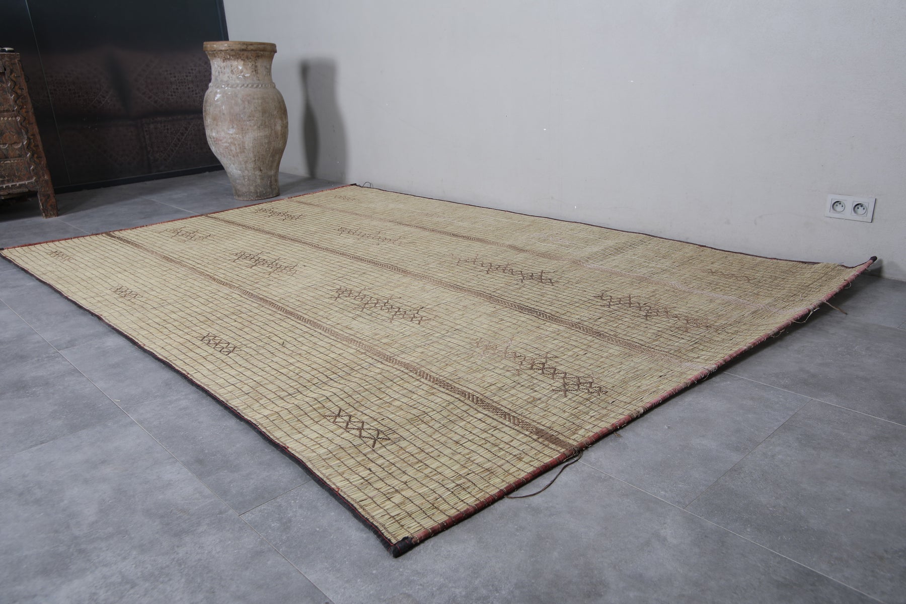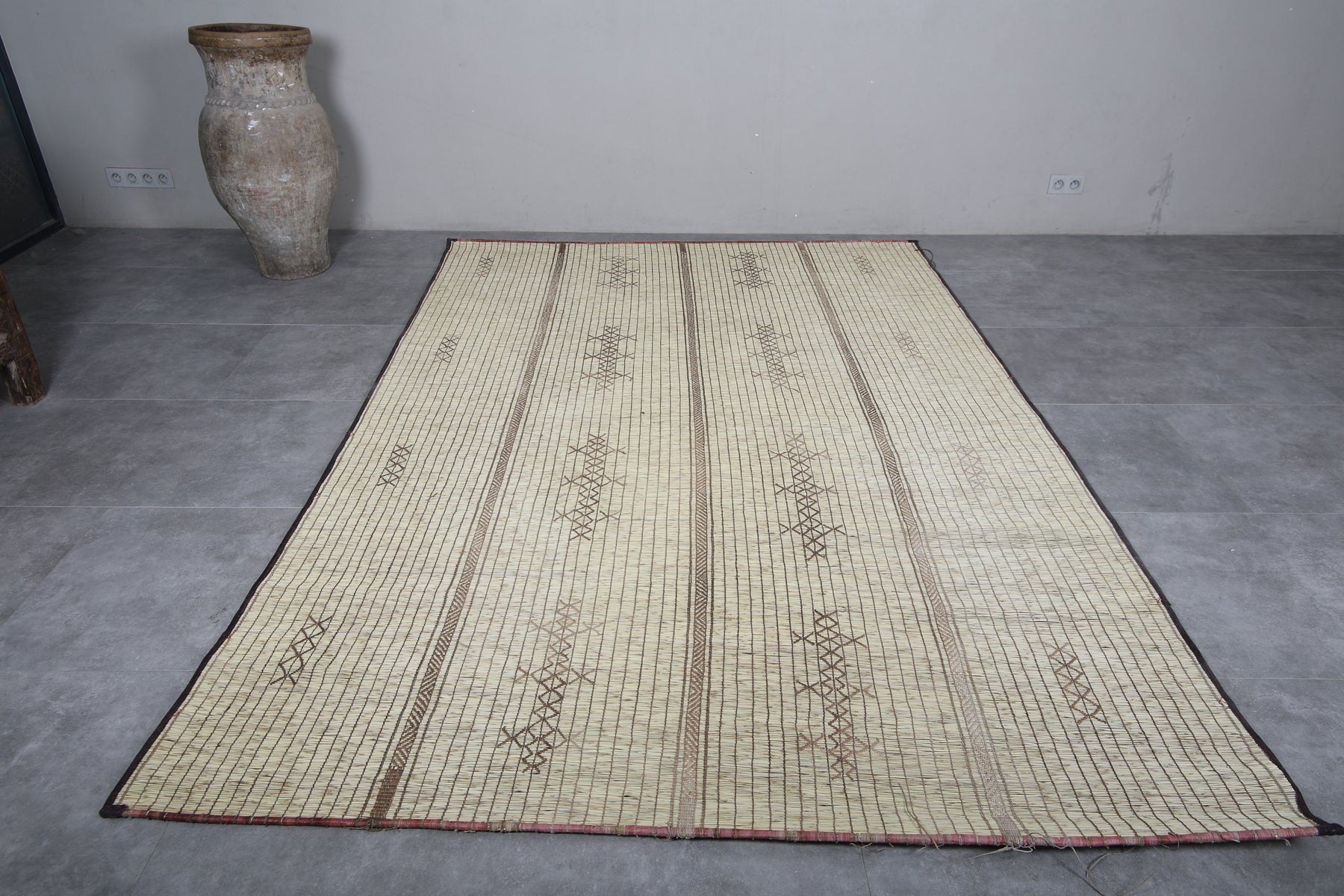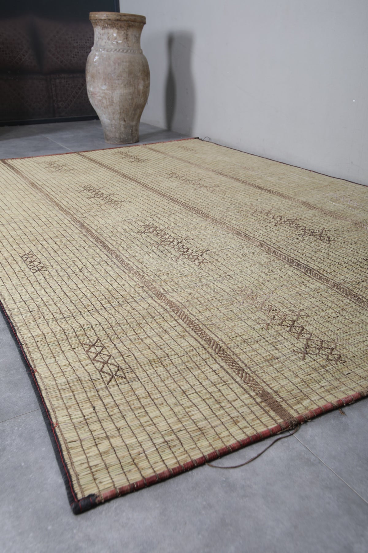 Add timeless beauty and artisanal craftsmanship to your home with this handwoven Tuareg Rug. Carefully crafted using natural reed fibers, this rug blends authentic tradition with durability and style. Its intricate geometric designs and earthy tones make it a versatile addition to any space, bringing warmth and cultural charm to your décor. Perfect for living rooms, hallways, or cozy corners, this piece adds a unique story to your home.